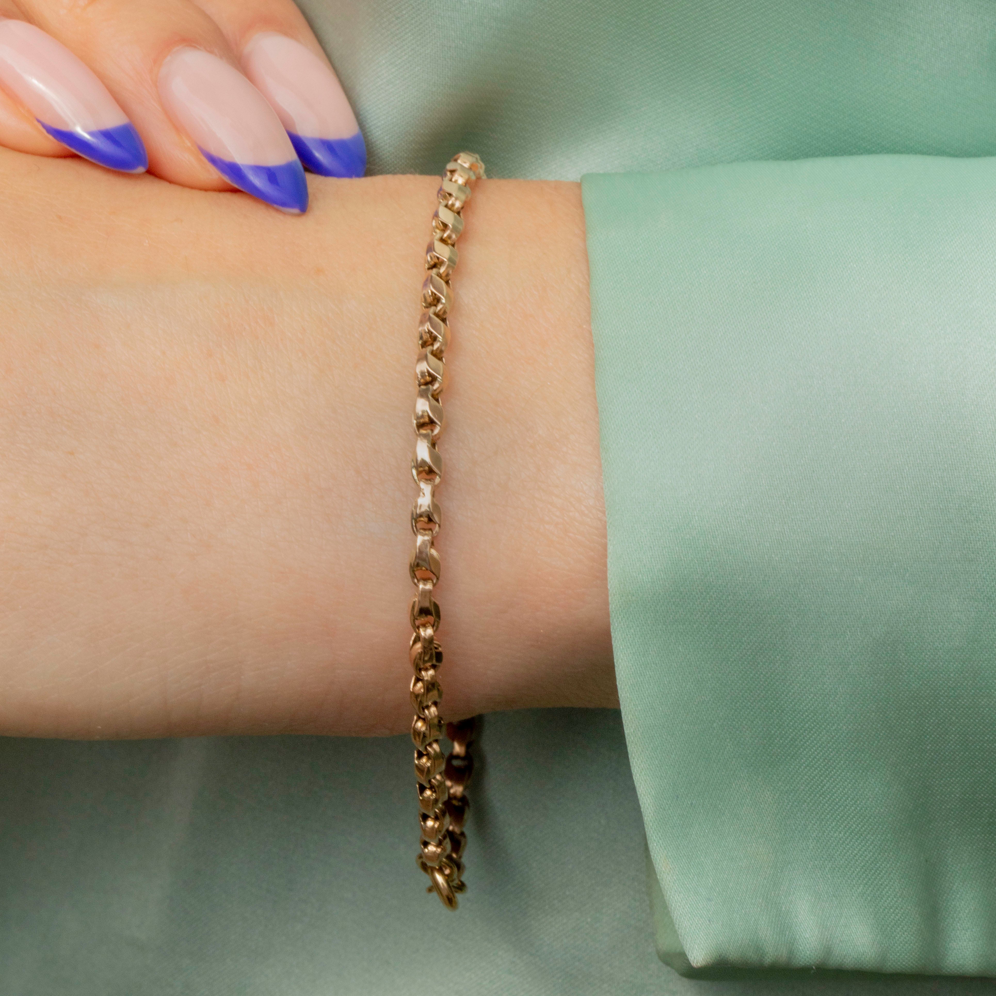 In high demand, we are pleased to present this antique 9ct Gold tulip link bracelet! Crafted from glossy 9ct Gold, this Victorian bracelet is made up of tulip links, a unique and sought-after chain style that is rare to come across!