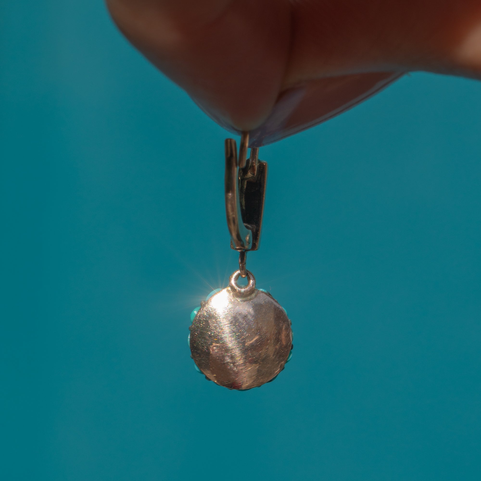Antique 9ct Gold Turquoise Bombe Lever-Back Earrings