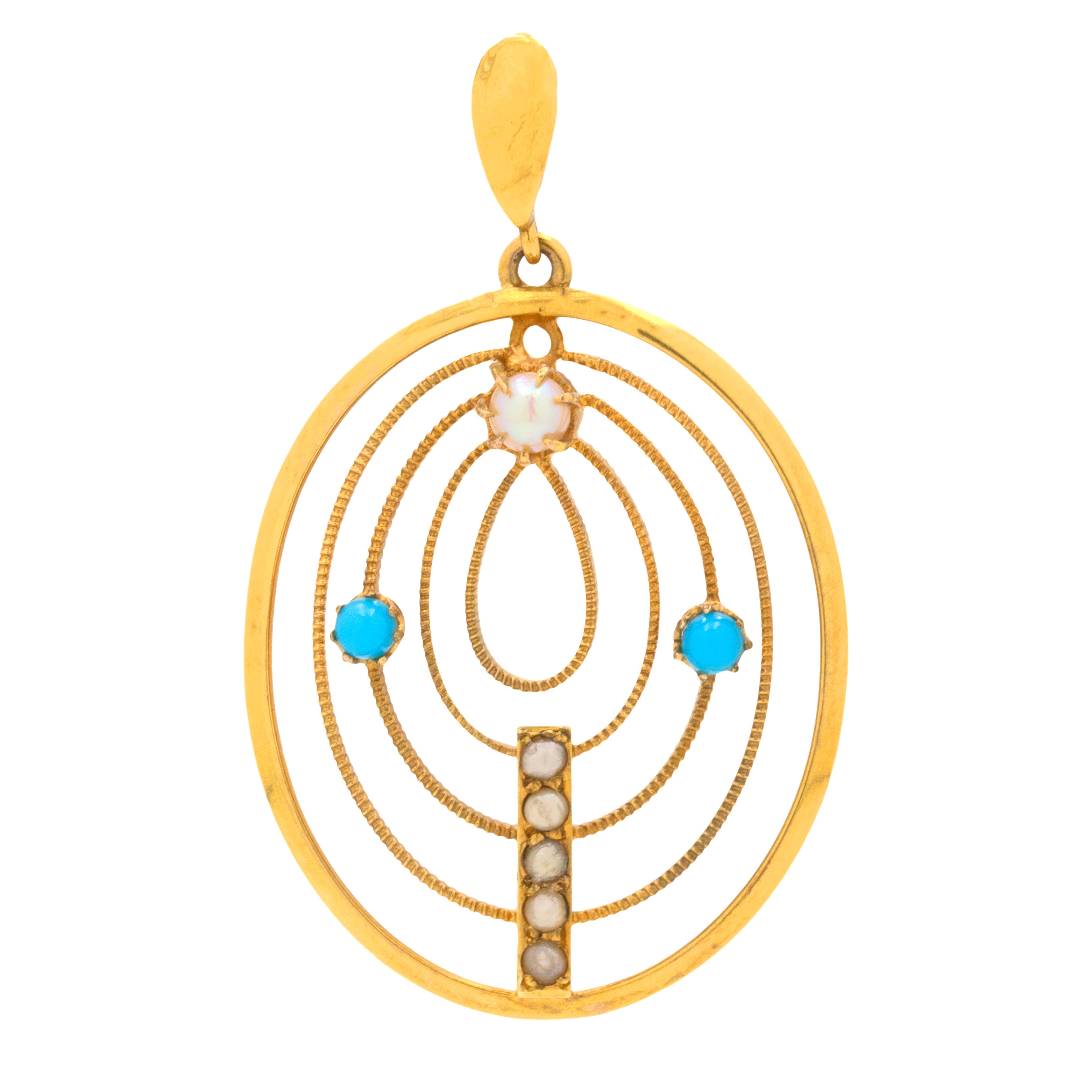 MATERIALS: Tests as 9ct Gold, Turquoise, Pearl.