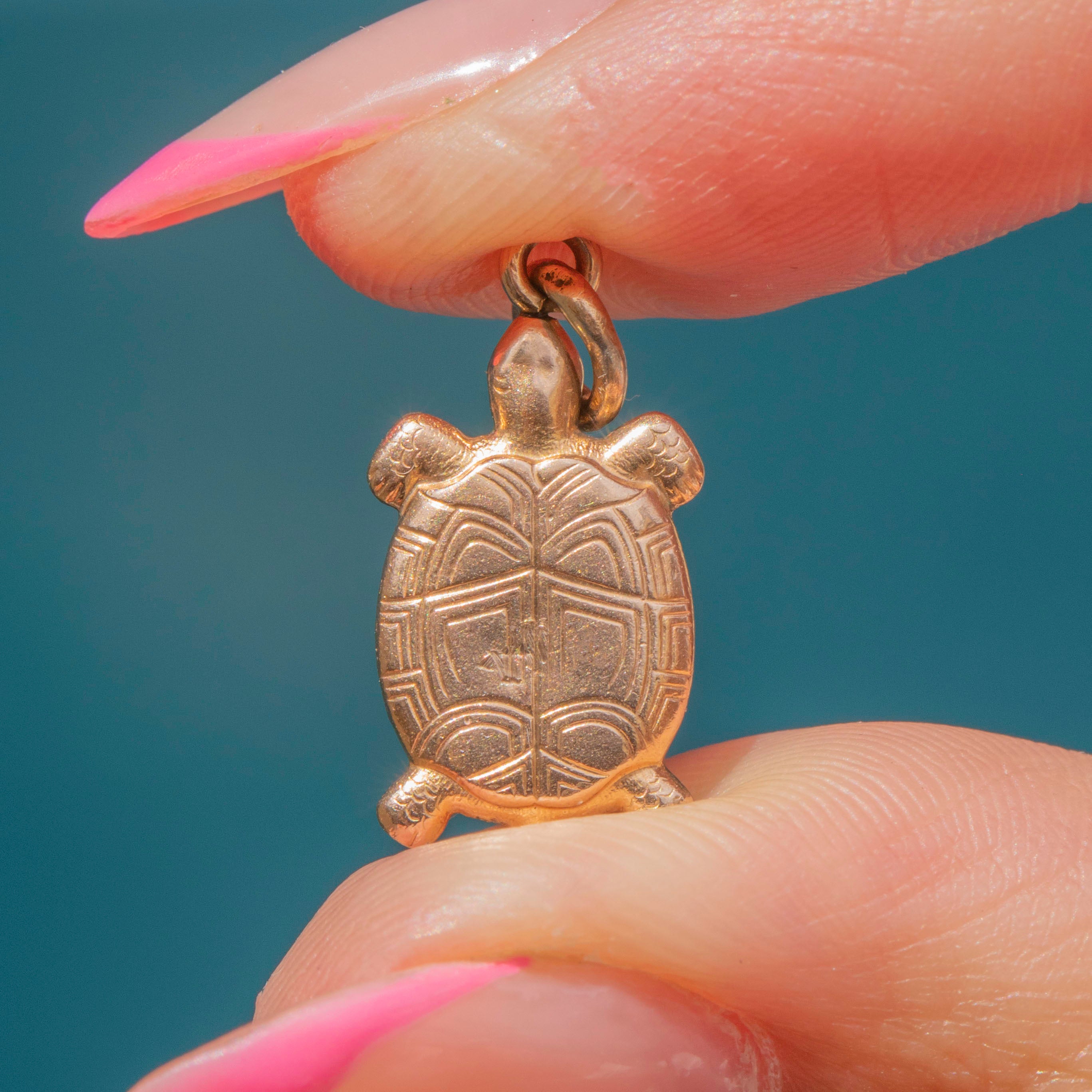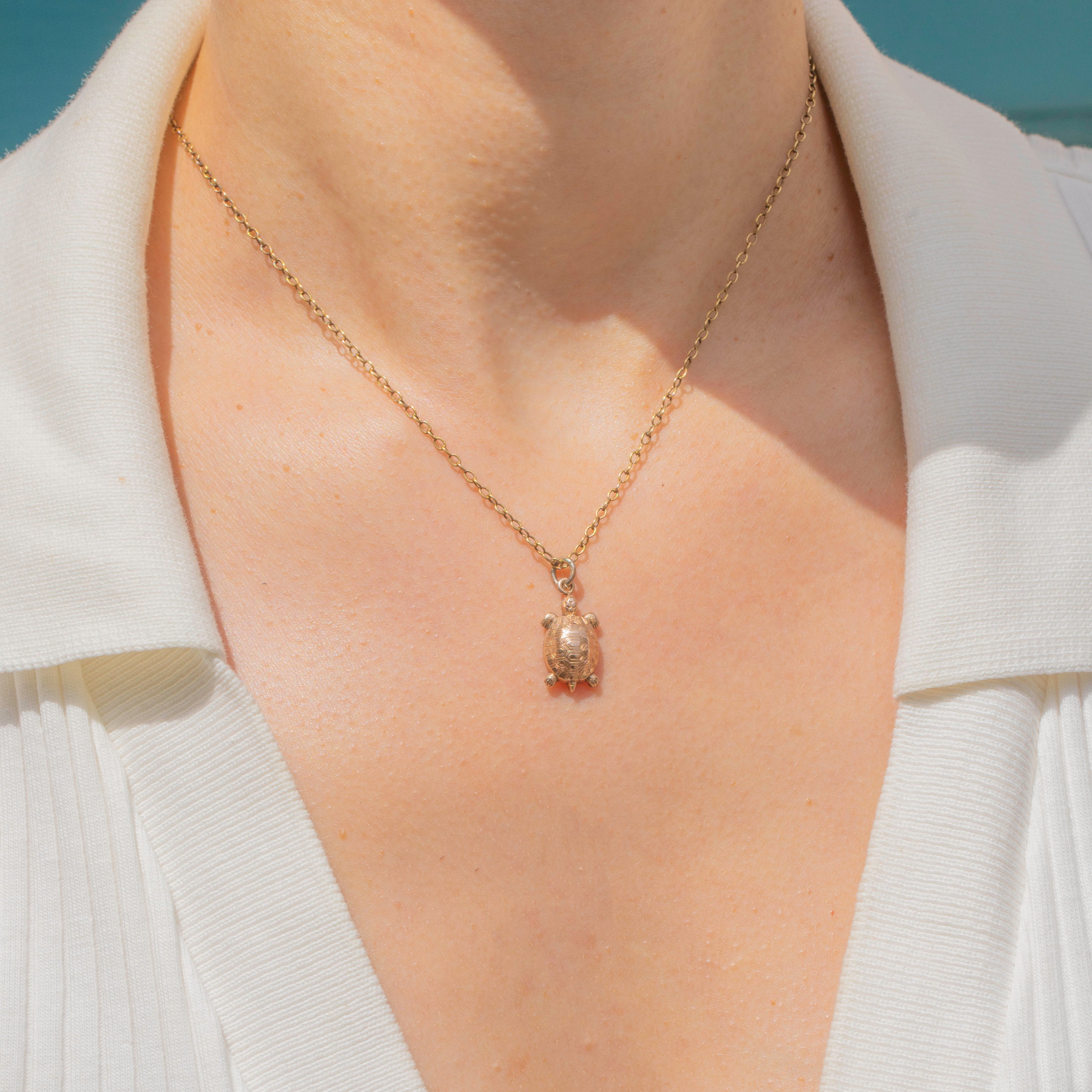 Crafted from saturated, buttery 9ct Gold, this antique turtle charm features an intricately detailed engraved shell which provides a lovely texture and depth, particularly when she catches the light.