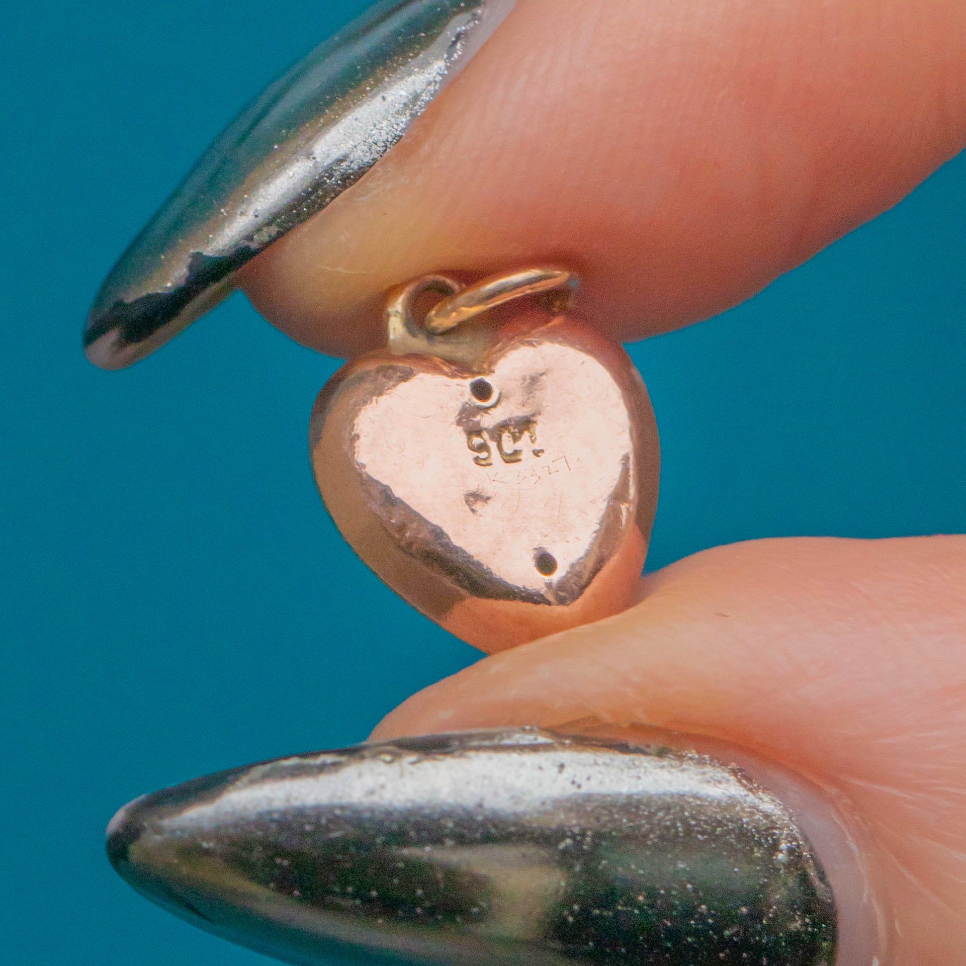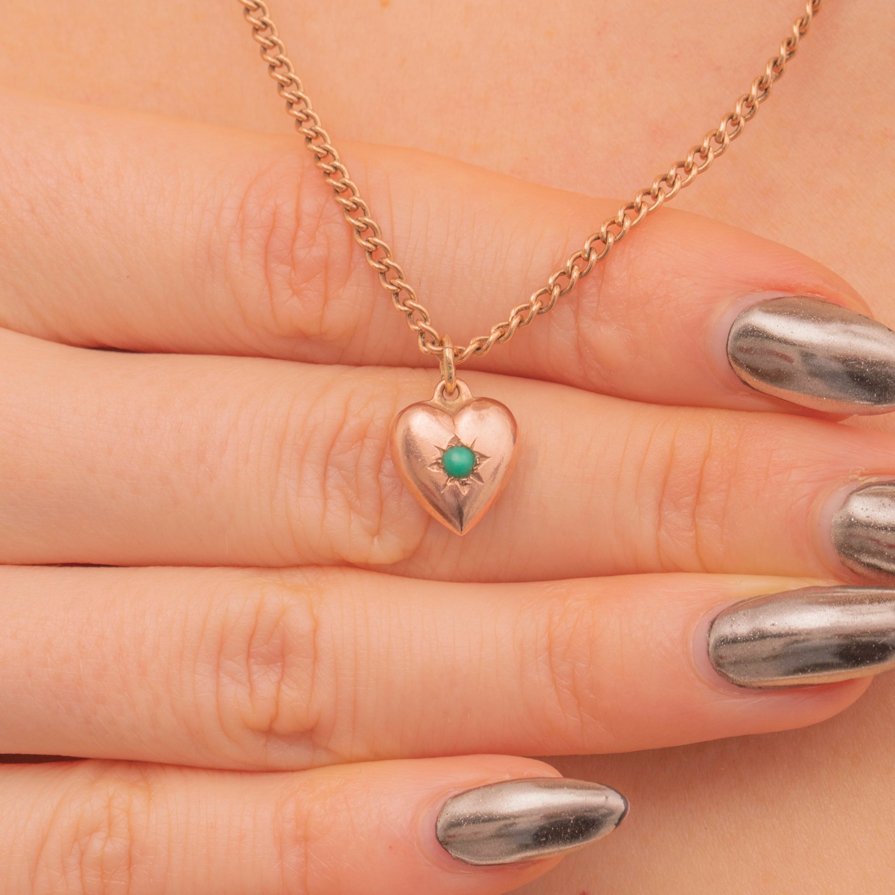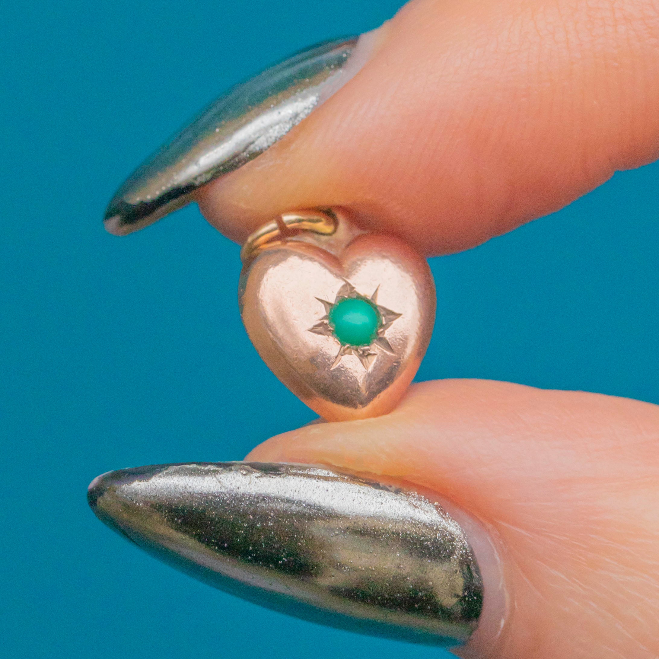 The cute puffy heart shape is crafted from luxurious rosy 9ct Gold and, weighing in at under a gram, this Victorian Turquoise charm is lightweight and easy to wear, making it perfect for everyday wear.