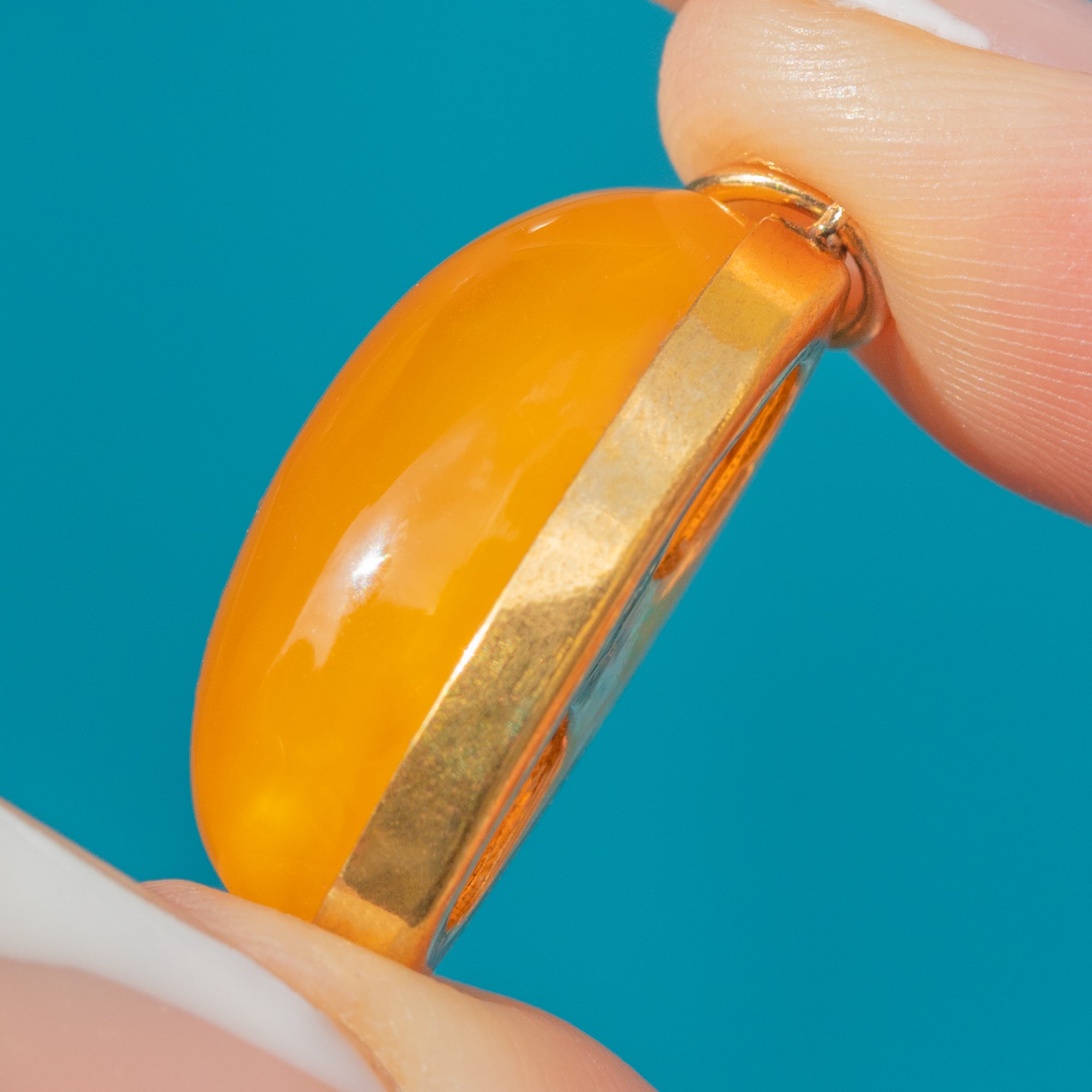 Glowing like a drop of sunset, this Victorian Amber cabochon sits in a sleek bezel that lets the colour do all the talking. The cab is beautifully domed and wonderfully luminous; an easy, elegant charm that brings warmth to any chain.