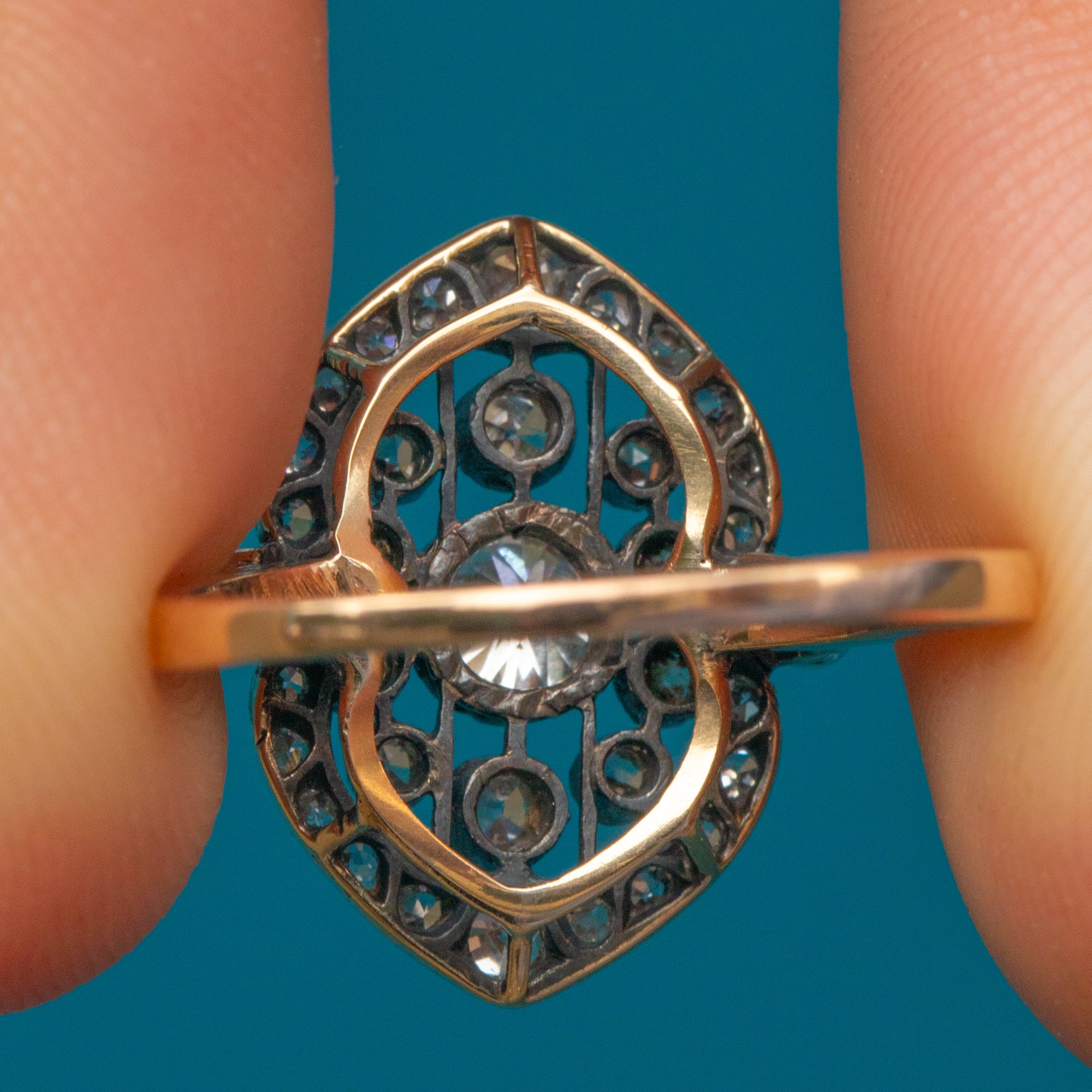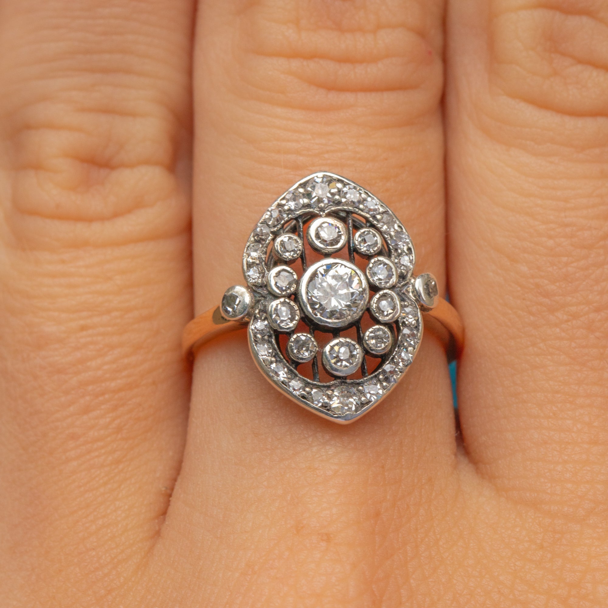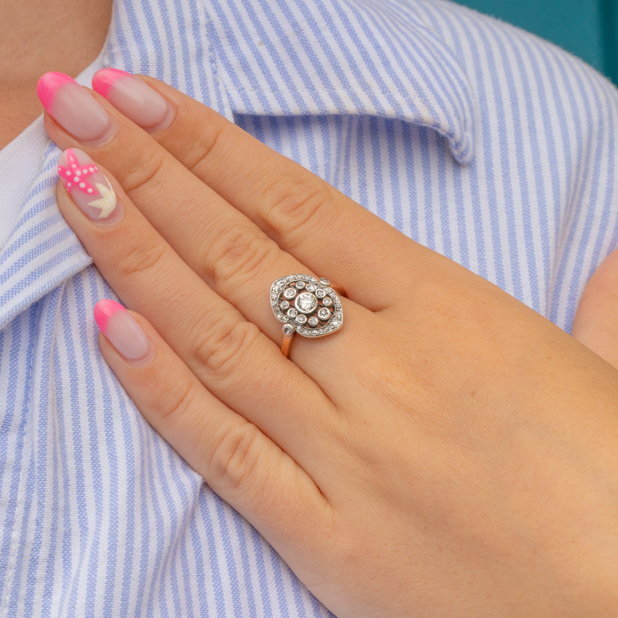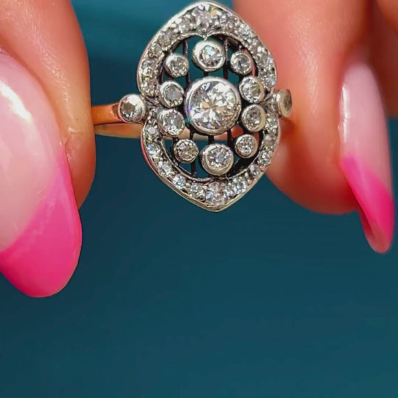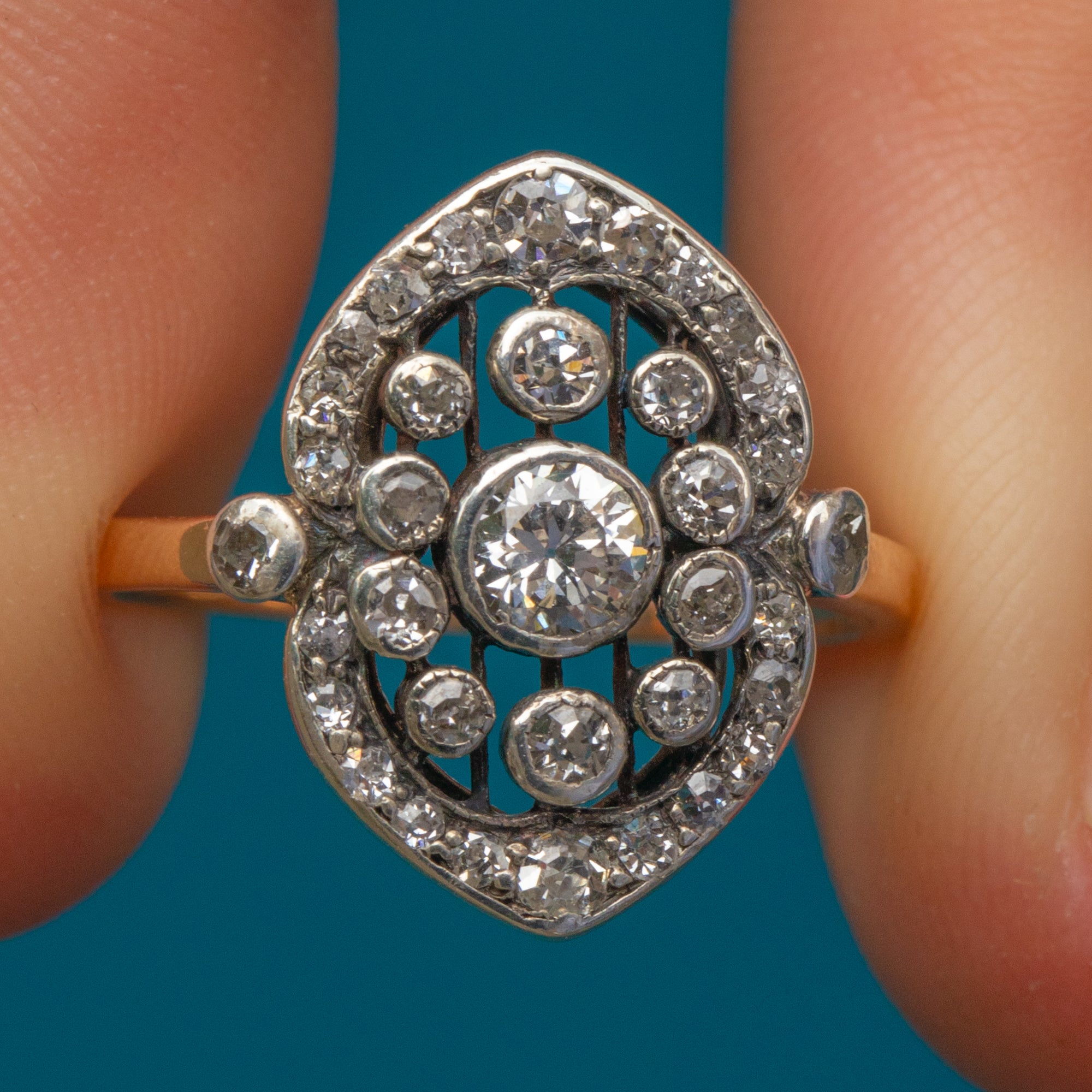 Antique Belle Epoche 15ct Gold Diamond Cluster Ring, 1.12ct