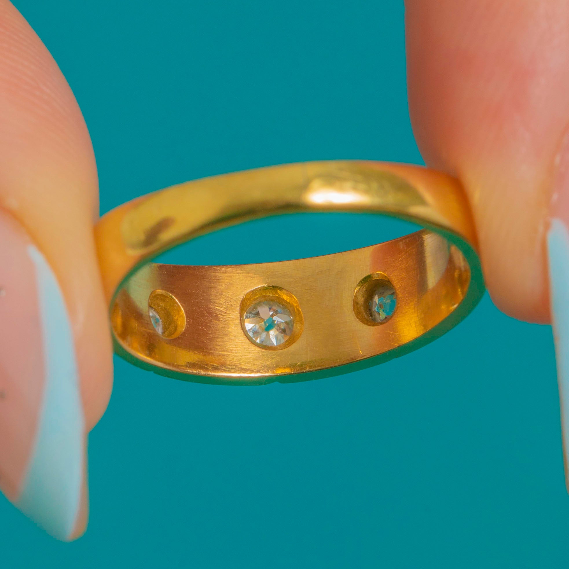 EXCELLENT: The Diamonds are secure in their star settings and show only minimal age-related wear. The 18ct Gold band is in excellent condition with a smooth, well-cared-for finish. Overall, this ring presents beautifully and is ready to wear.