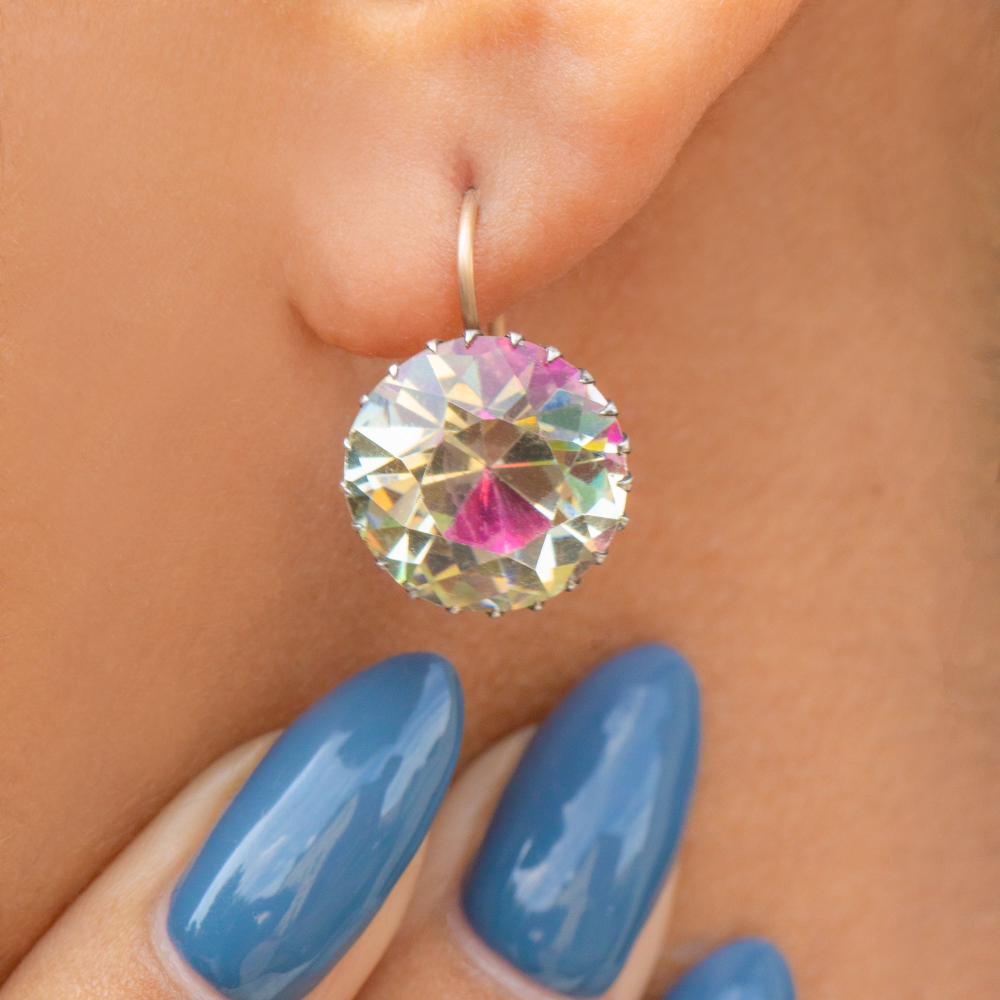 These Victorian earrings are impressive in size and their modest drop makes them the perfect pair to see you from day until night with ease. Antique foiled Paste in this condition is a rare find, so don't wait around to make these delightful earrings yours!