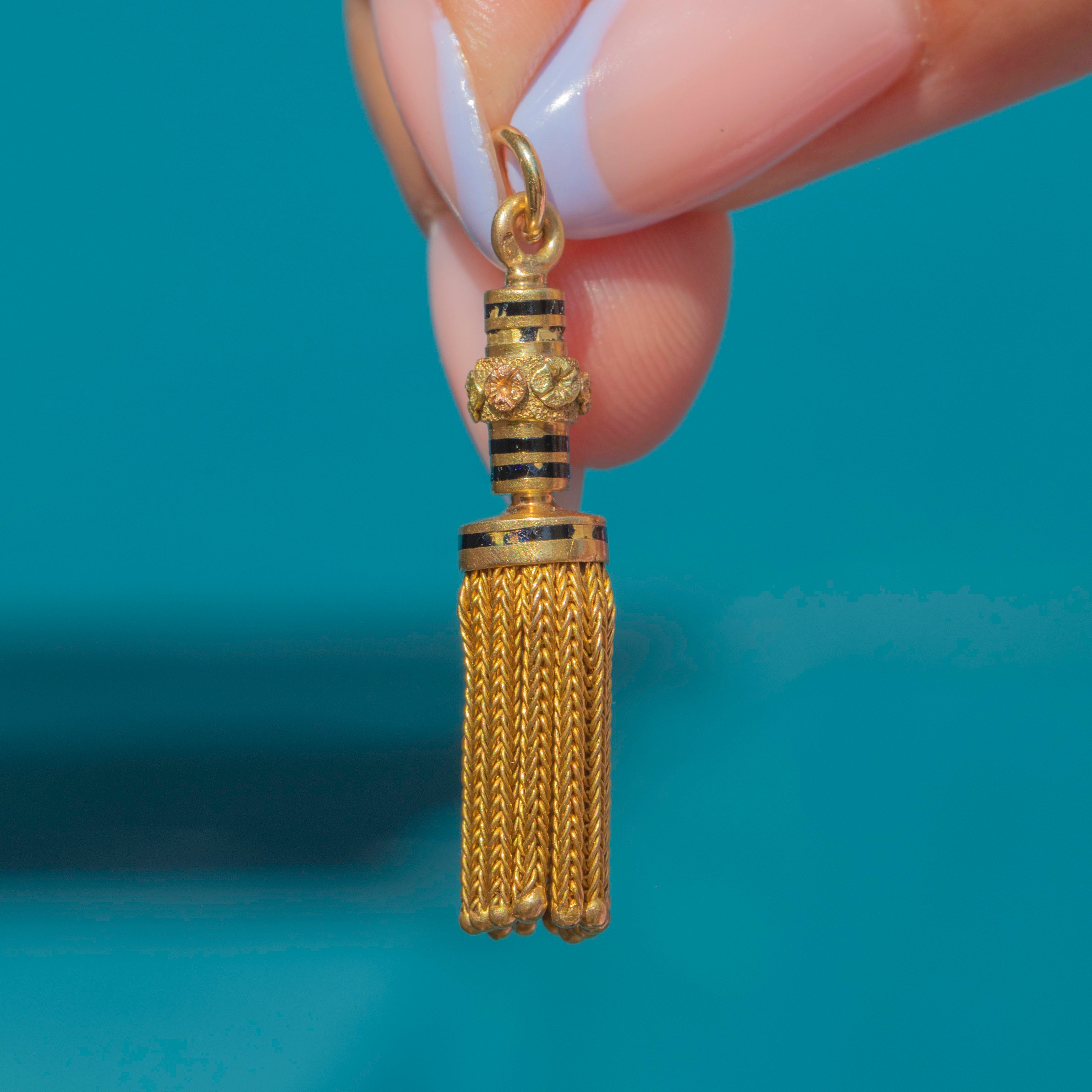 Antique French Napoleon III 18ct Gold & Enamel Tassel Pendant