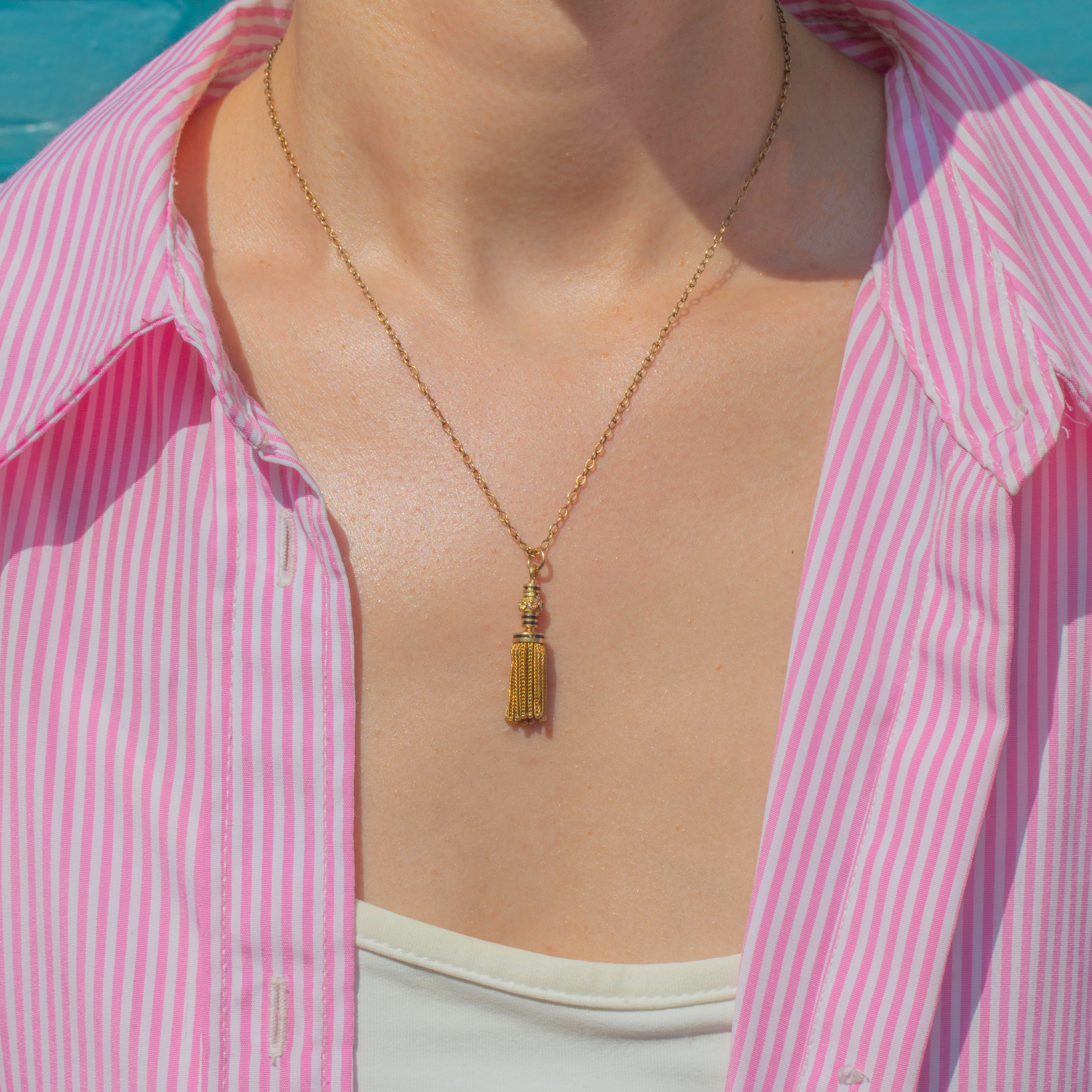 The foxtail link tassels suspend freely, bringing a fun sense of movement to the piece. Complete with an Eagle's Head hallmark, authenticating its French origin and metal purity, this Victorian tassel pendant will make a luxurious addition to your collection!