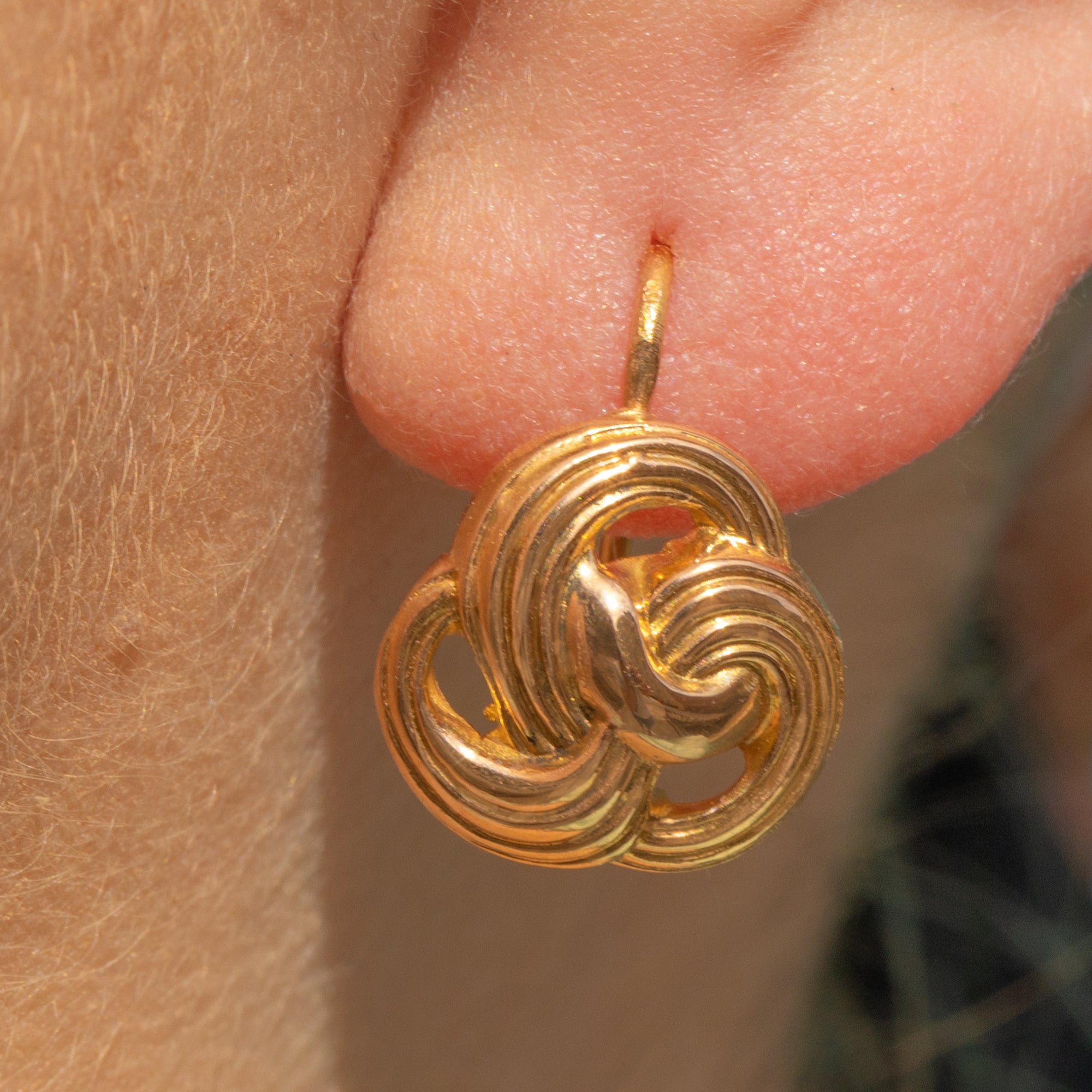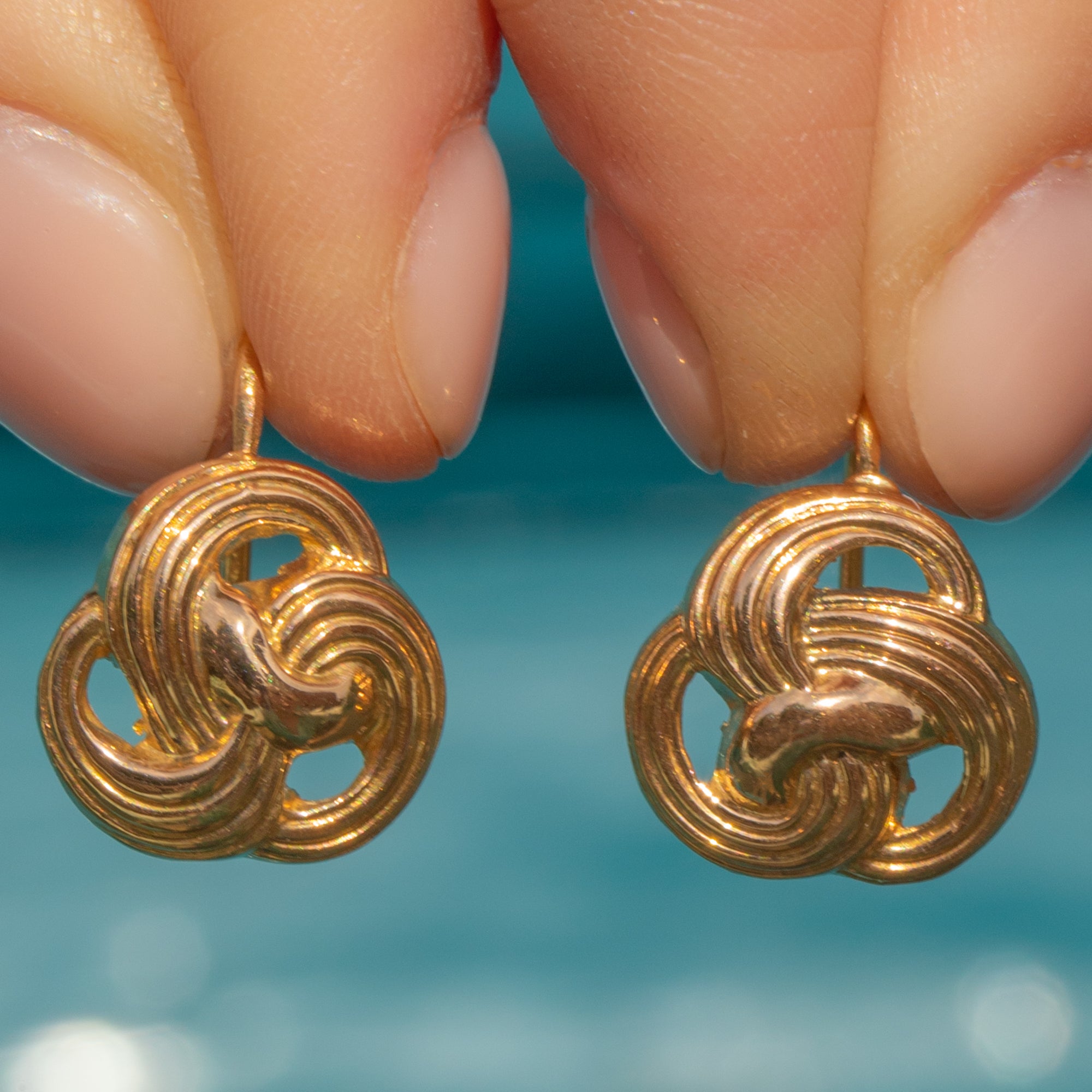 These antique French 18ct Gold knot lever-back earrings will bring a touch of refined elegance to your lobes! Crafted from brightly saturated 18ct Gold, each earring features intricately formed curvaceous knots that come to life under the light.