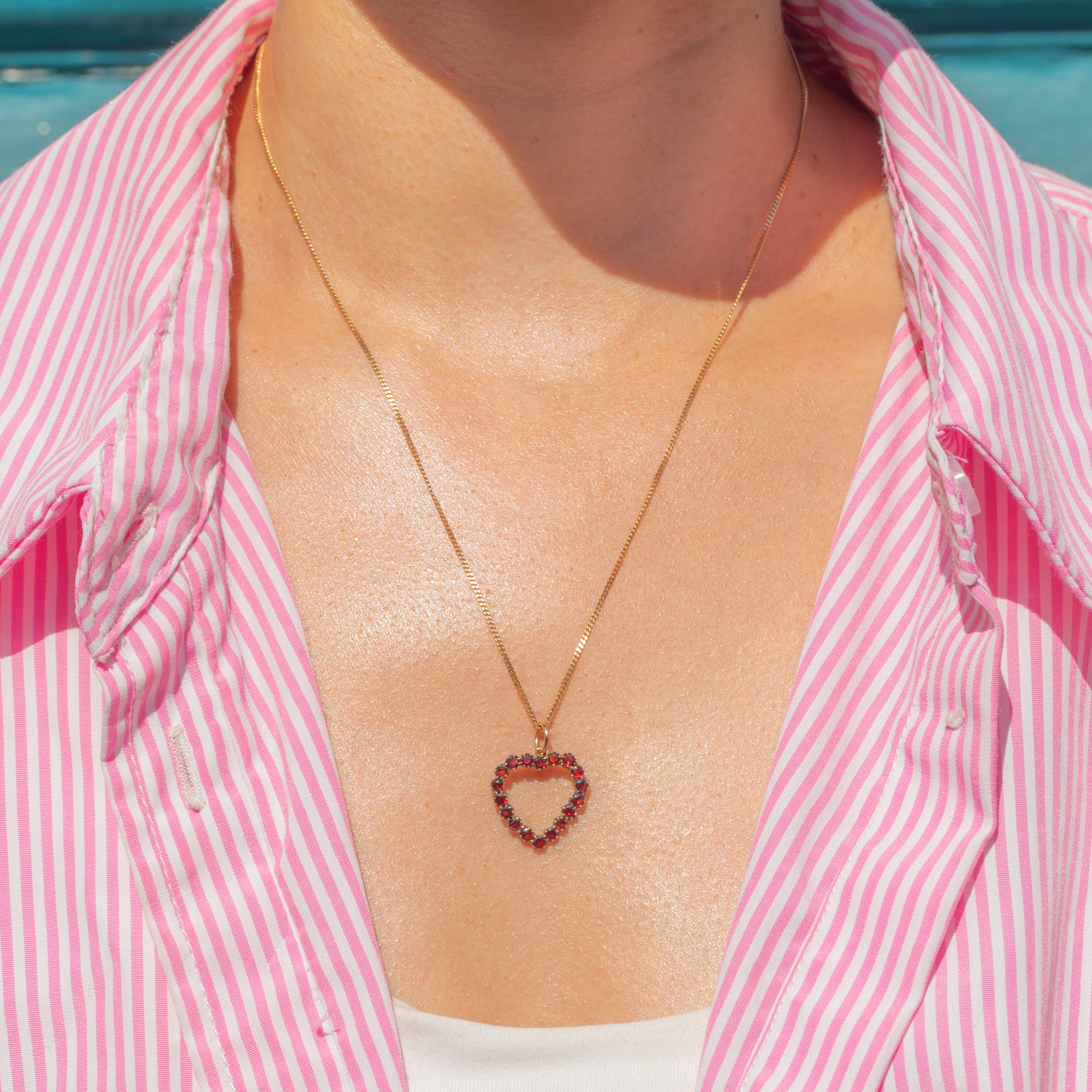 VERY GOOD-EXCELLENT: This antique Garnet heart pendant is in superb condition. The Garnets are radiant and secure within their settings. The Gold casing is glossy, with minor spots of discolouration to the back of the pendant, which cannot be seen while the pendant is worn. With a securely soldered jump ring, this Victorian heart pendant can be worn with utmost confidence!
