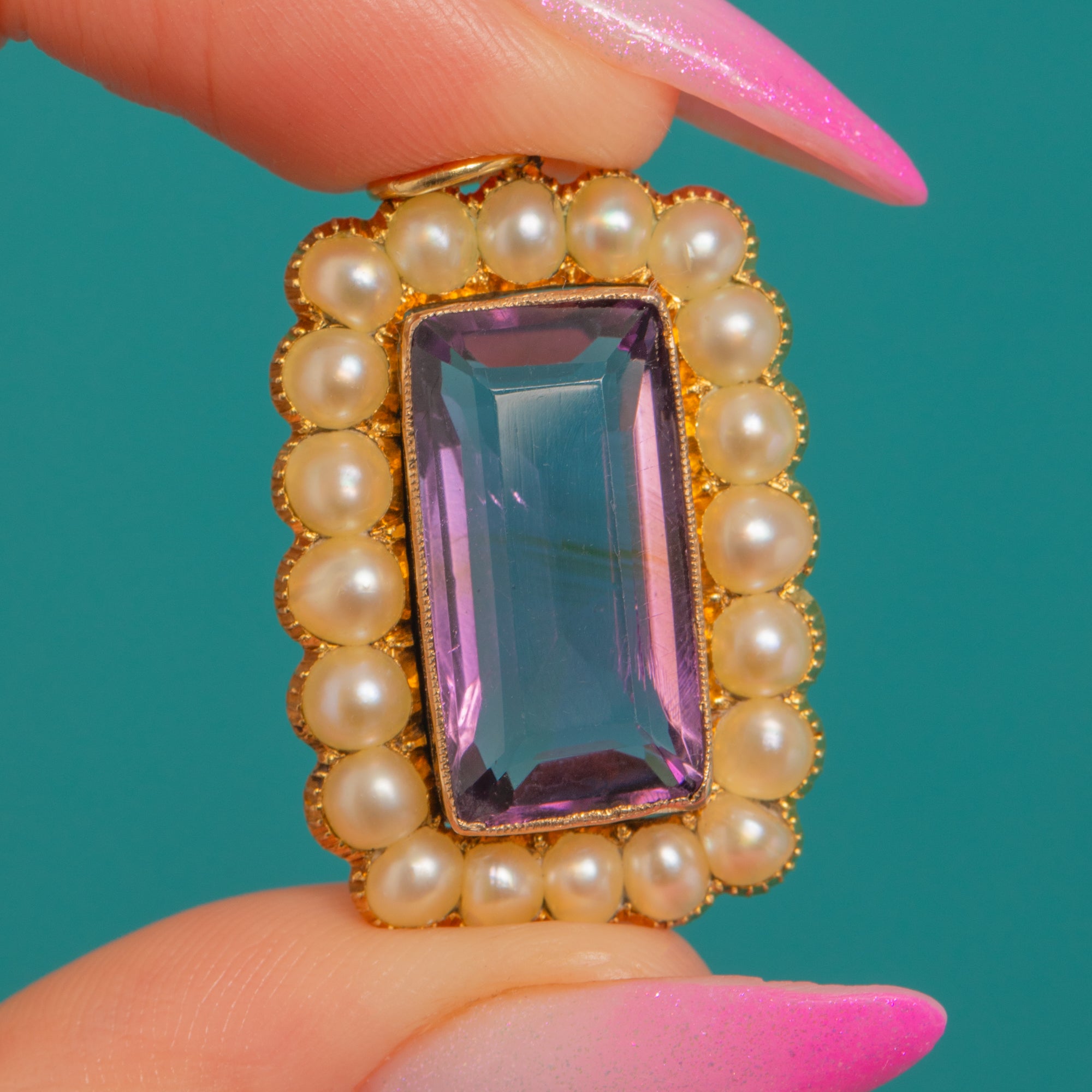 Antique Georgian 15ct Gold Amethyst Natural Pearl Pendant