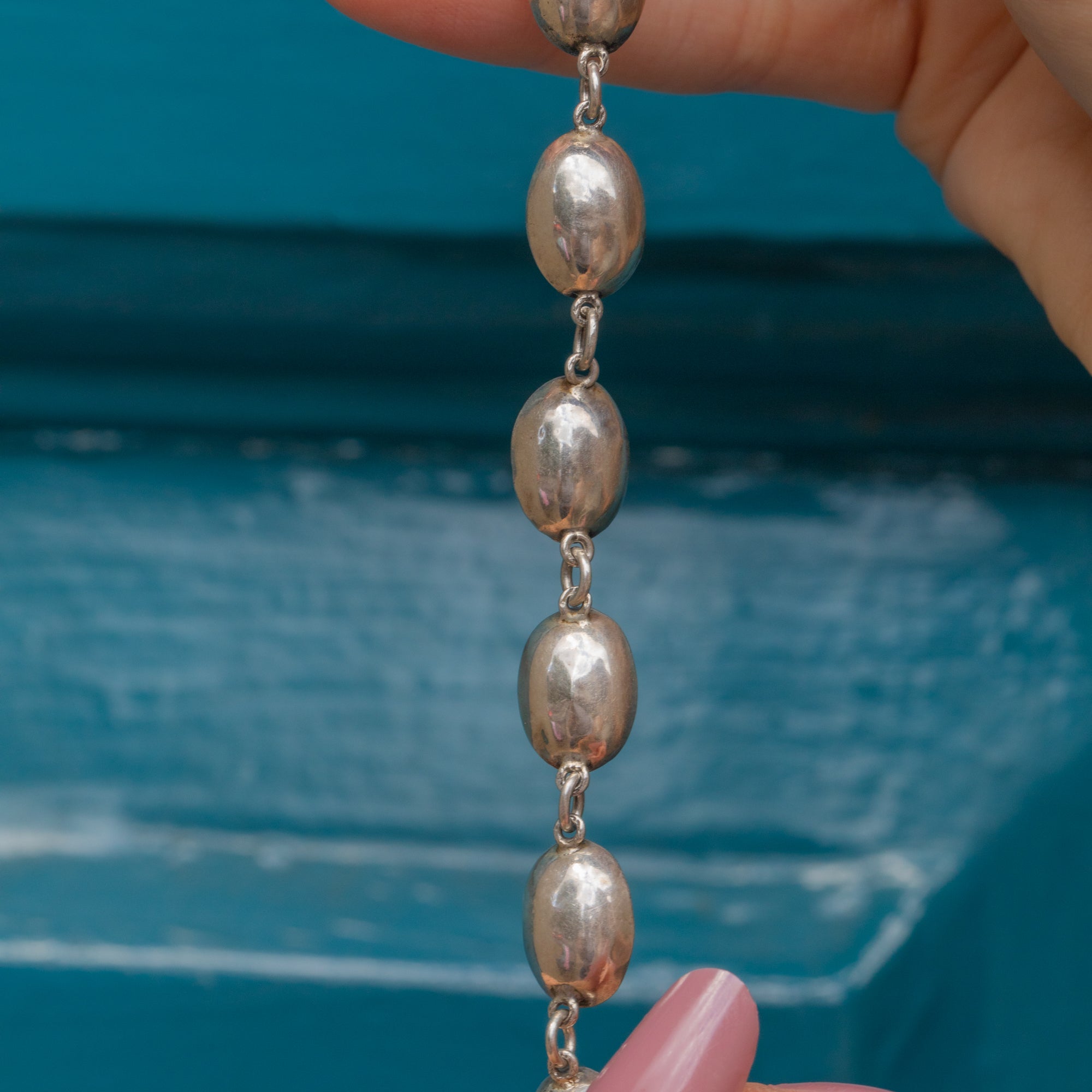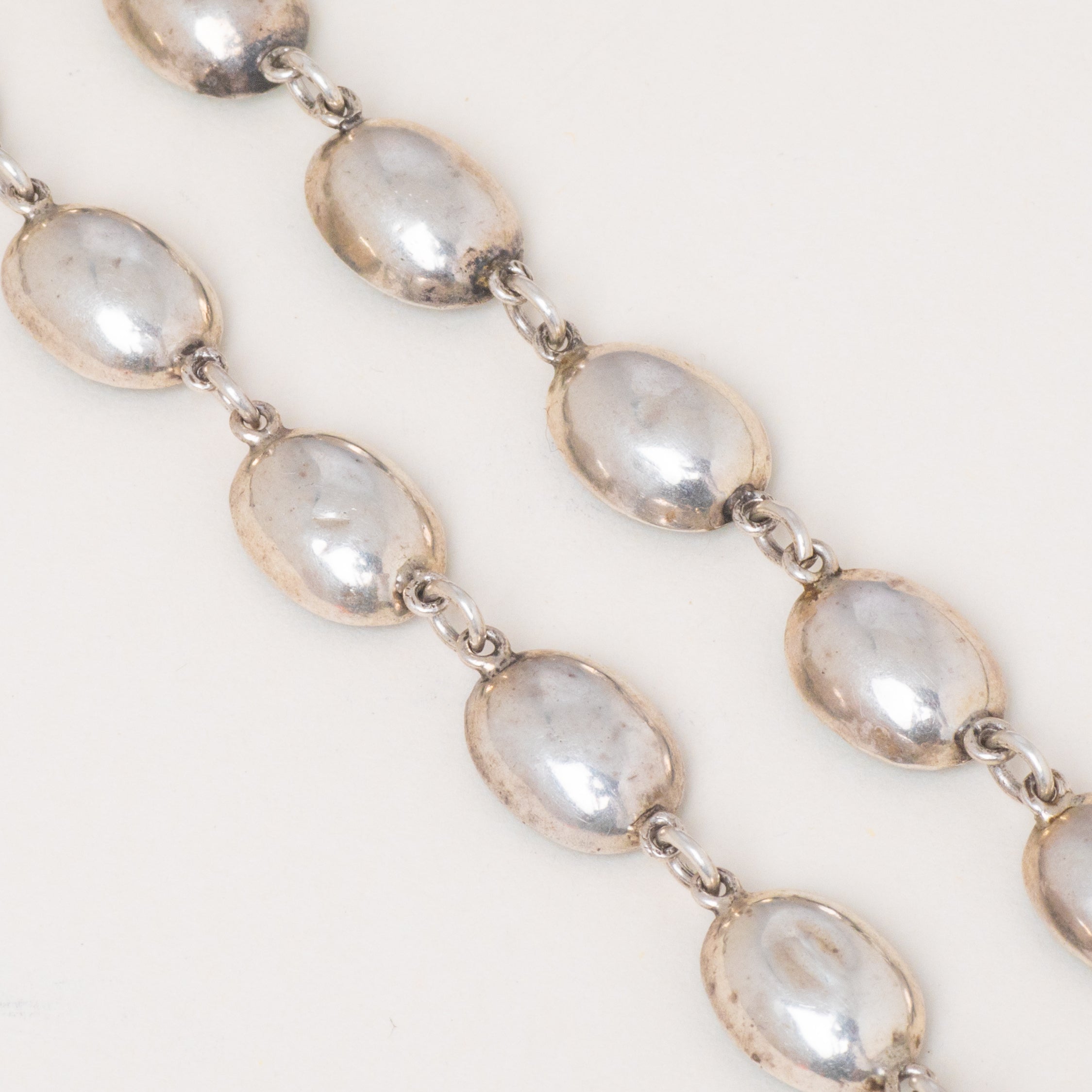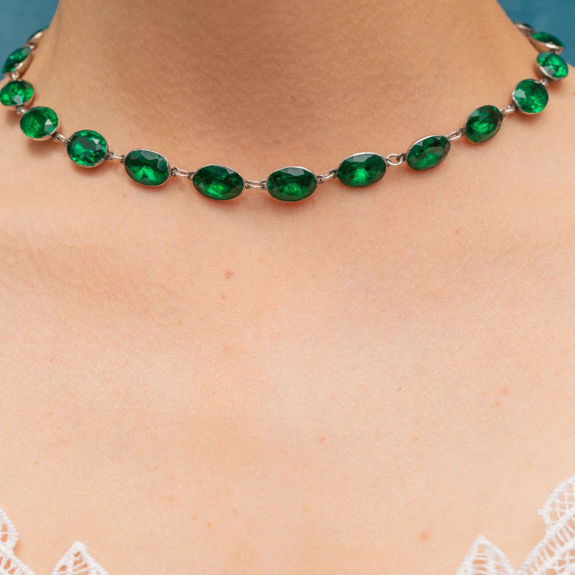 With domed backs crafted from lustrous Sterling Silver, this riviere necklace provides the utmost comfort as she is worn. With even her clasp showcasing a radiant green Paste, the attention to detail is second to none!