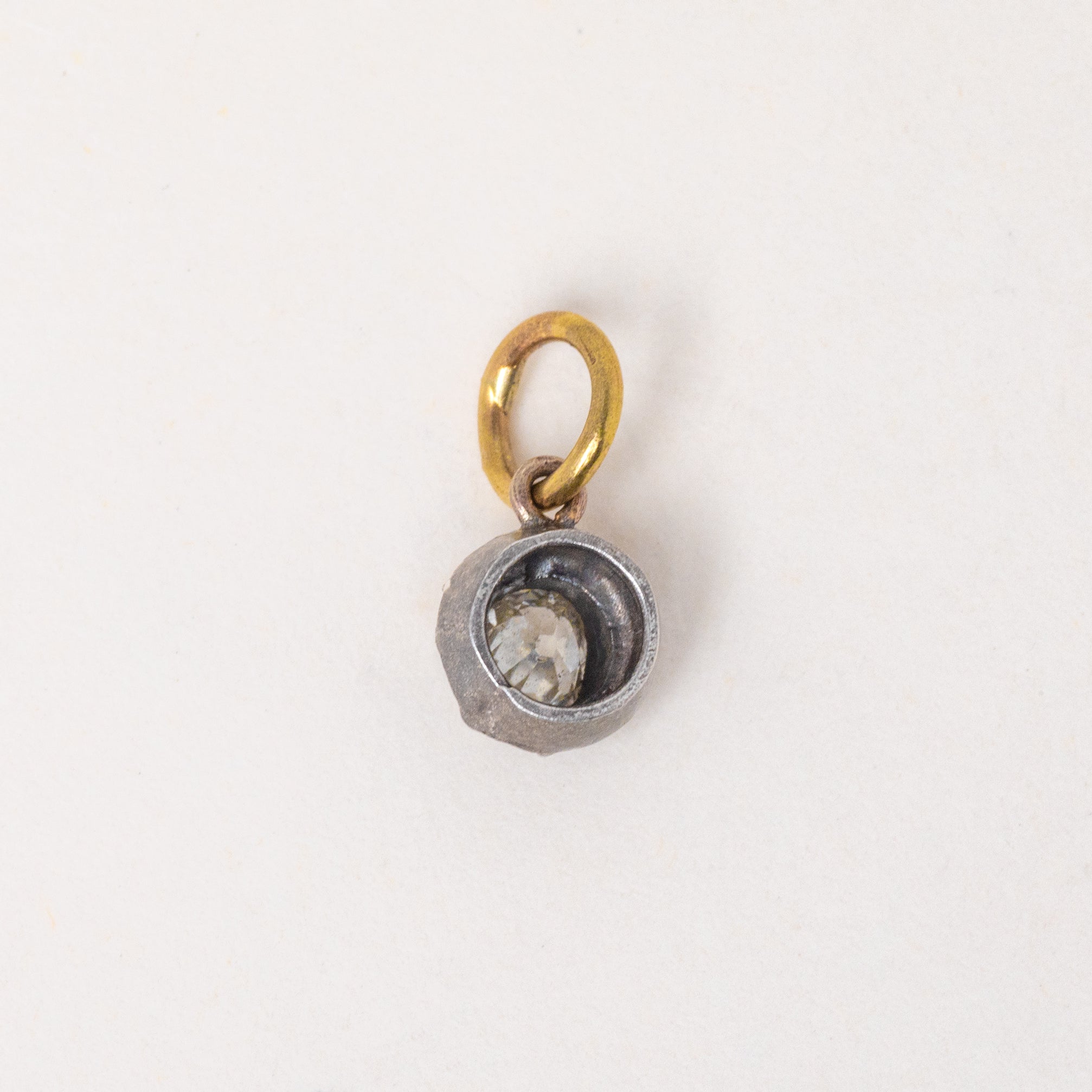 MATERIALS: Tests as Sterling Silver with 18ct Gold jump ring, Old-mine cut Diamond (0.20ct).