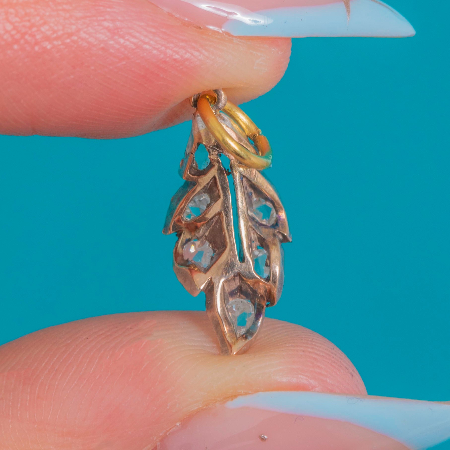 Antique Rose-Cut Diamond Leaf Charm