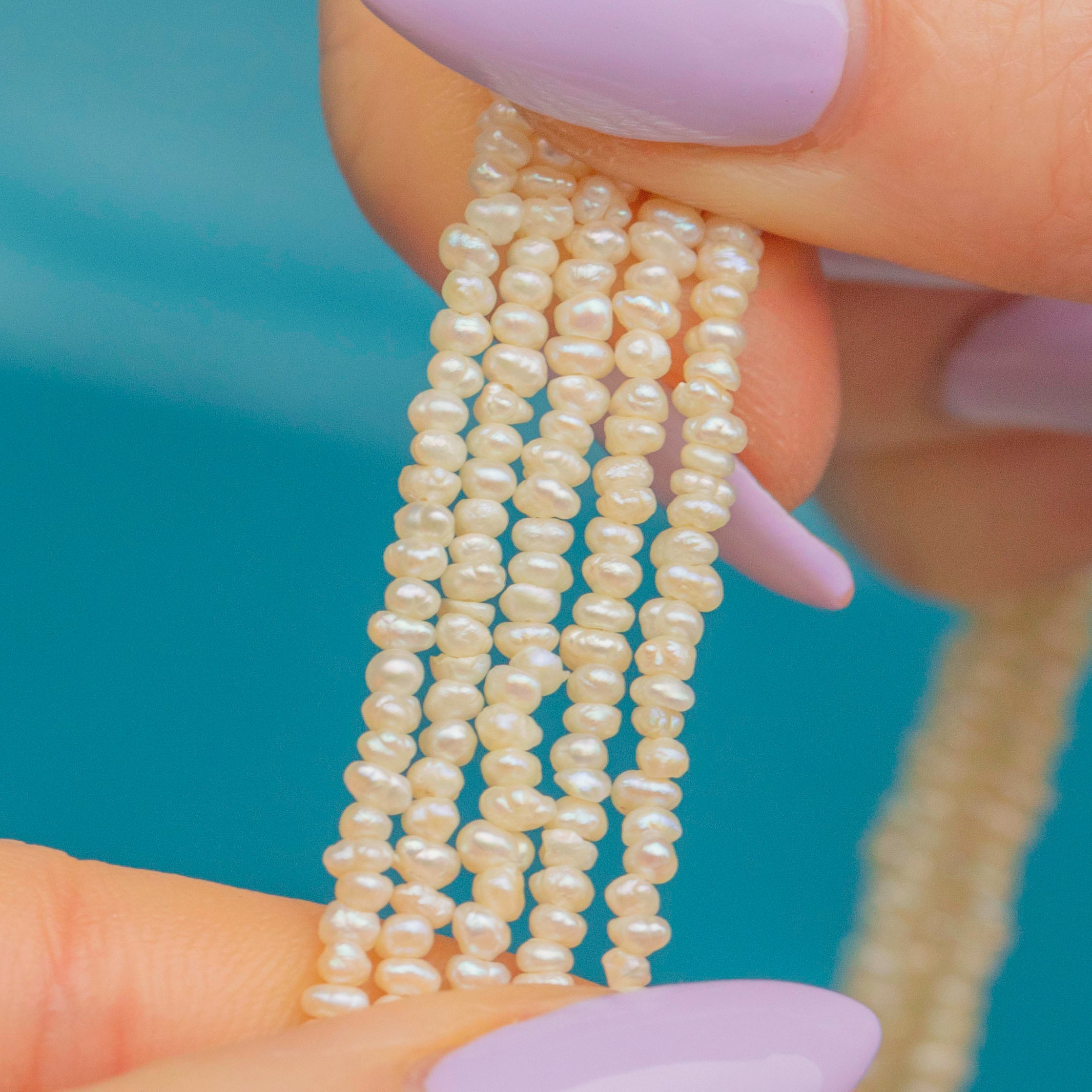 The delicate arrangement of lustrous seed Pearls is complemented beautifully by their 18ct White Gold clasp, studded with four scintillating rose-cut Diamonds.