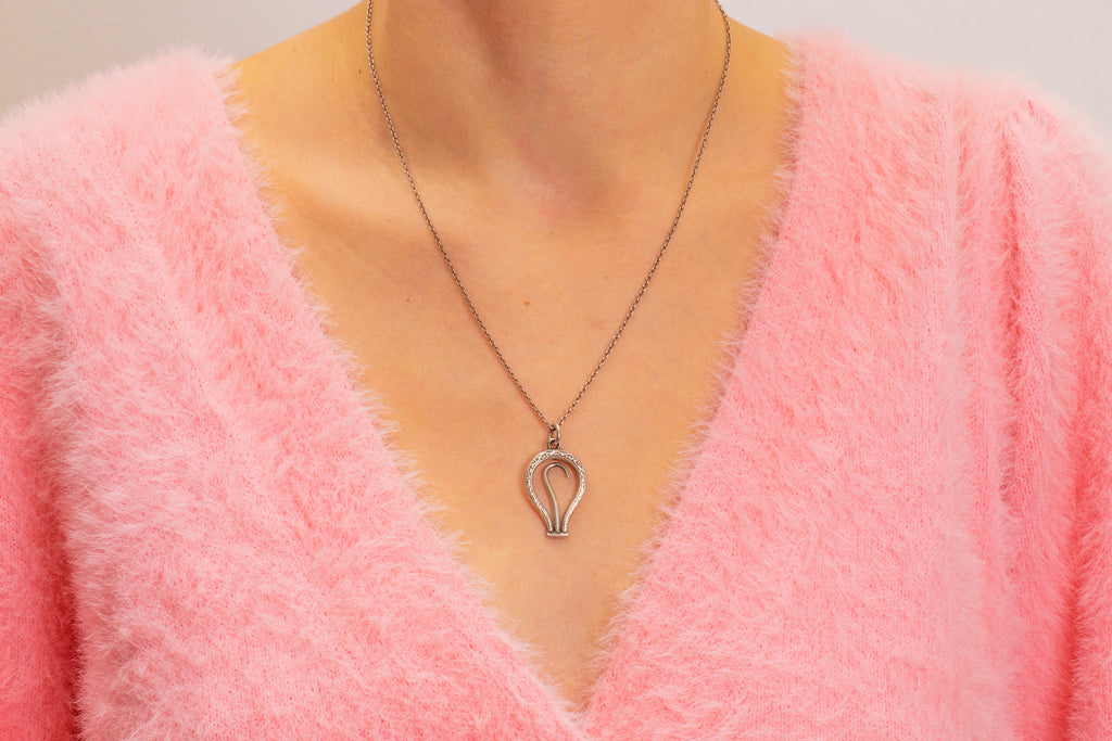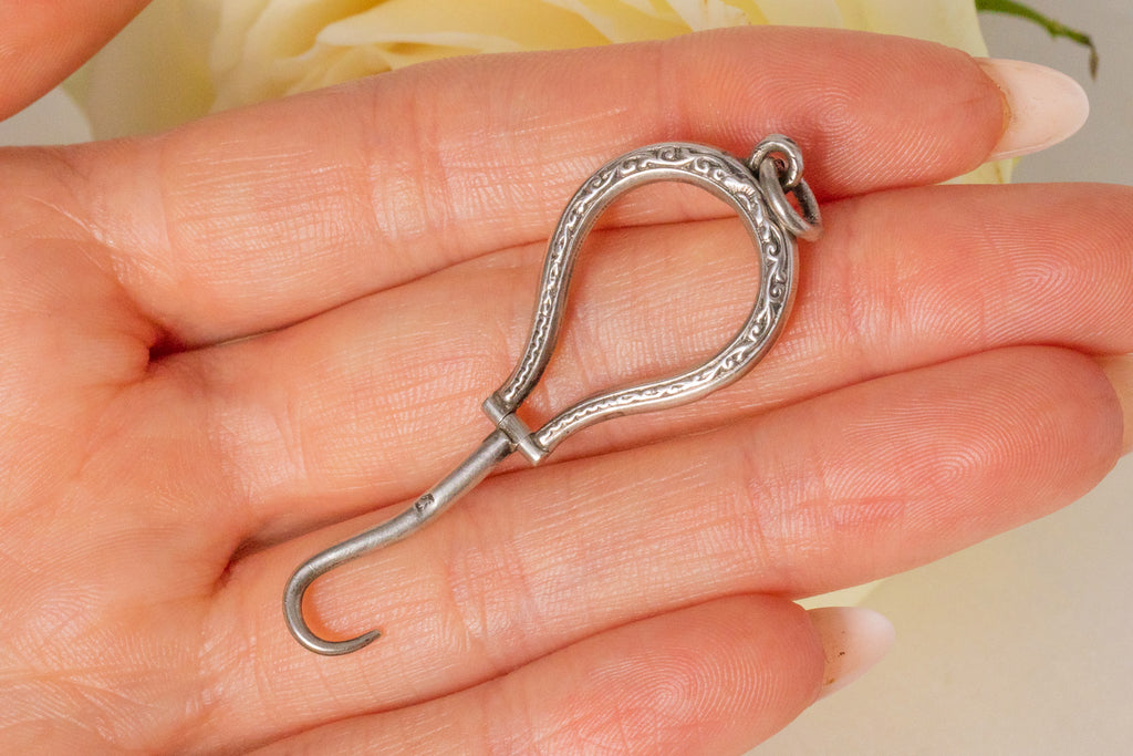 An antique Silver engraved button hook pendant to add a touch of intrigue to any jewellery collection! Originally designed to button up items of clothing, she now doubles up as a unique pendant, ready and waiting for whenever she may be needed.