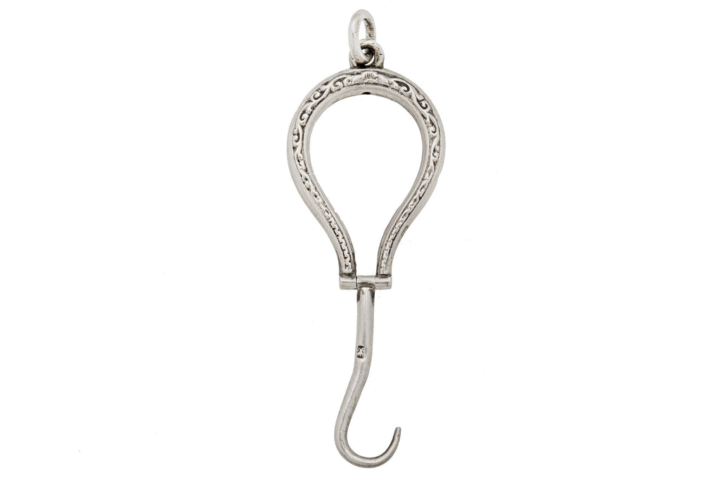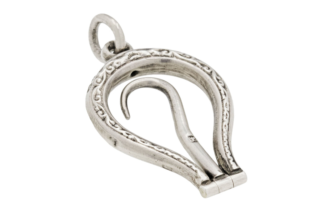 Antique Silver Engraved Button Hook Pendant