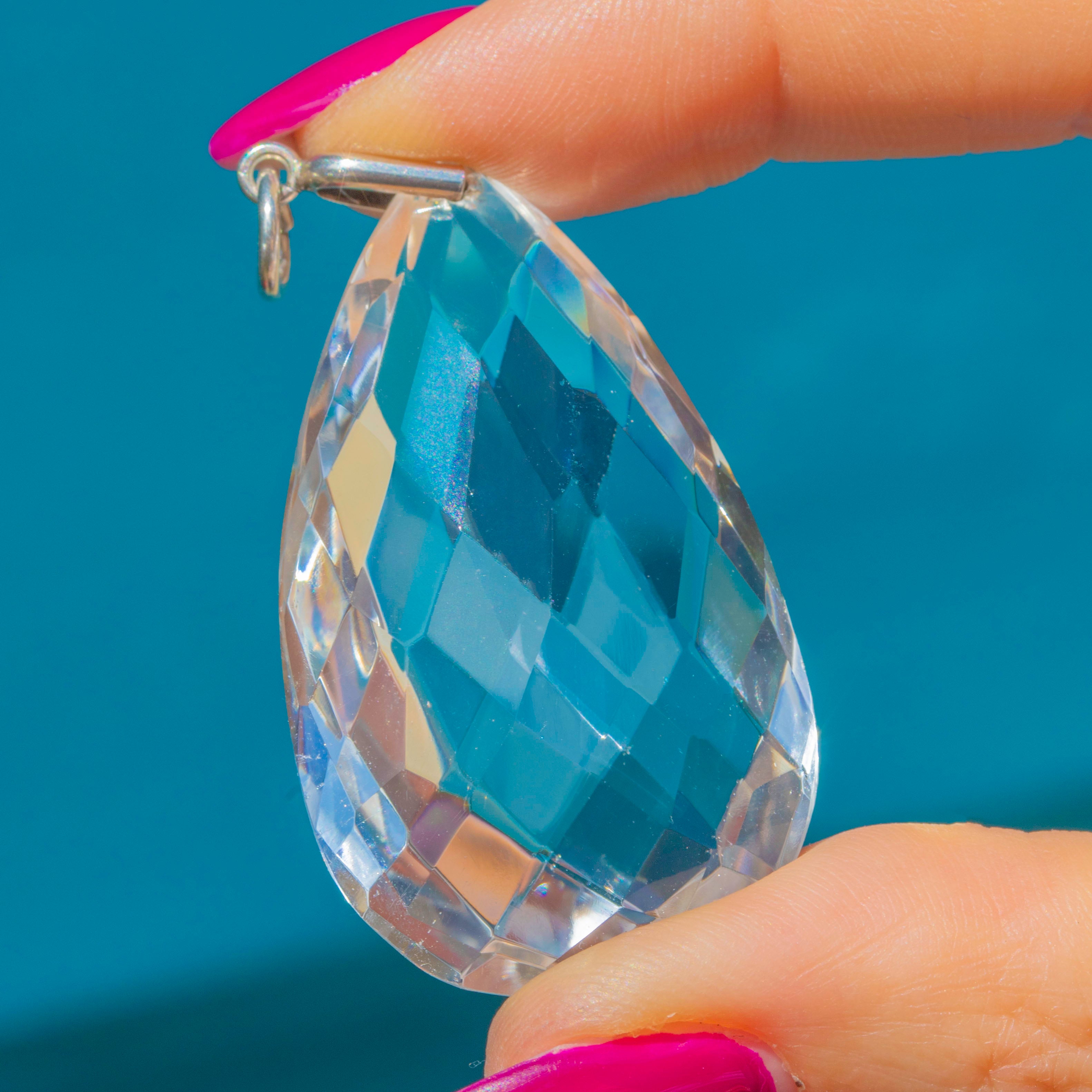 Antique Silver Faceted Rock Crystal Pear Pendant, 61.90ct