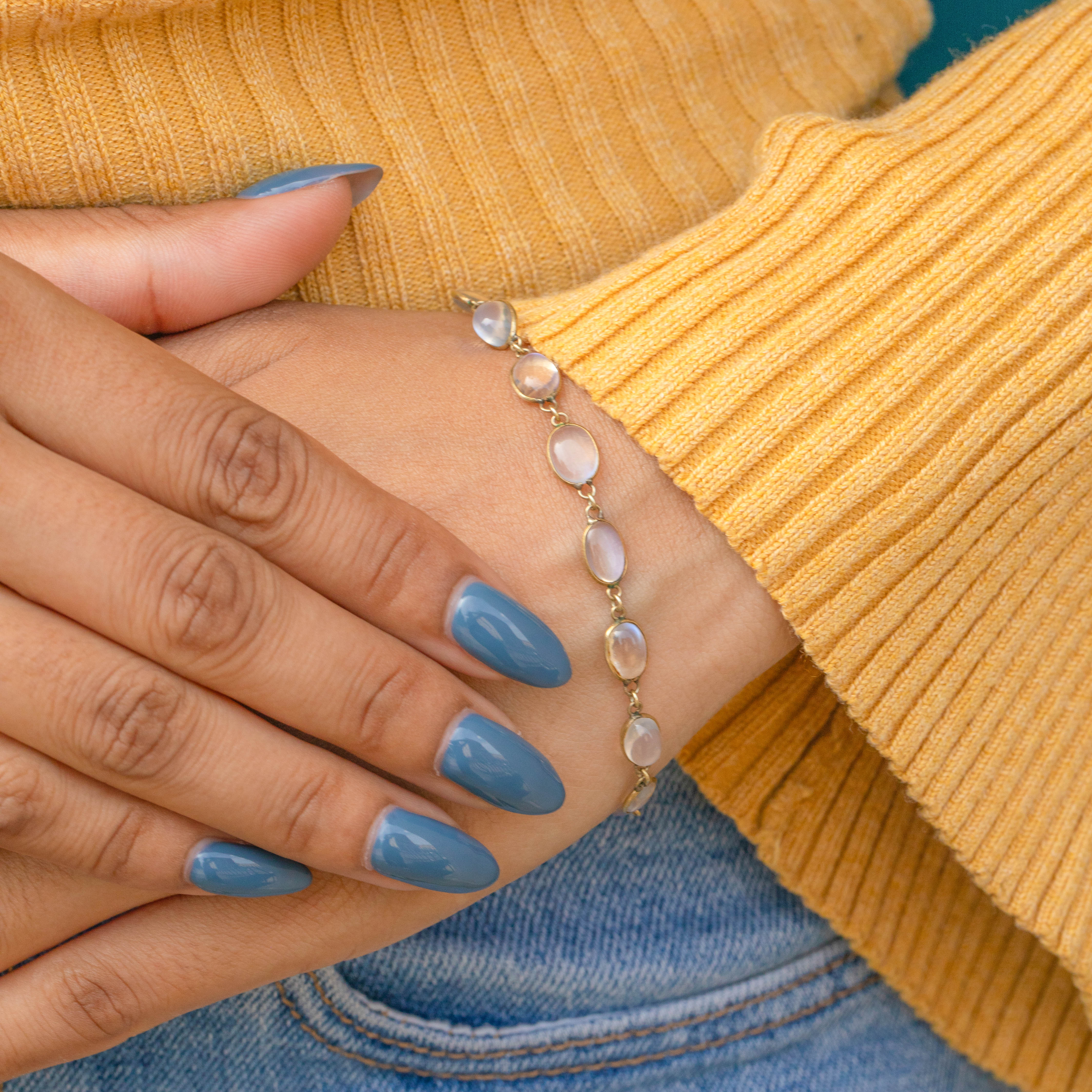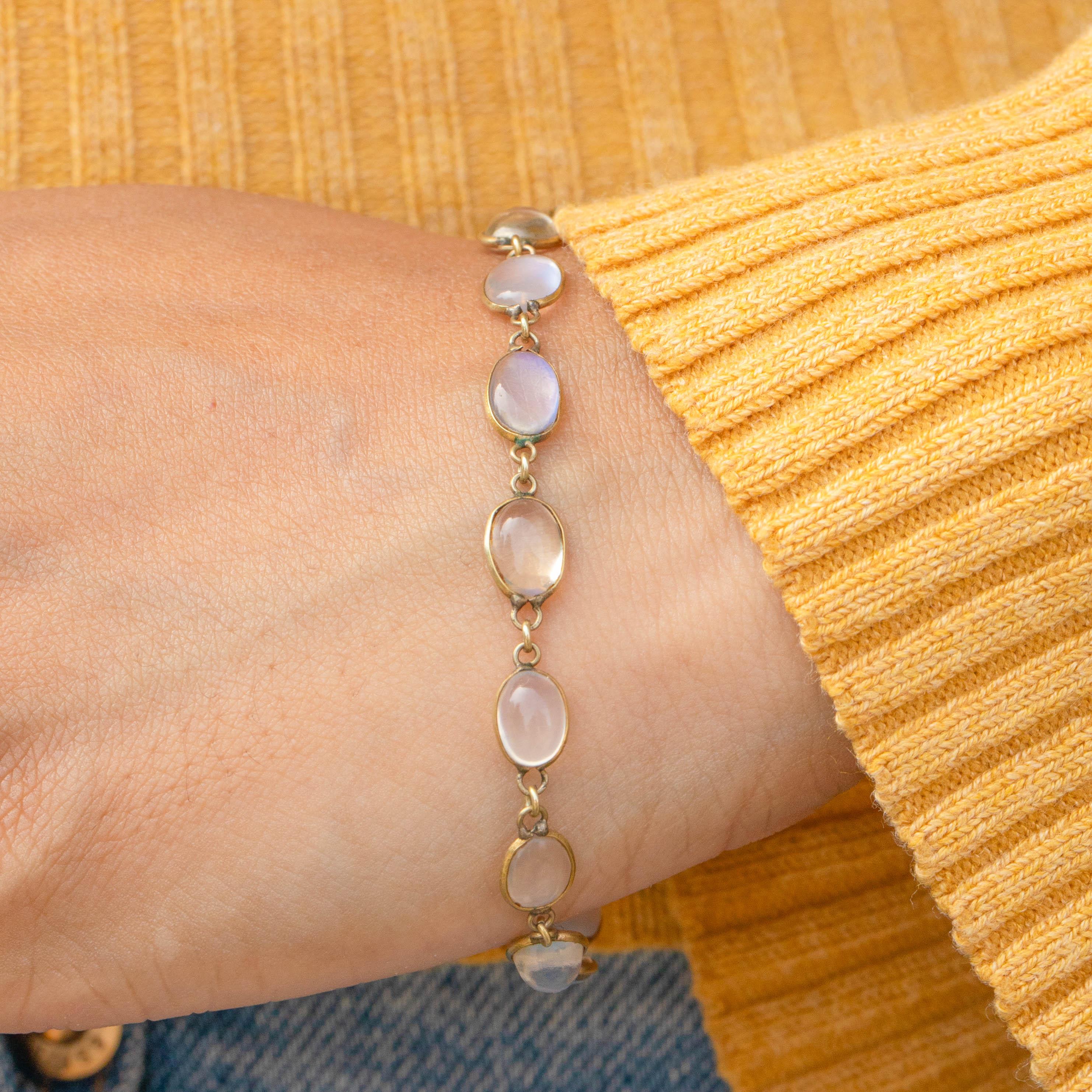 This spellbinding antique Silver Gilt Moonstone bracelet will add a touch of ethereal beauty to your repertoire! With a spread of 11.20ct, each glowing Moonstone cabochon reveals a mesmerisng adularescence, for which antique Moonstones are so revered.