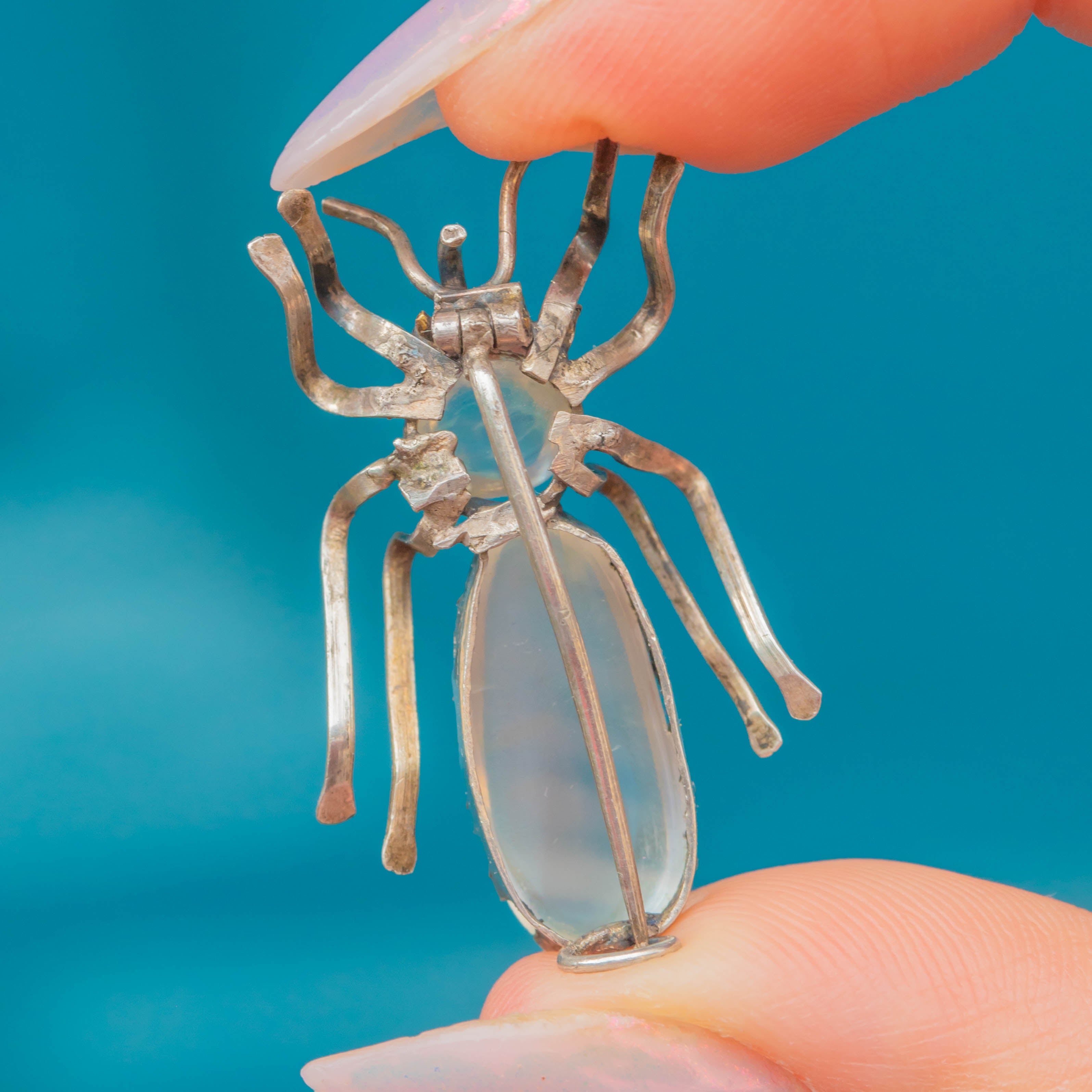 Antique Silver Moonstone Bug Brooch, 3.10ct