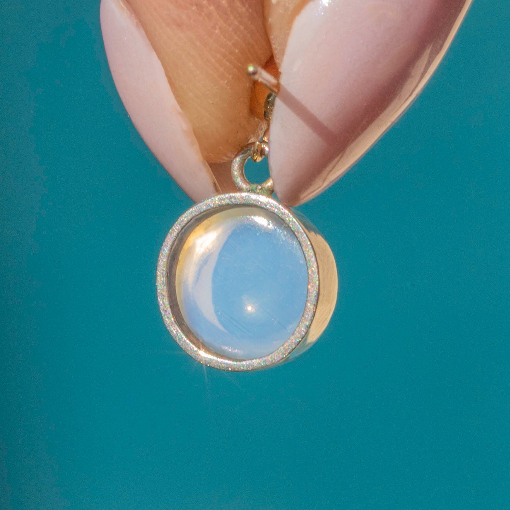 Moonstones are 7.5mm in diameter, weighing approx. 1.16ct combined.