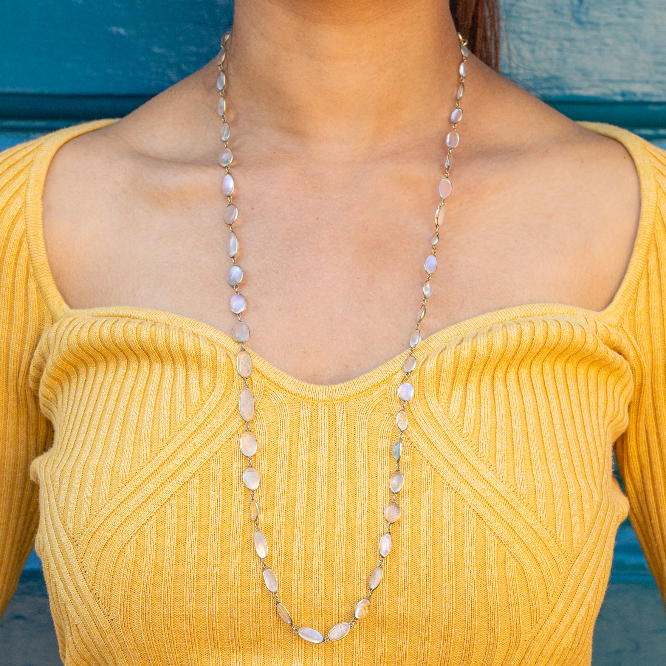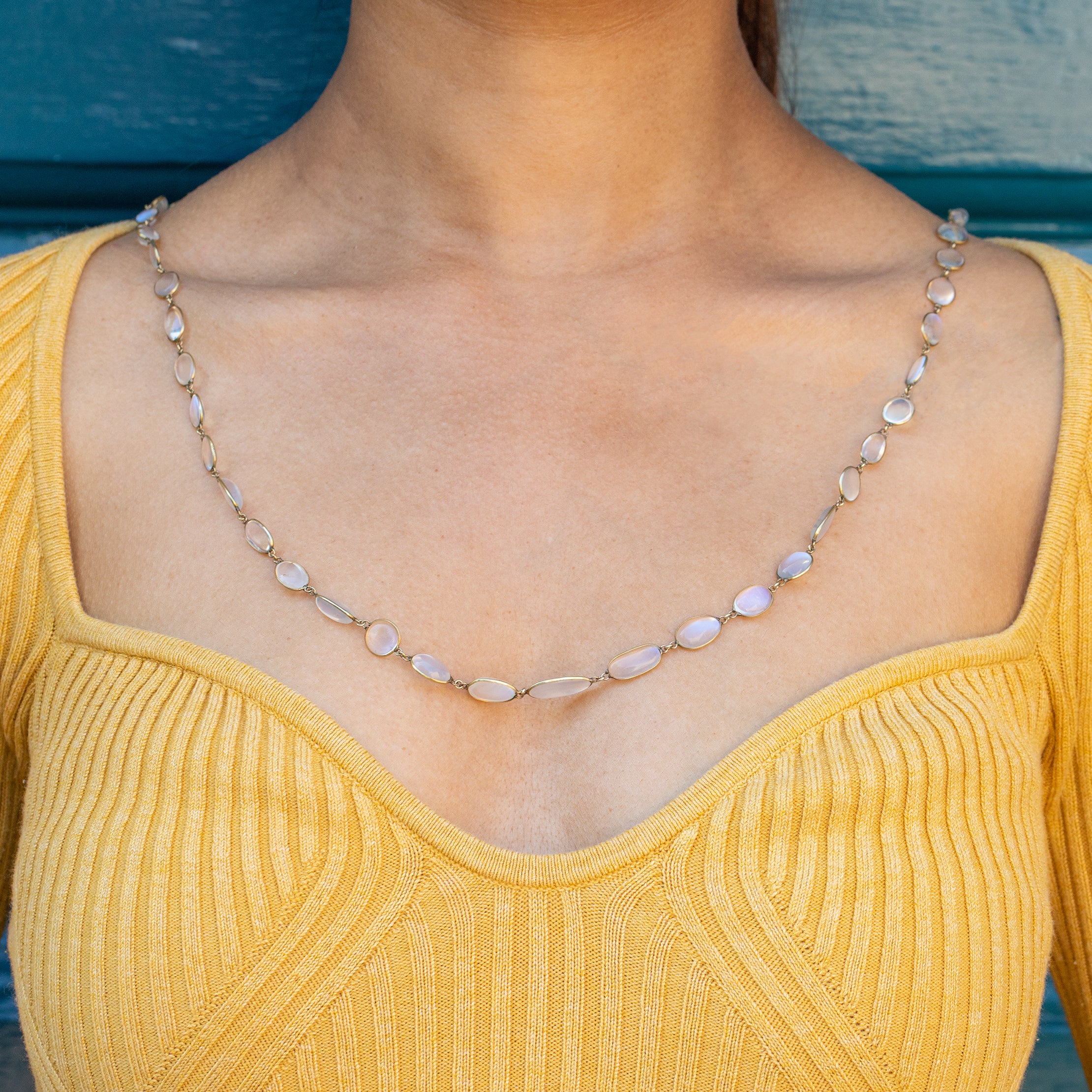 A Riviere necklace is a fabulous choice for everyday wear, sure to pair perfectly with any outfit! This piece measures 31" long and can either sit long or be wrapped around twice for a layered look. With Moonstone being June's birthstone, this antique Moonstone necklace is the ideal gift for a June baby!