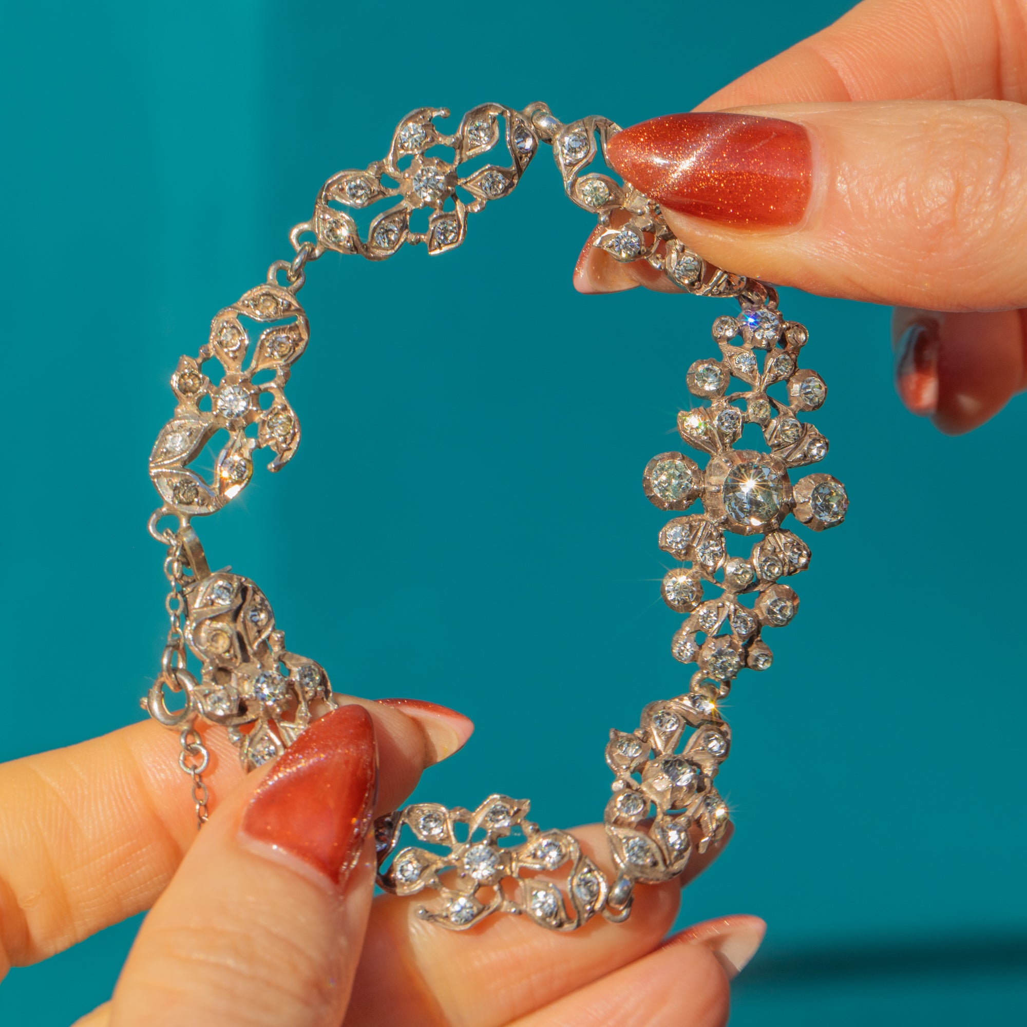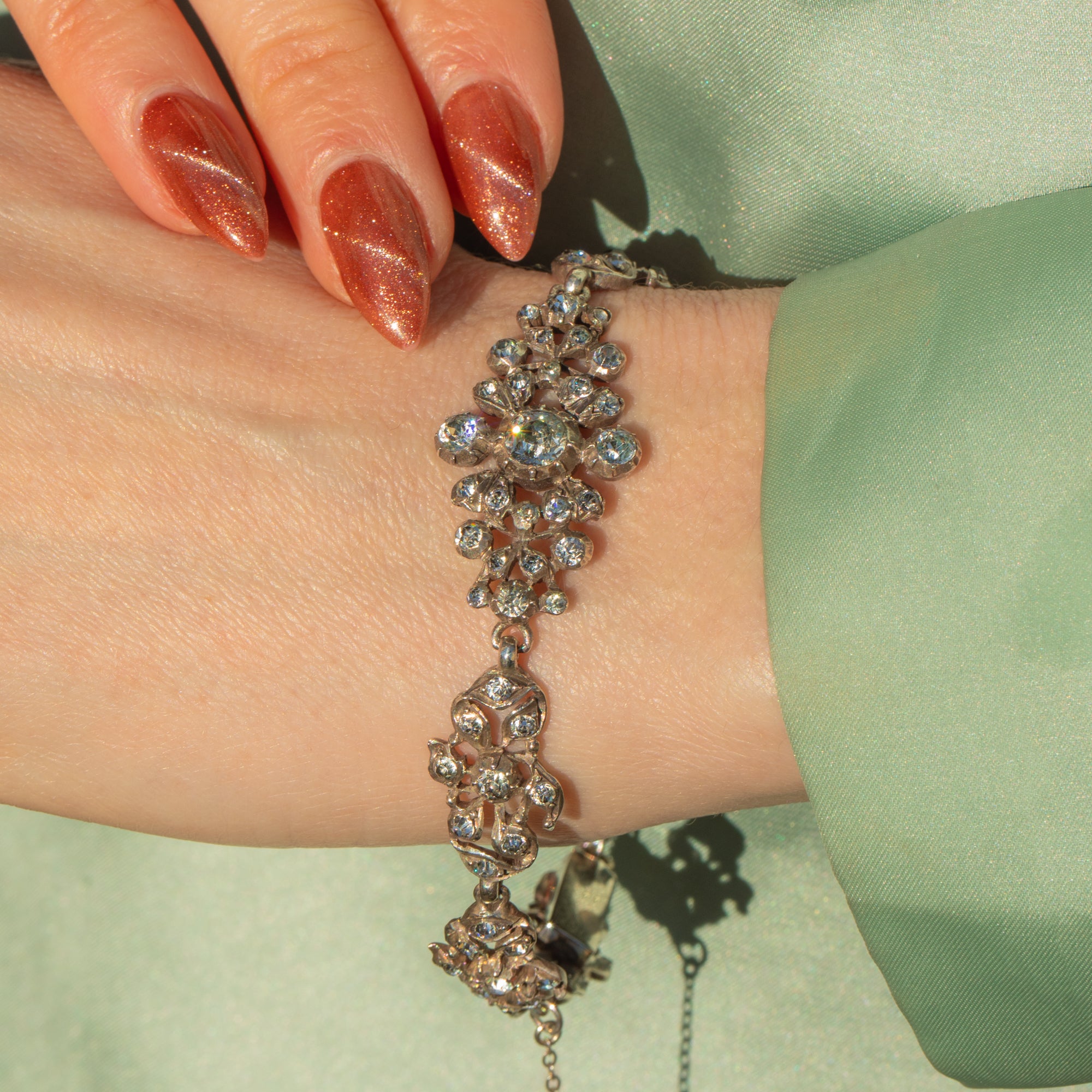 This antique Silver Paste flower bracelet is a gorgeous piece steeped in Victorian charm! Radiating timeless elegance, this Victorian Paste bracelet is set to captivate all that lay their eyes on her!