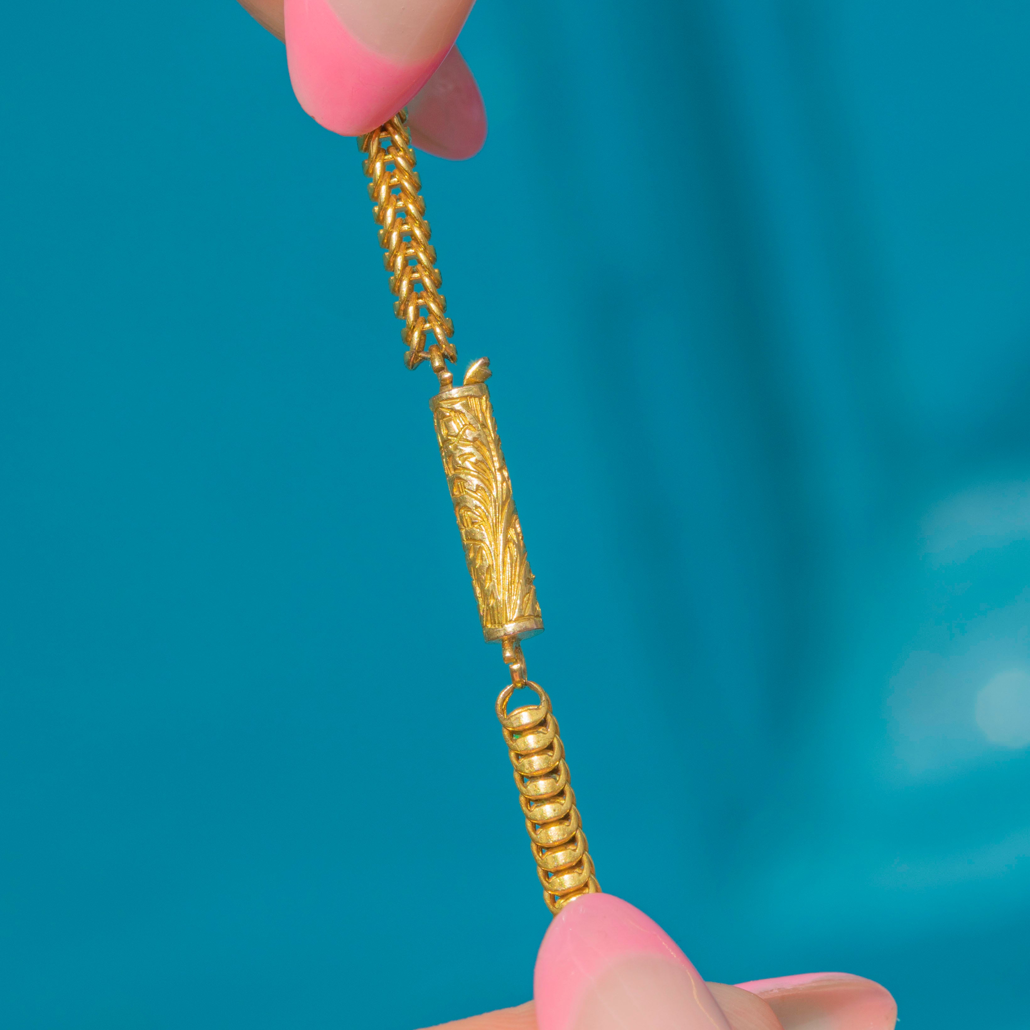 EXCELLENT: This antique Victorian 18ct Gold snake chain is in mint condition. The slinky 18ct Gold links are all perfectly connected, with no dings or scuffs visible. The barrel clasp works superbly, allowing you to wear this Victorian Gold snake chain with complete confidence!