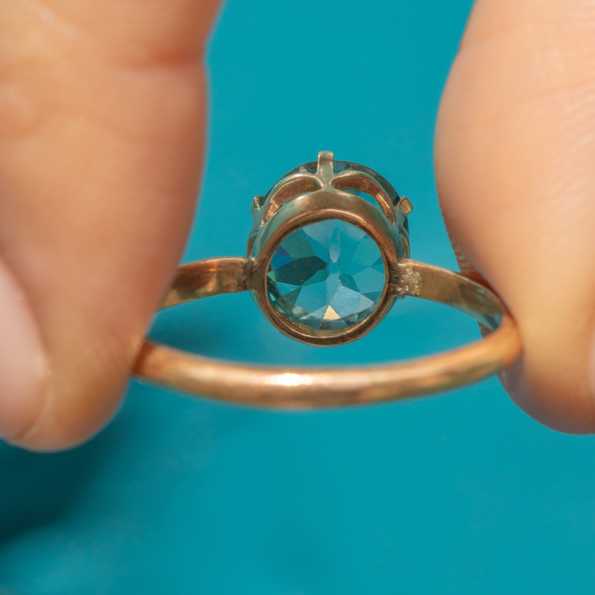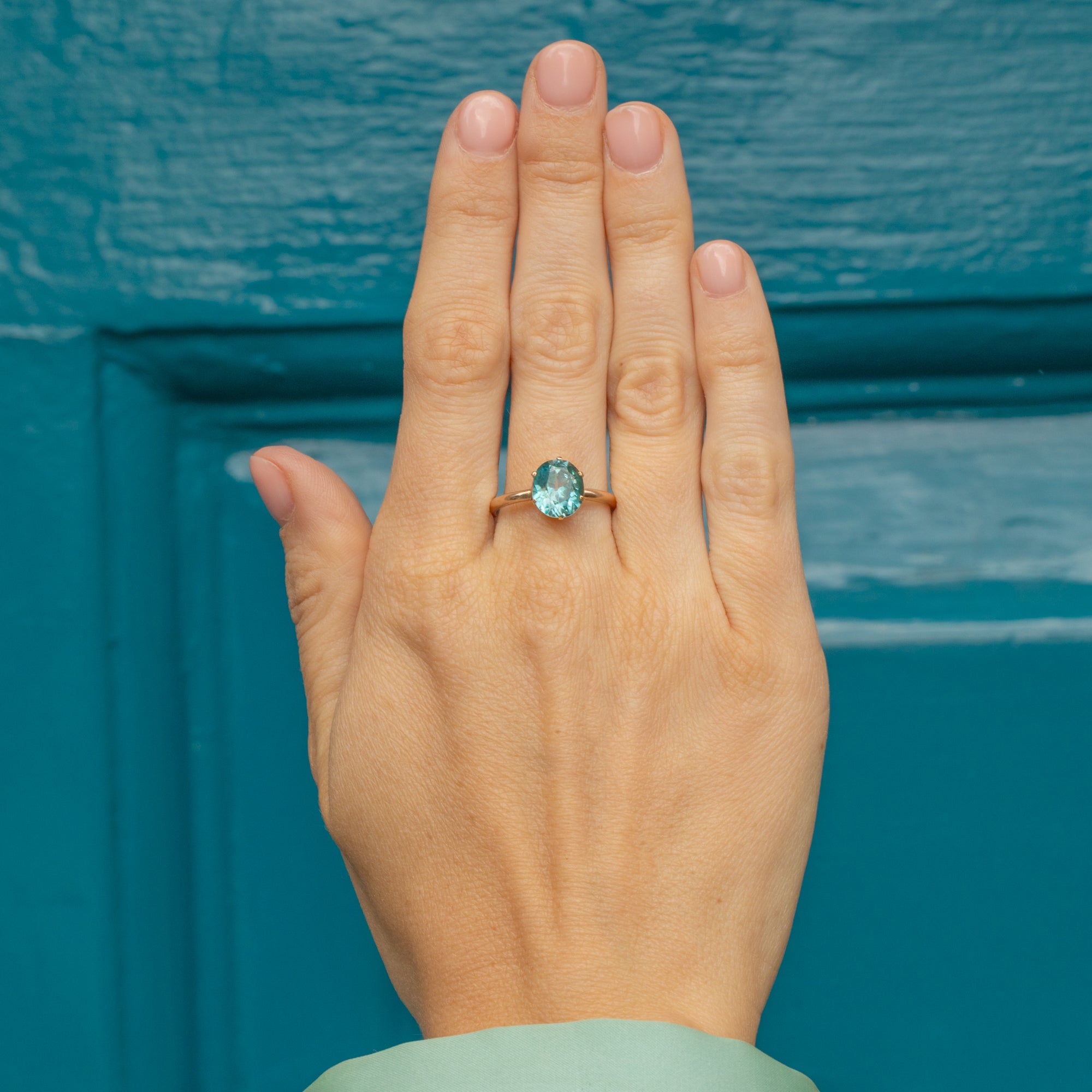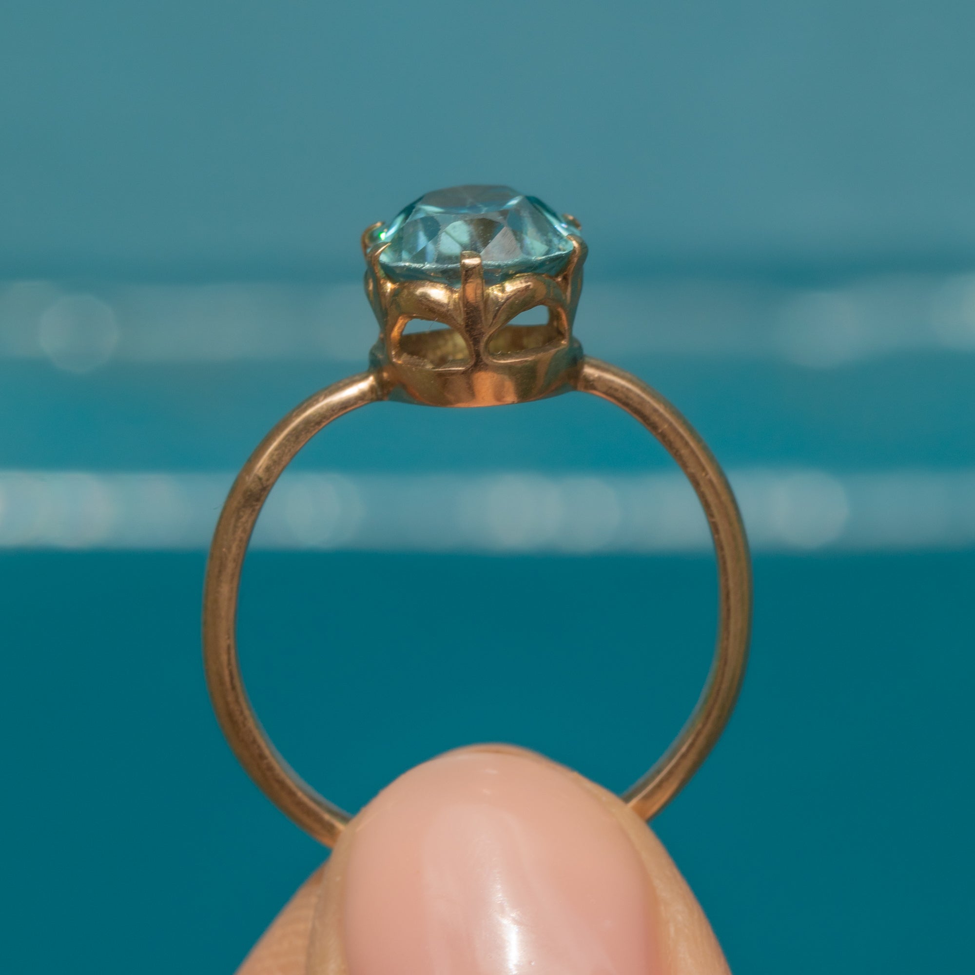 Art Deco 14ct Gold Blue Zircon Ring, 2.25ct