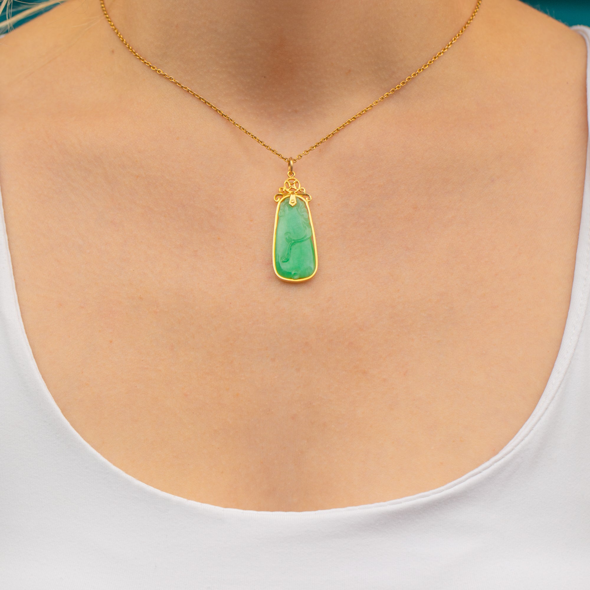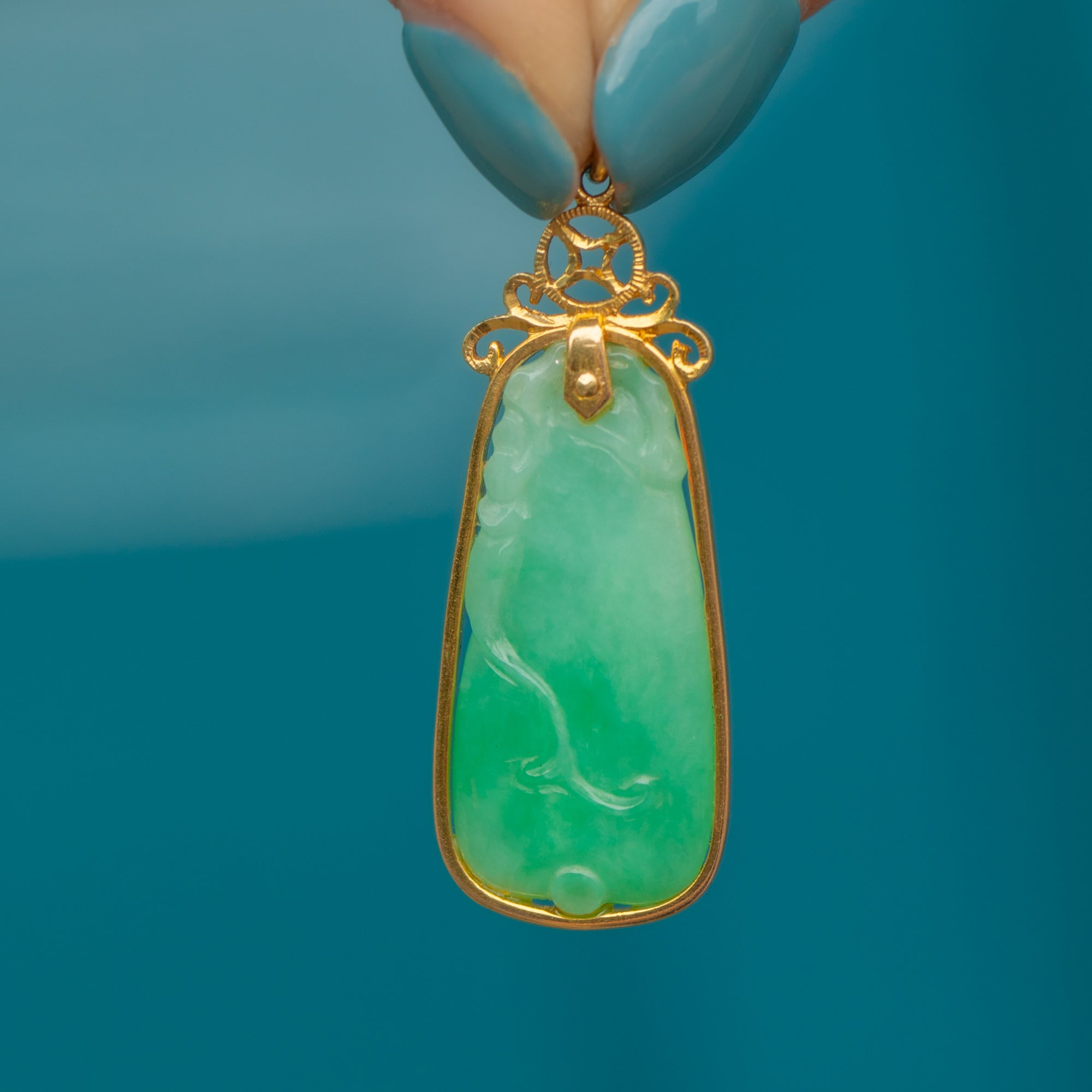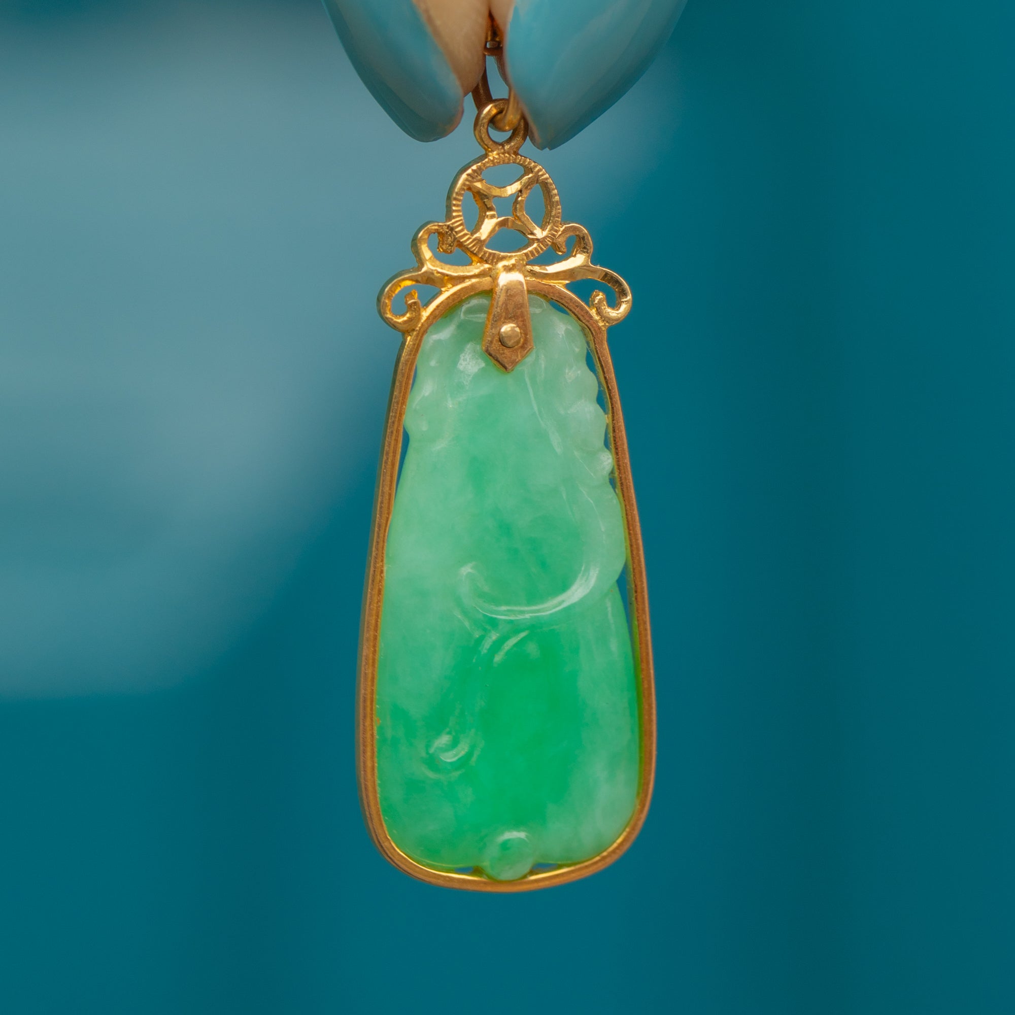 Art Deco 14ct Gold Carved Jade Pendant