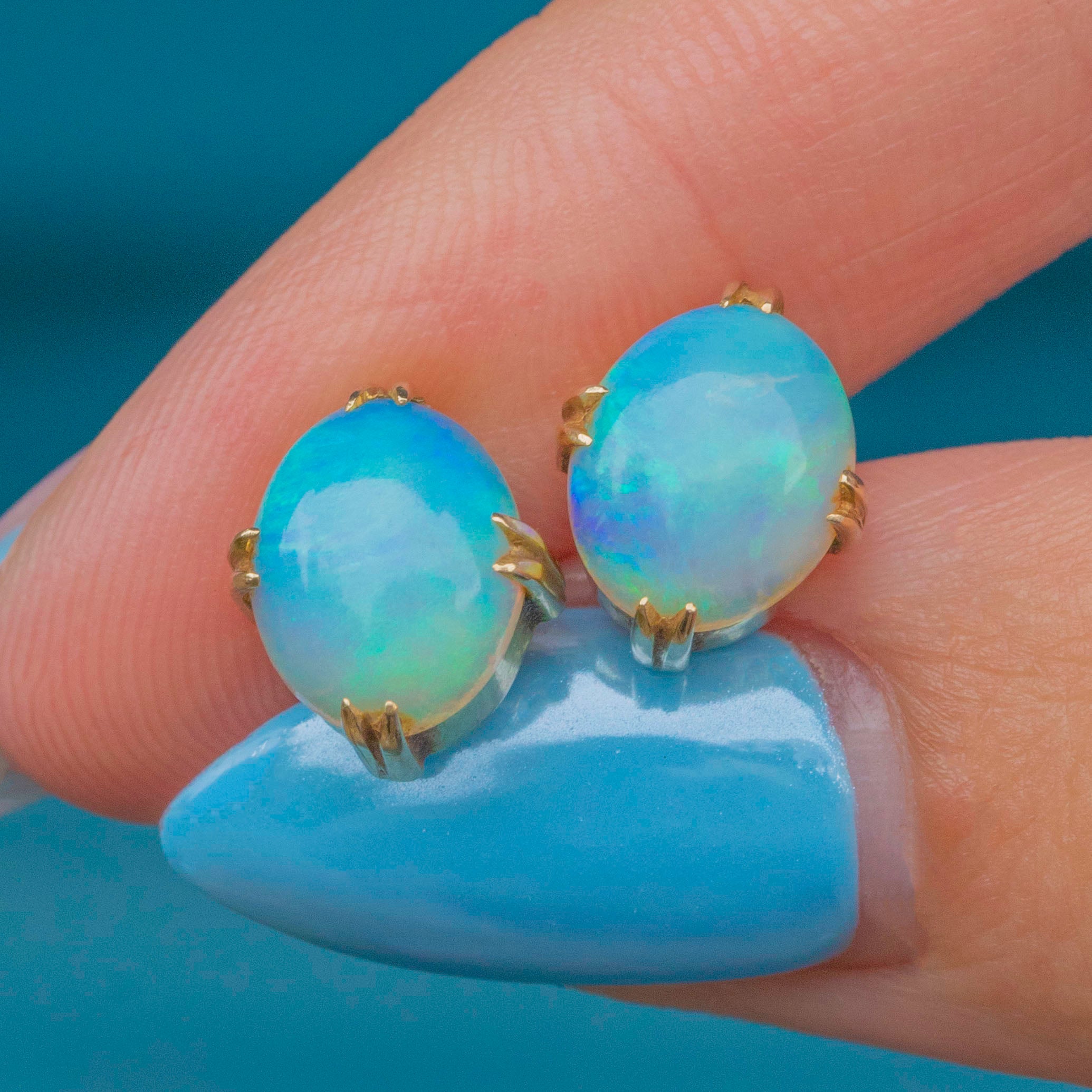 Opals are 9mm long x 7mm wide, weighing approx. 2.30ct combined.