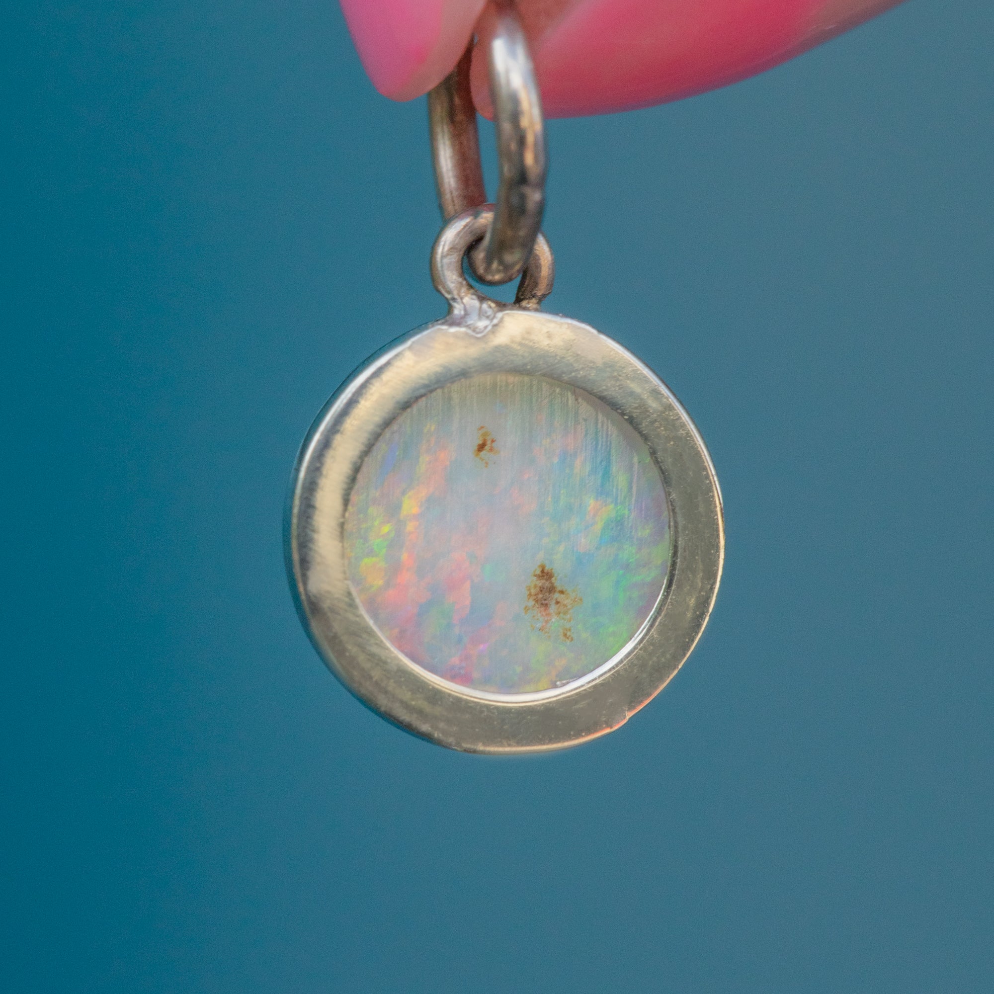 EXCELLENT. We are delighted to report that this Art Deco 14ct white Gold Opal charm is in excellent condition! The surface of the Opal is smooth and the play of colour is mesmerising, set securely within a 14ct Gold bezel.