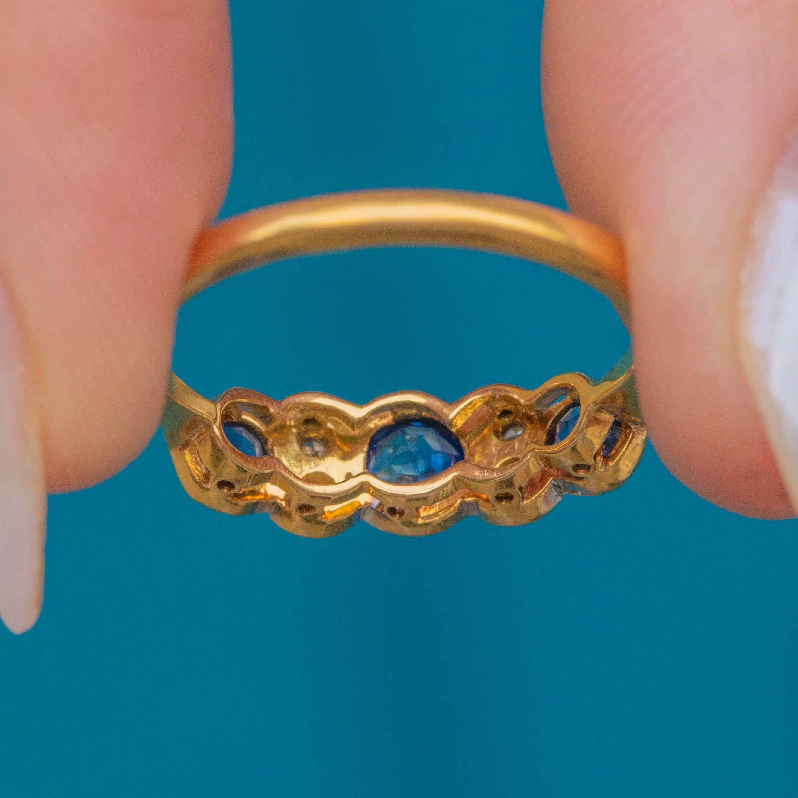 Art Deco 18ct Gold Blue Sapphire Diamond Seven Stone Ring