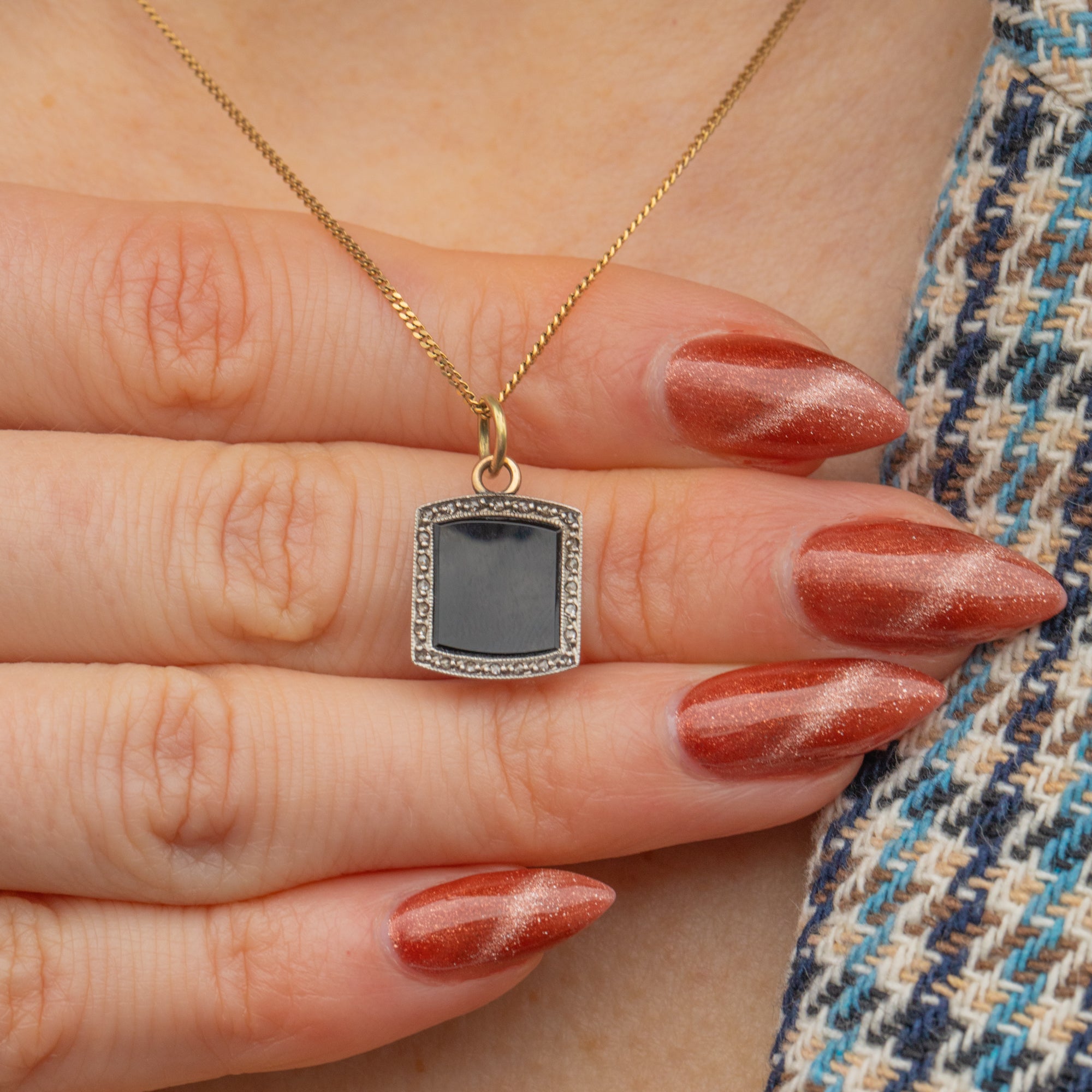 Art Deco 18ct Gold Onyx & Diamond Pendant