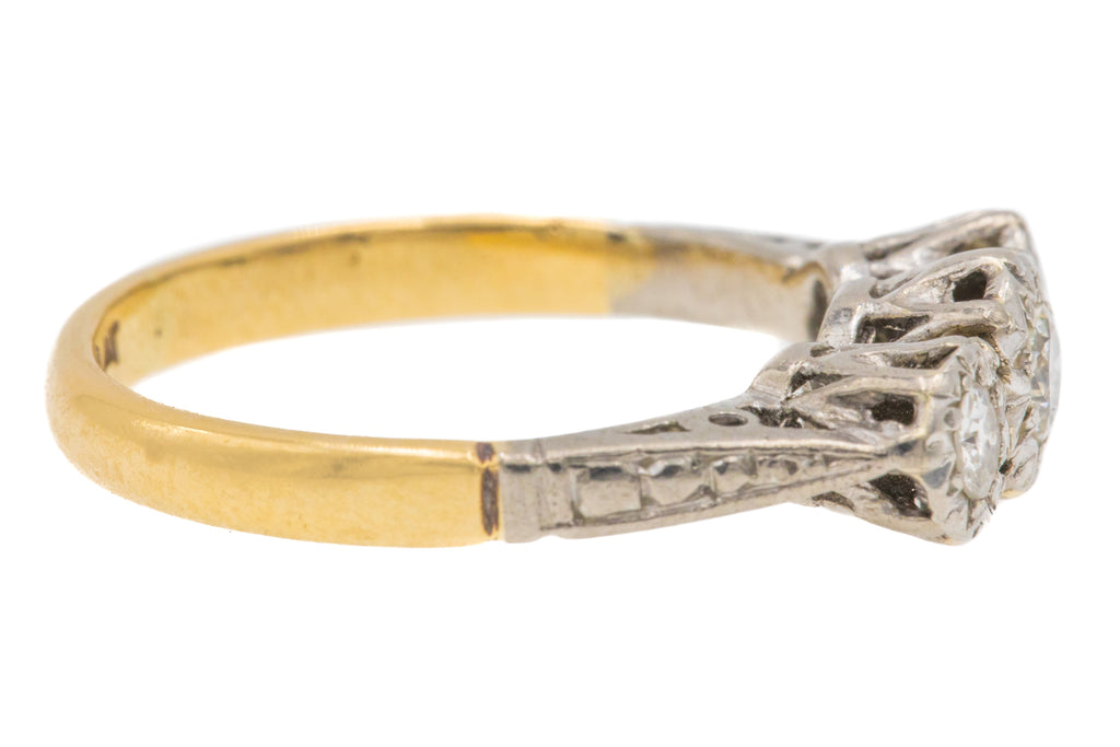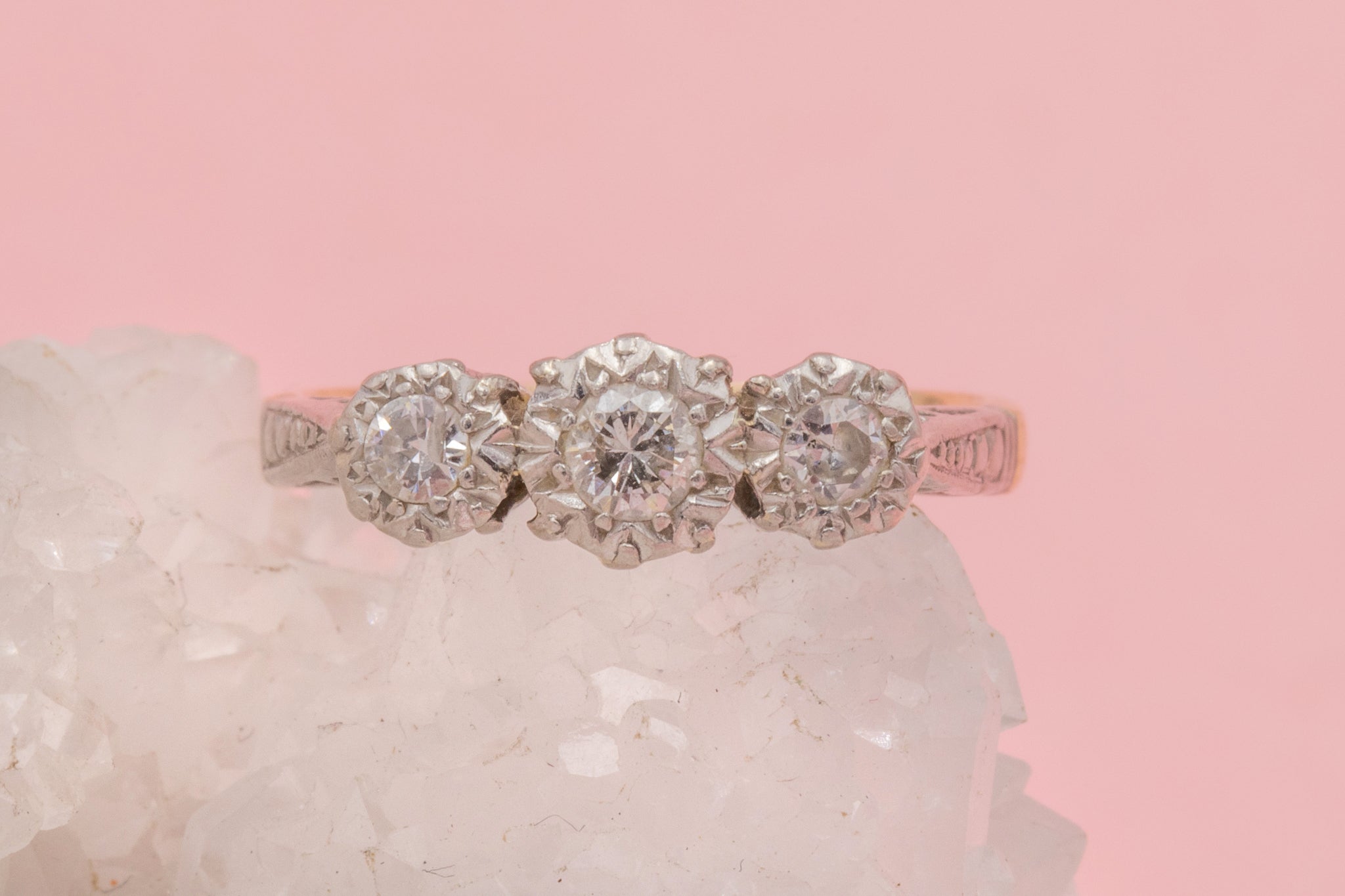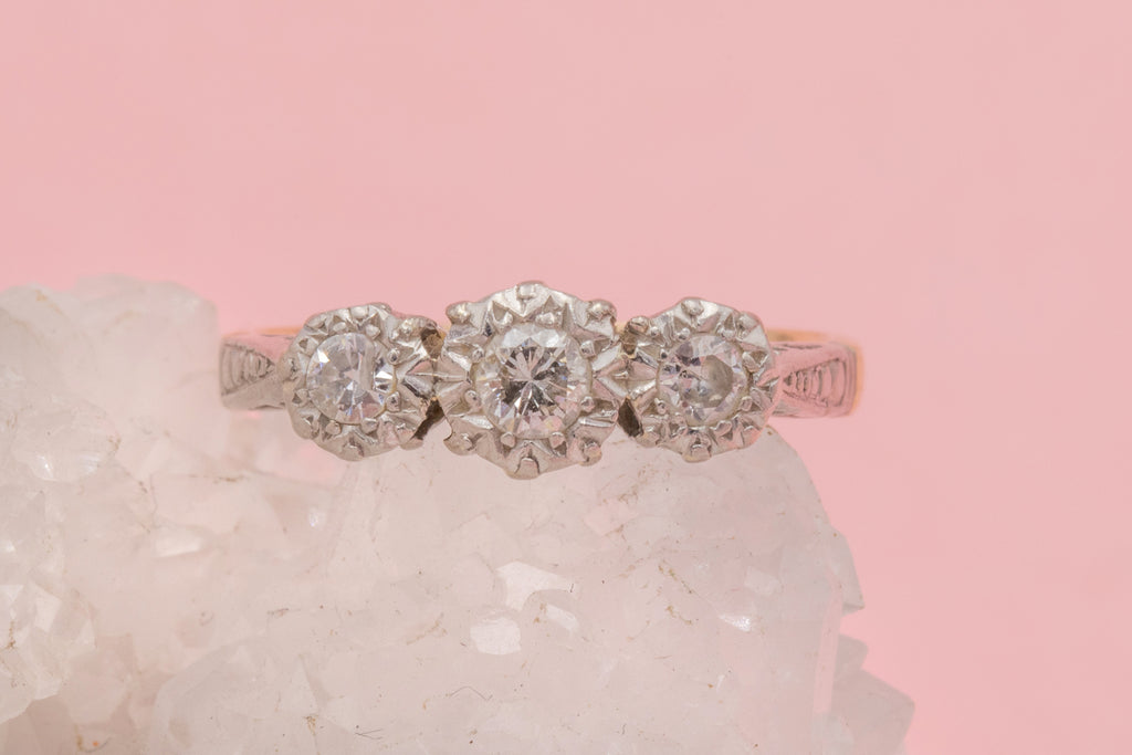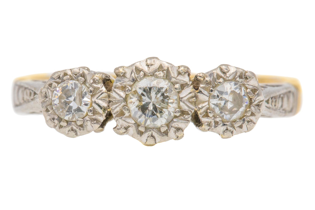 Art Deco 18ct Gold & Platinum Diamond Trilogy Engagement Ring