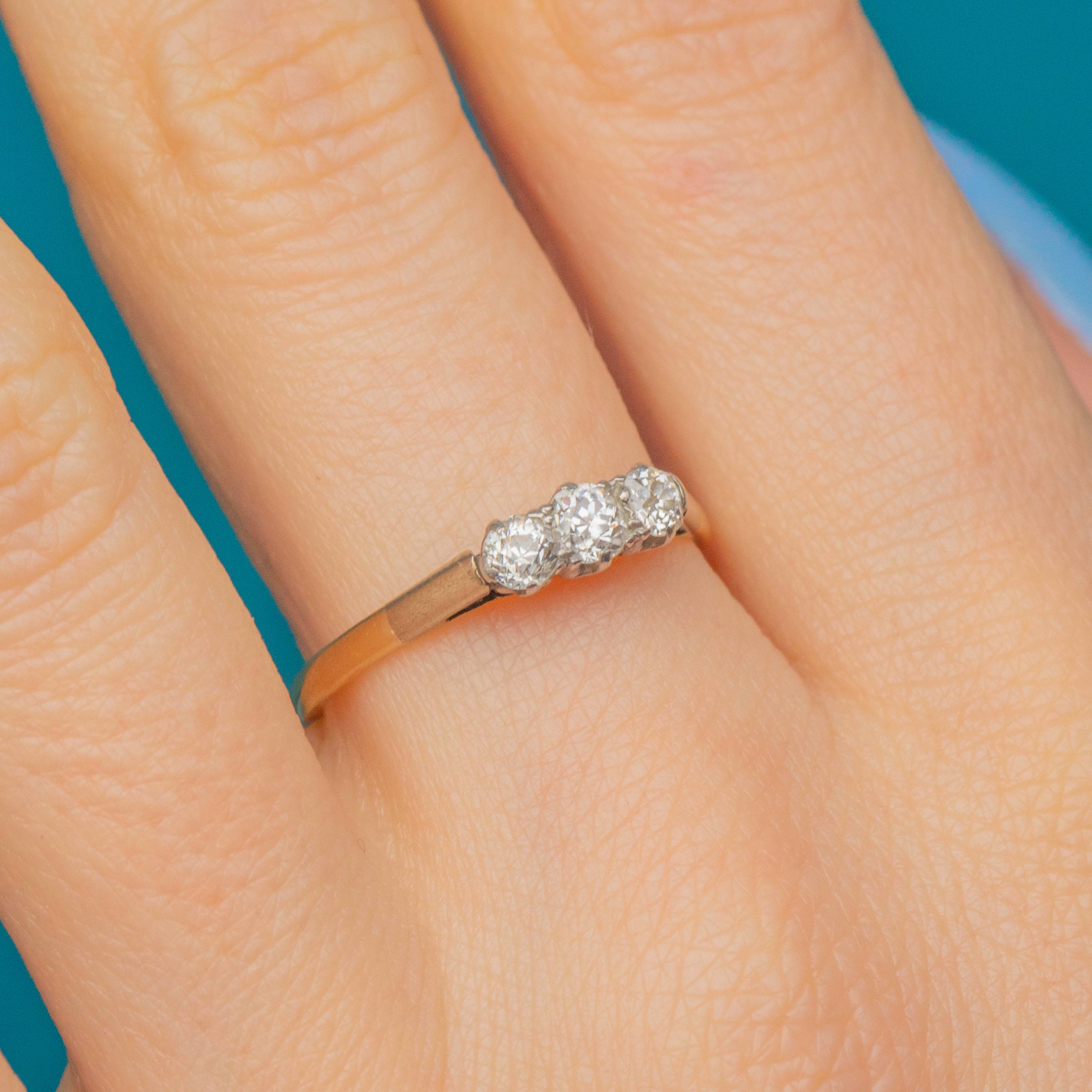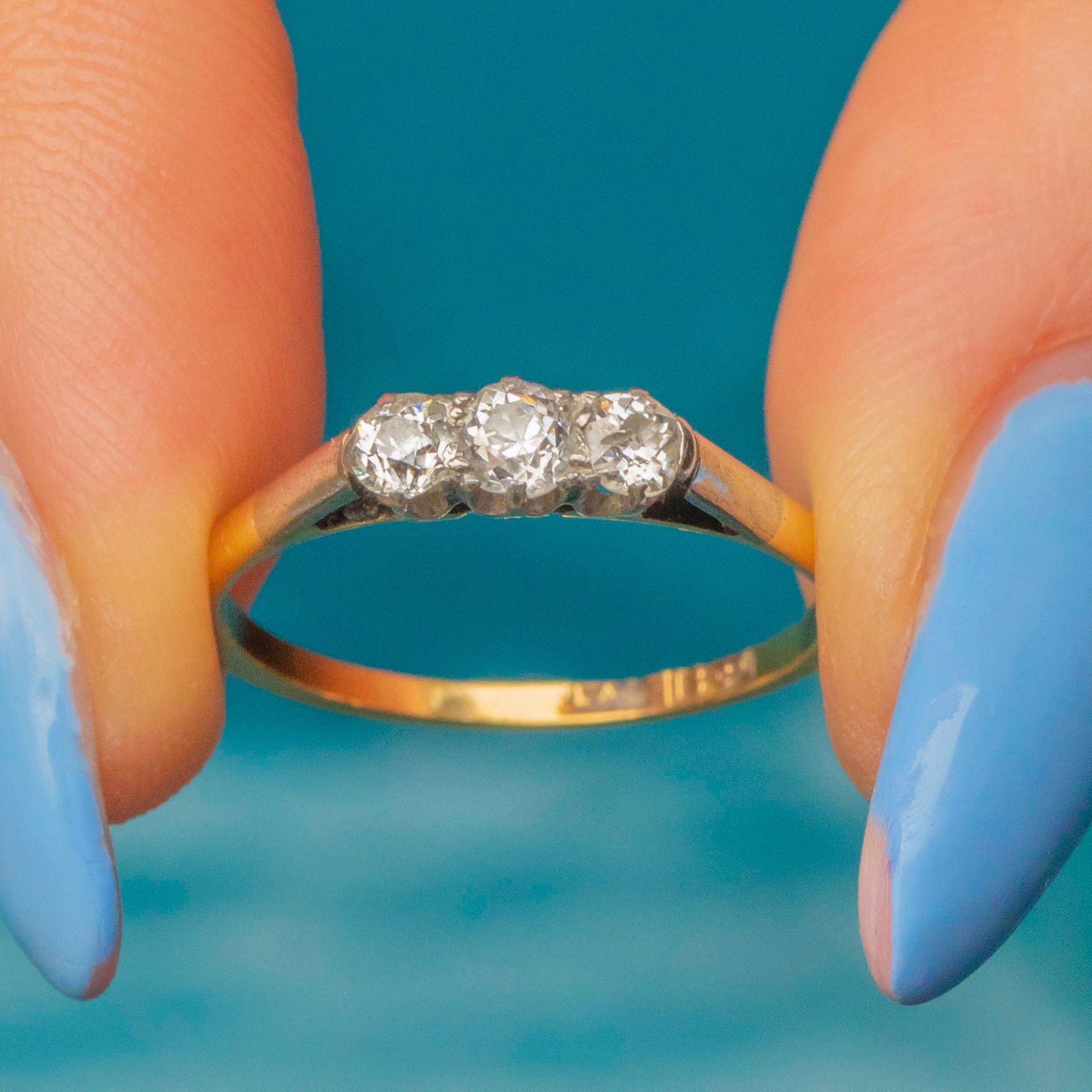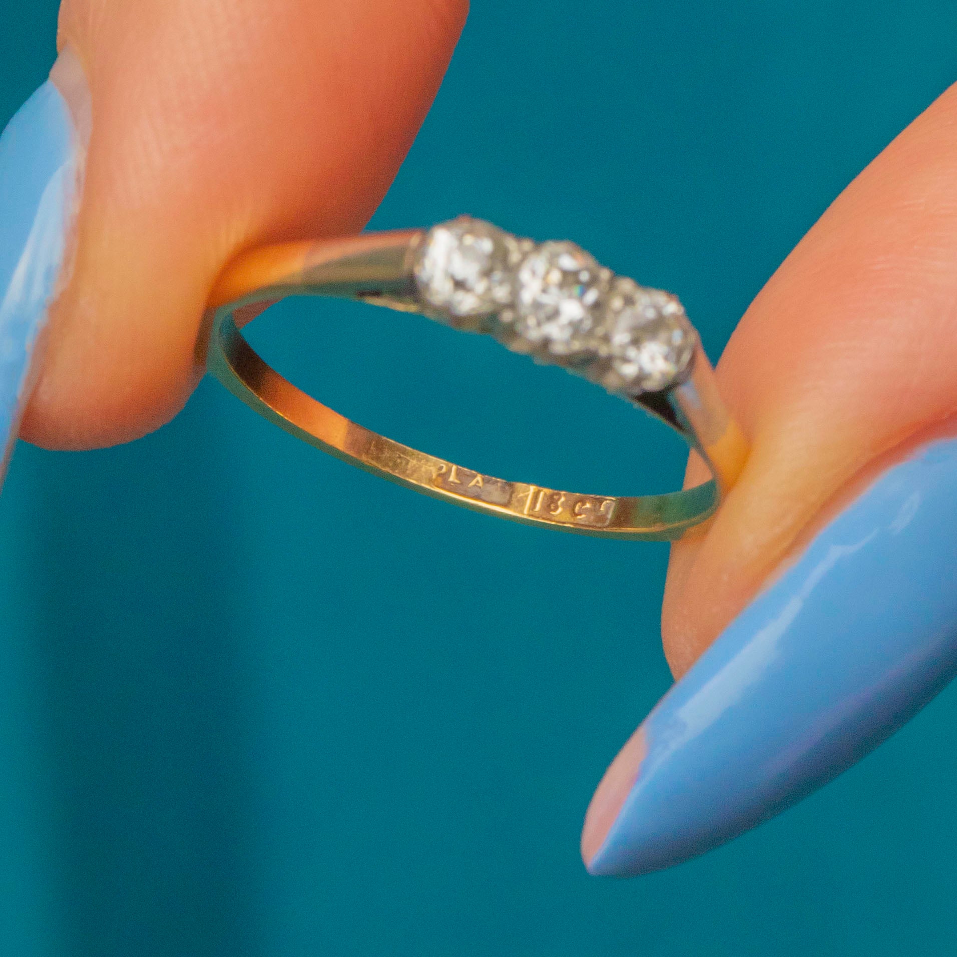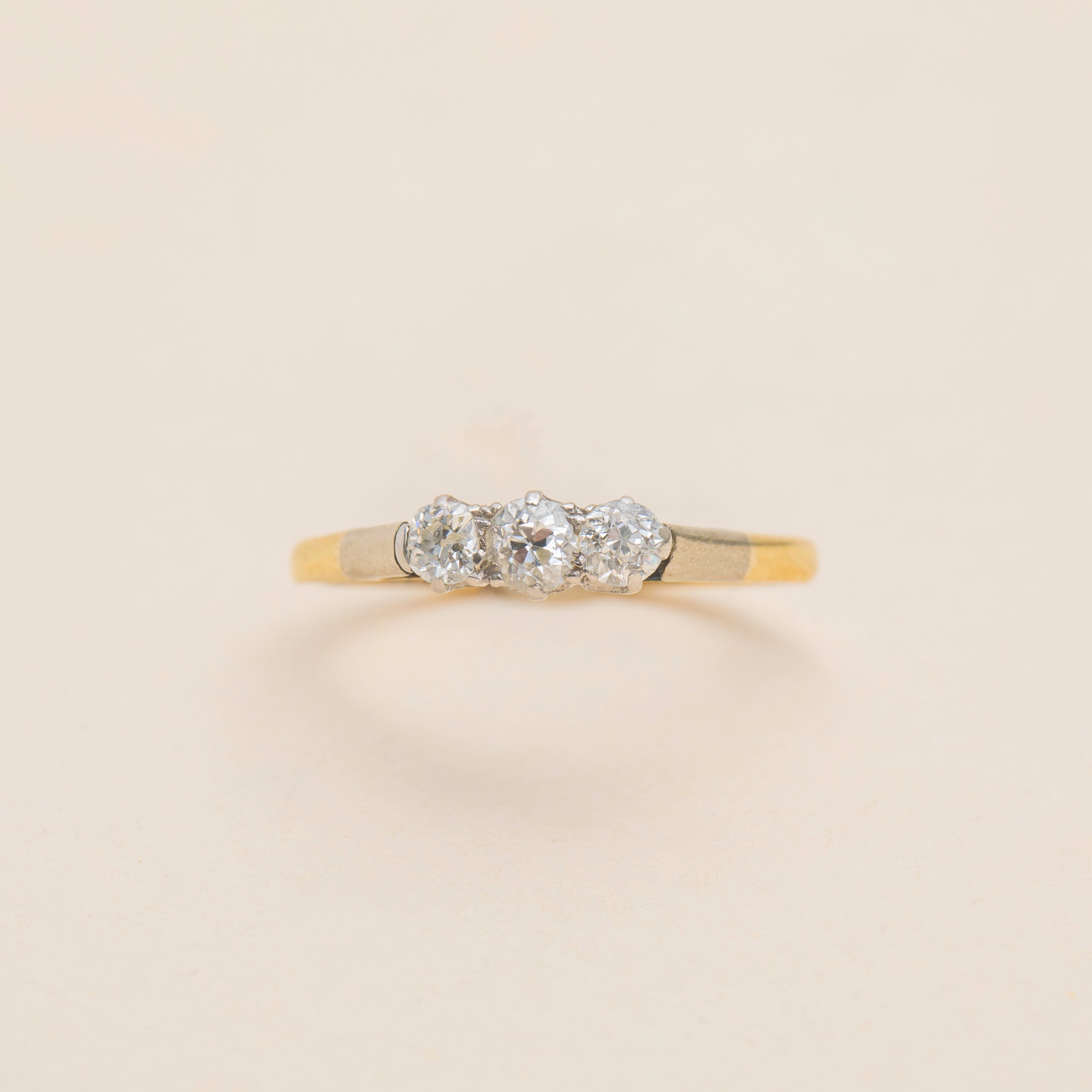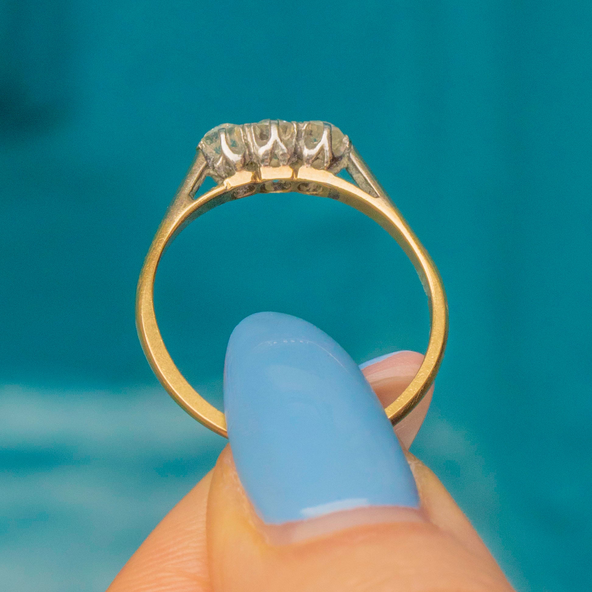 Art Deco 18ct Gold & Platinum Old-Cut Diamond Trilogy Ring 0.35ct