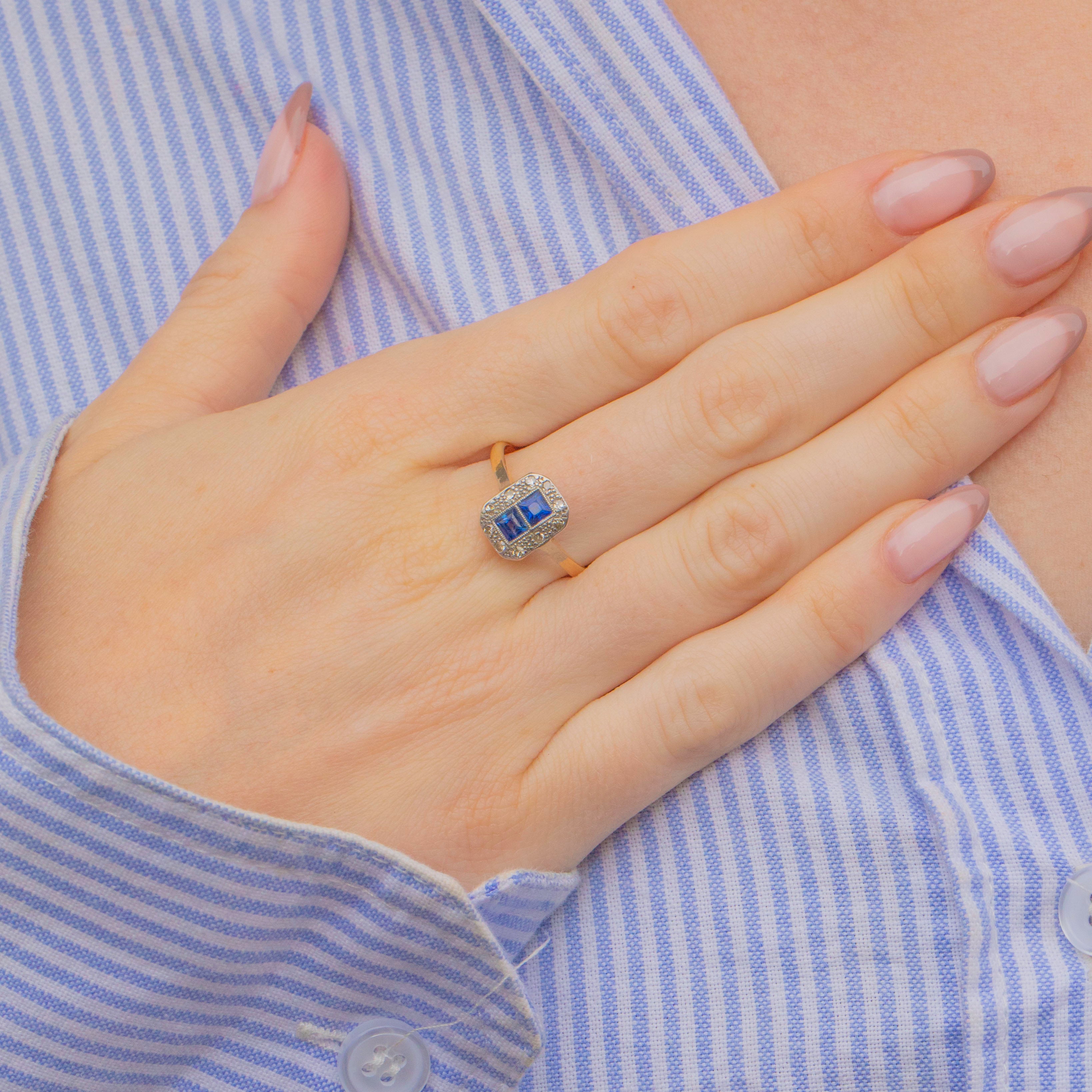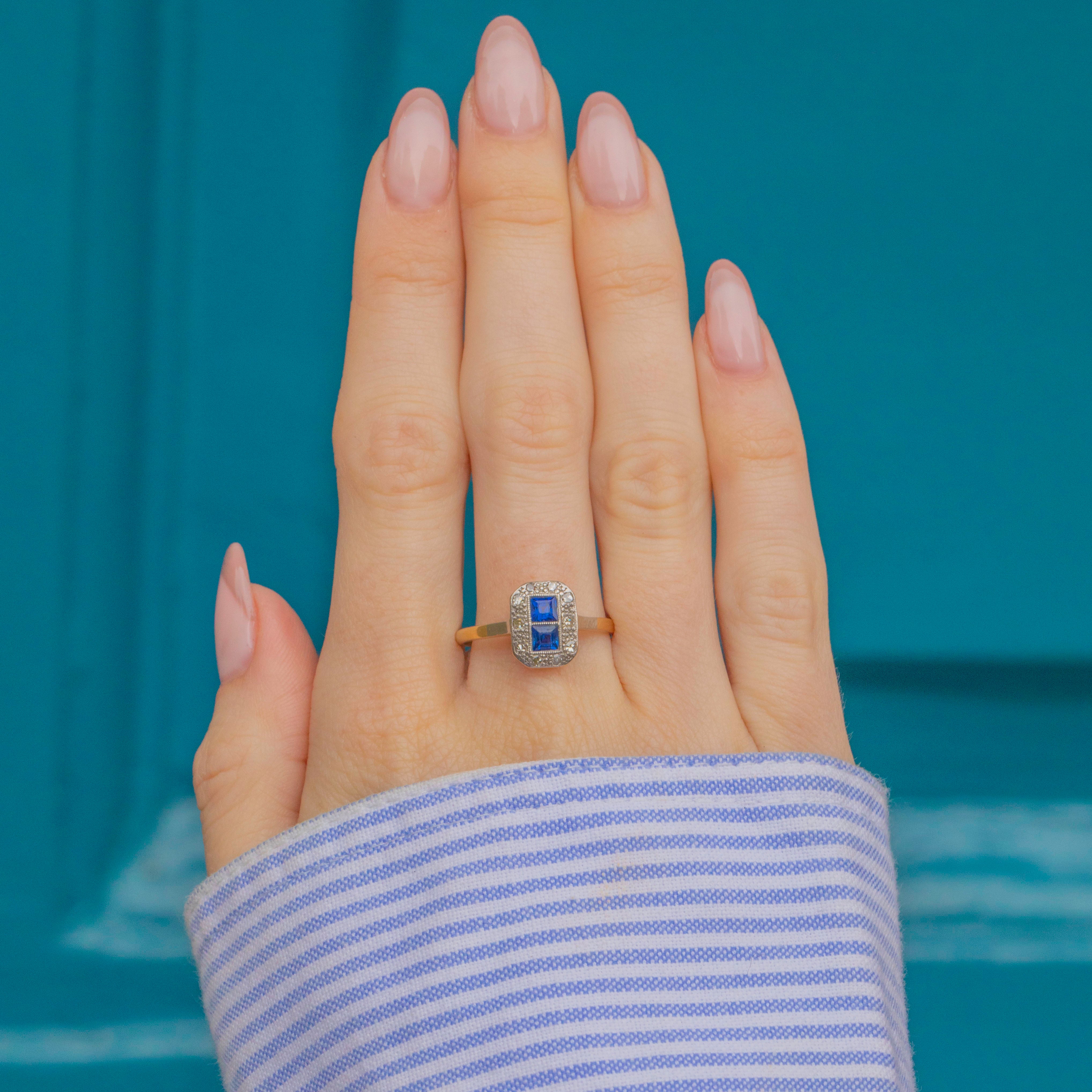 We adore this Art Deco 18ct Gold and Platinum Sapphire Diamond panel ring!