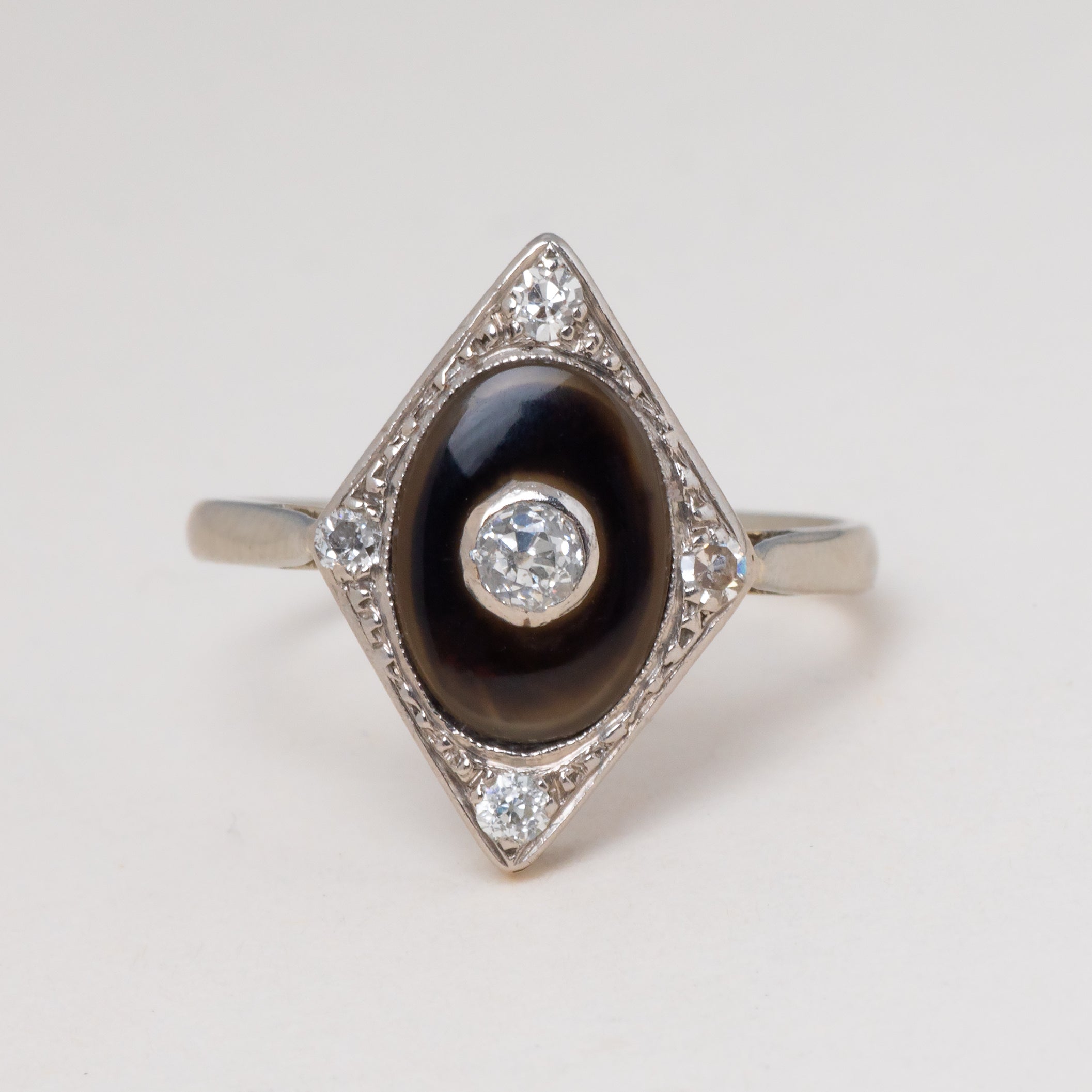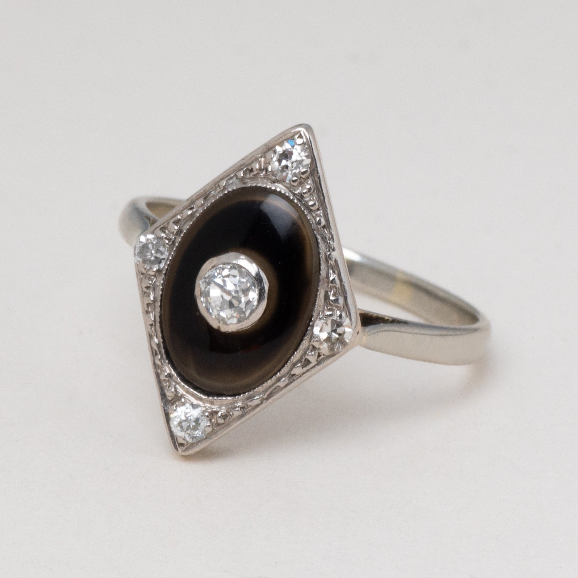 MATERIALS: Tests as 18ct White Gold throughout, Diamond (0.26ct), Onyx.