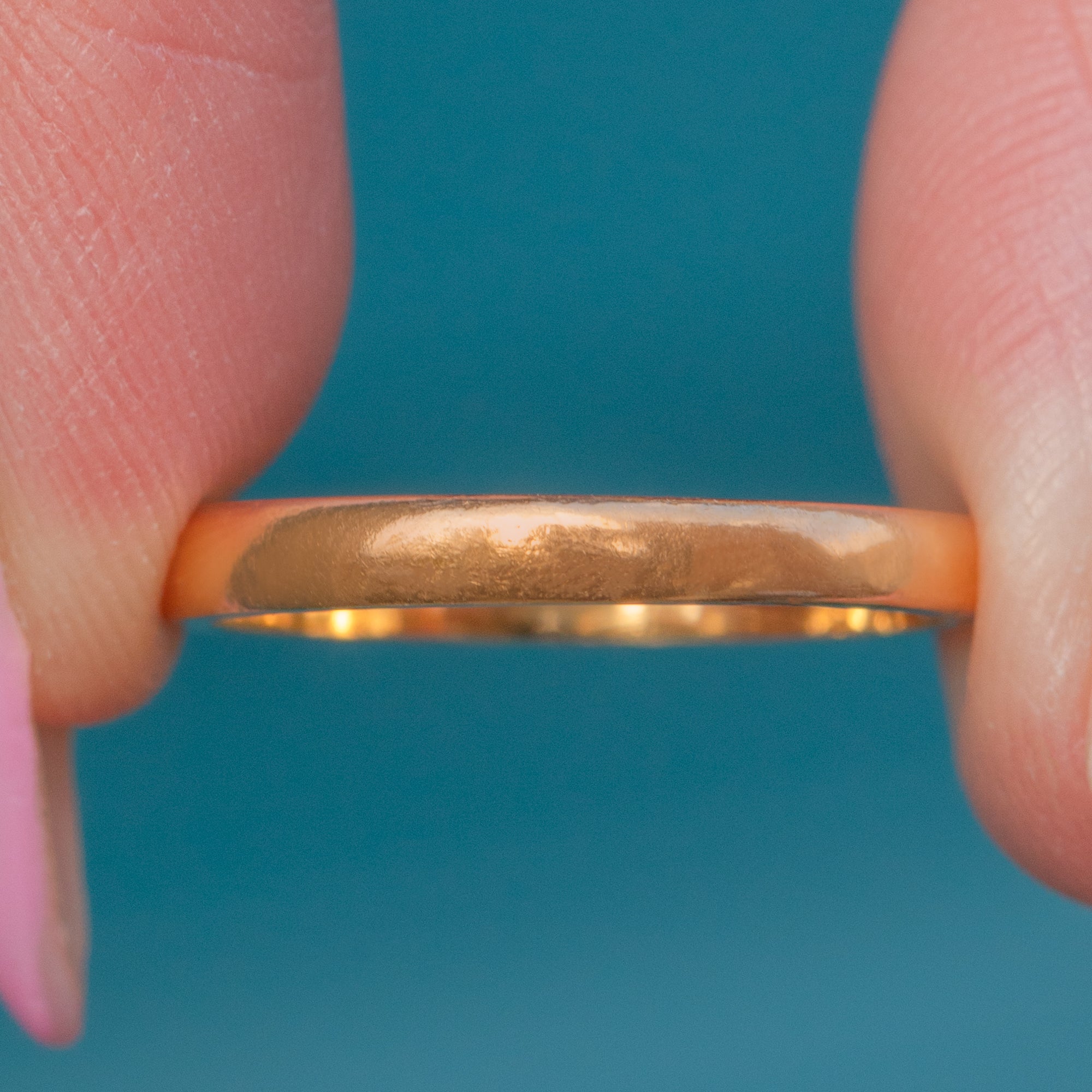 This elegant Art Deco 22ct Gold wedding band dates to 1921 and captures the refined simplicity of the era. Crafted in rich, buttery high-carat Gold, its classic profile and enduring quality make it a timeless choice for everyday wear or as a symbolic wedding or stacking ring.