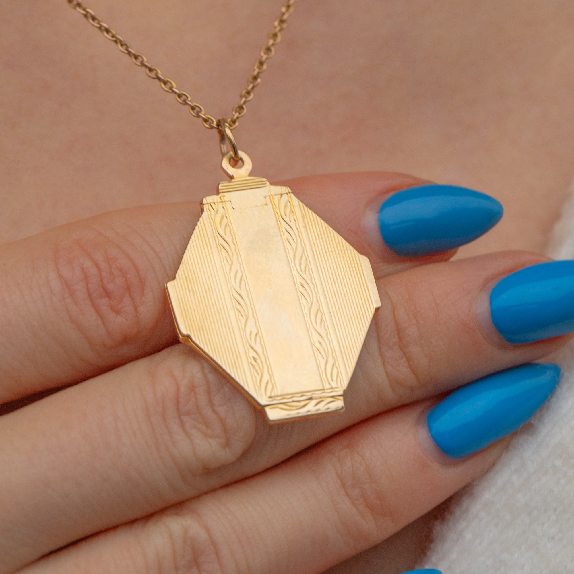 Upon opening this Art Deco locket, you will discover space for you to place your most cherished photograph inside! Whether you're an Art Deco jewellery enthusiast or looking for a unique and sentimental gift, this elegant vintage Gold locket would make a fine choice.