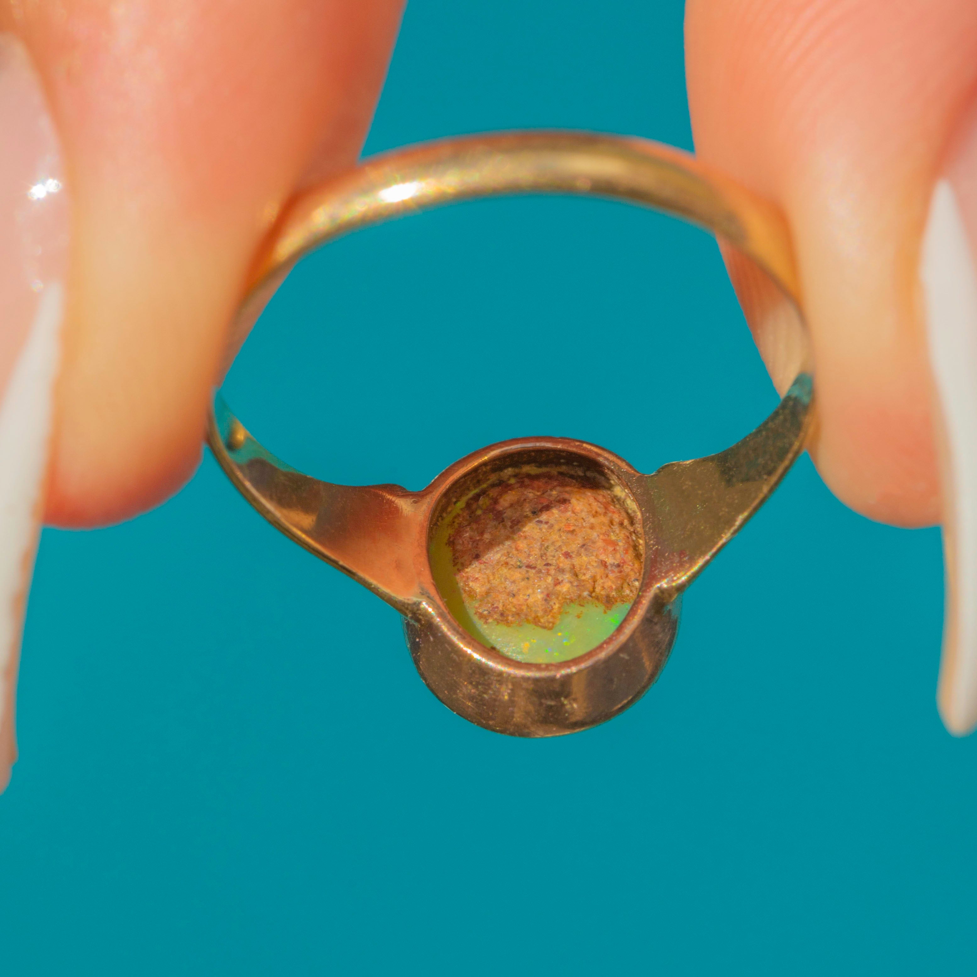 EXCELLENT: The Opal is vibrant with superb colour play and only the faintest surface wear visible under magnification. The bezel and band are secure and in fine condition, showing minimal age-related wear.