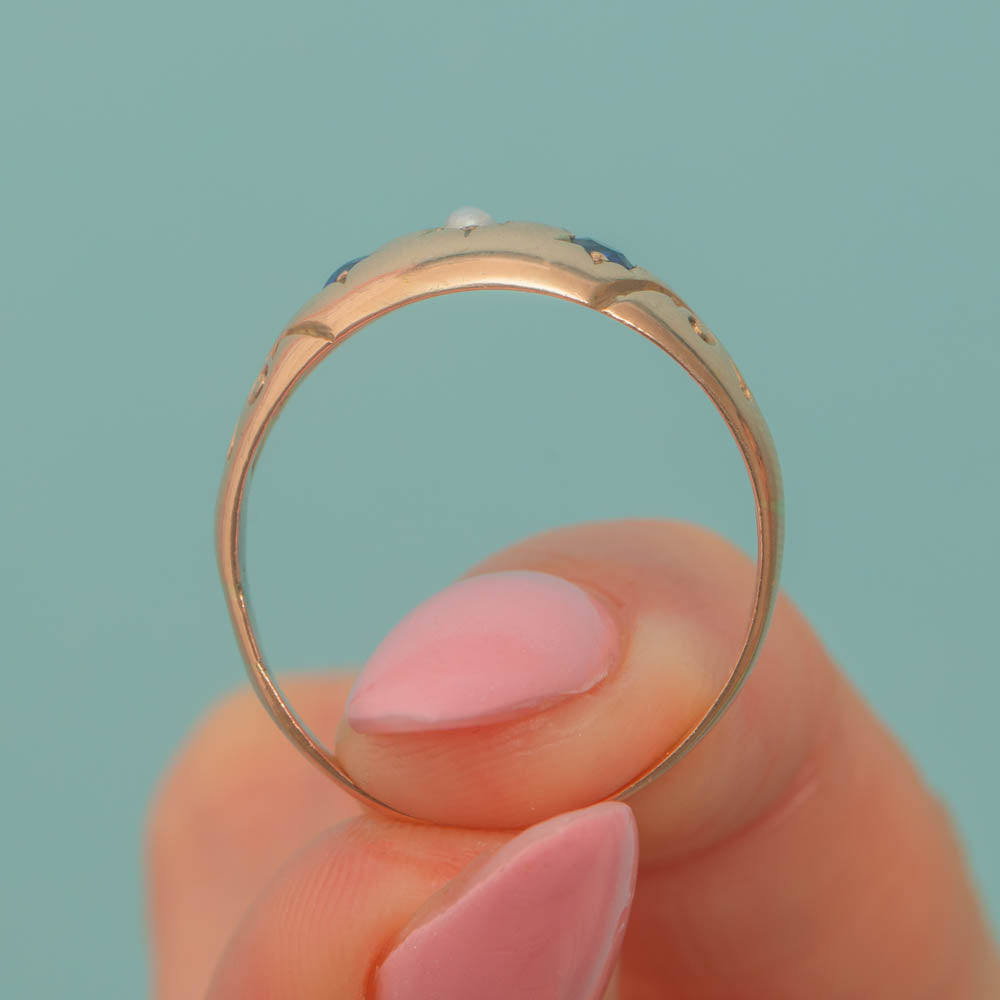 Art Deco 9ct Gold Sapphire Pearl Gypsy Ring, c.1922