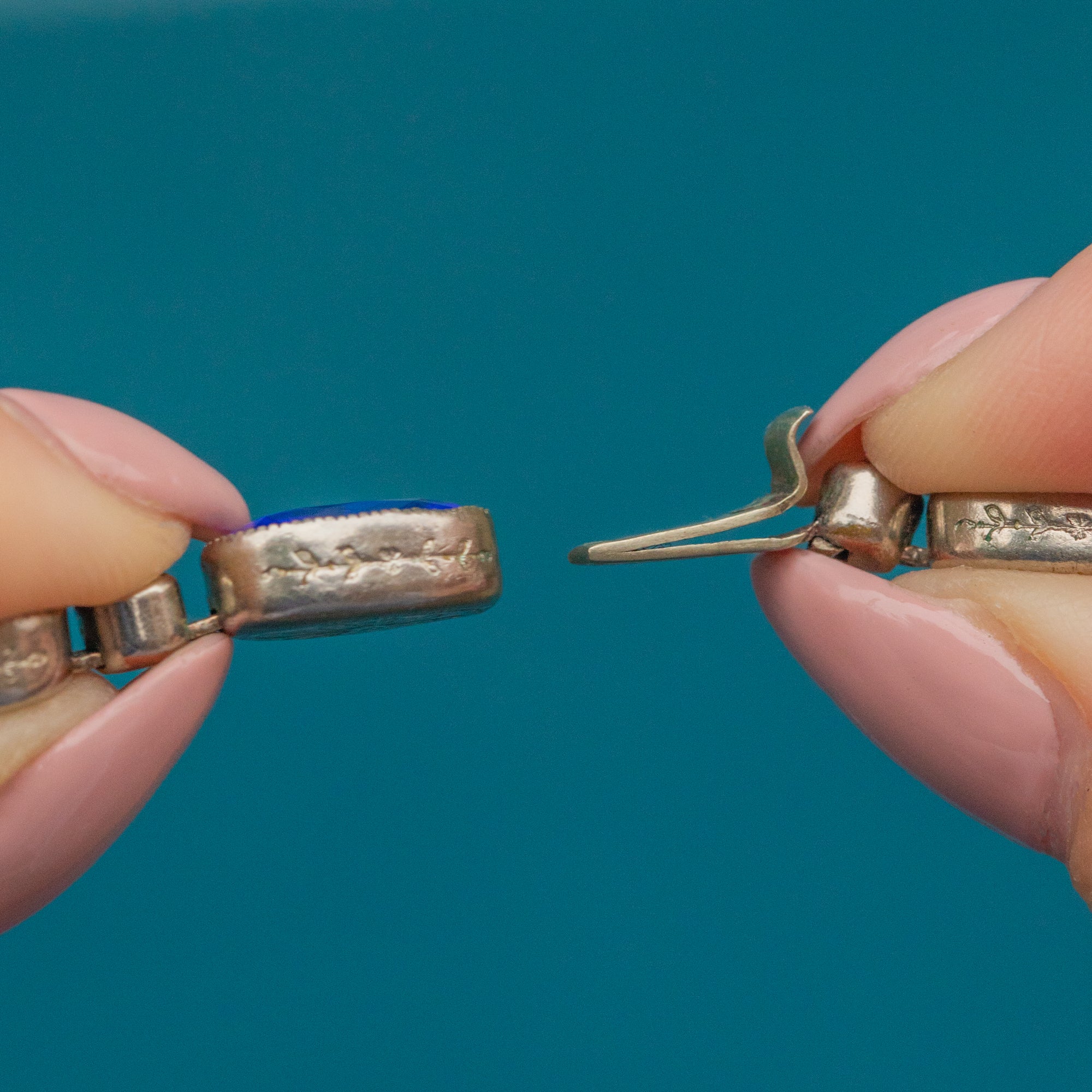 EXCELLENT. This Art Deco Blue Paste necklace is in excellent condition. Her Paste stones are vibrant and dazzling, free from nibbles or scuffs, and sit securely within their settings. Her links are uniform and secure, allowing for confident and comfortable wear. In such great condition, she is a must-have addition to any antique jewellery collection!