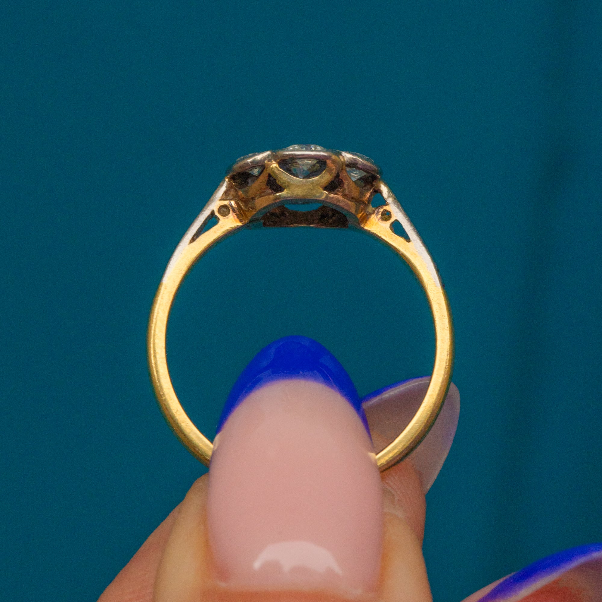 Crafted from a combination of 18ct yellow Gold and Platinum, in typical 1920's fashion, she has a beautiful presence on the finger with an impressive 0.40cts bright and lively old cut Diamonds!