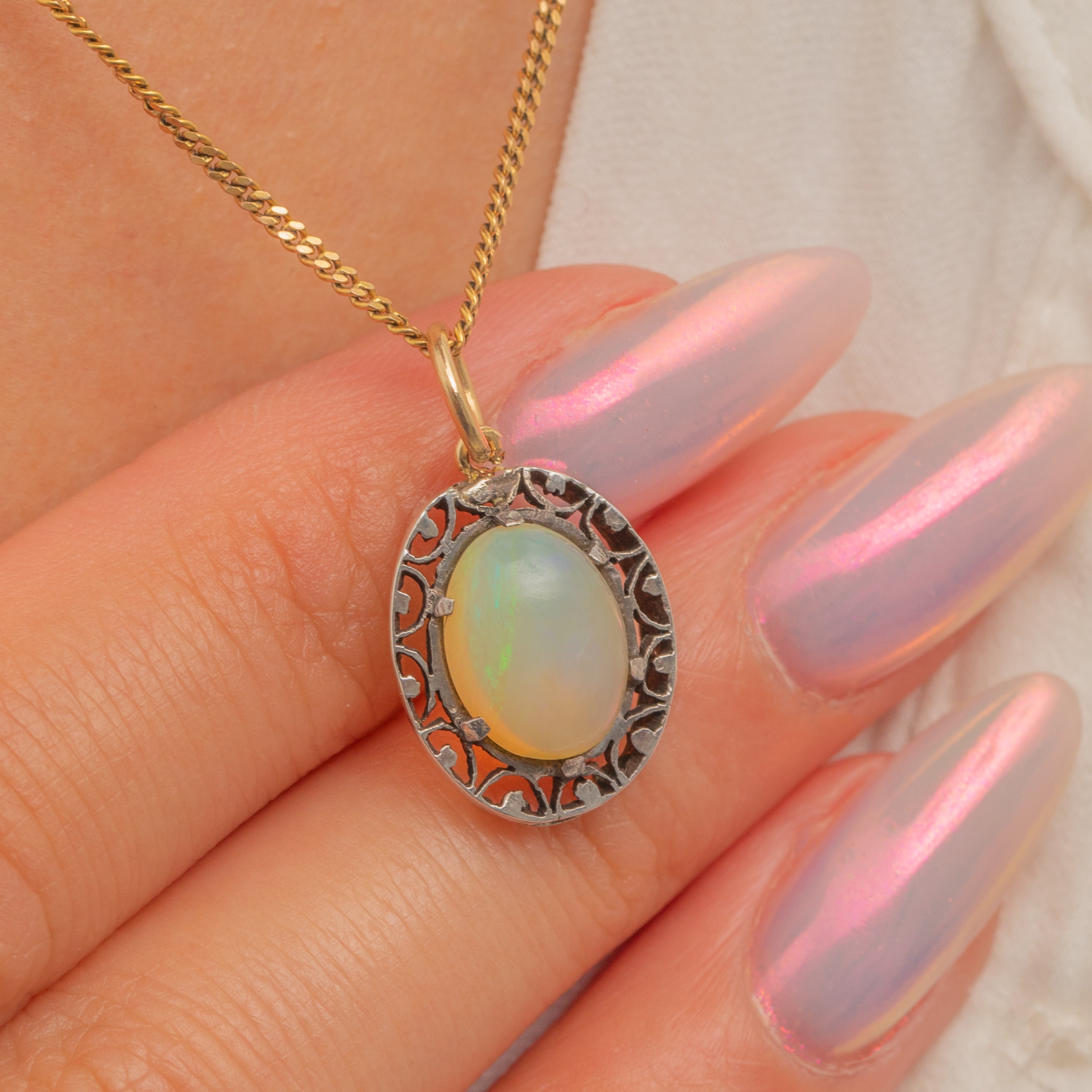 A dainty Art Deco 0.65ct Opal filigree charm for your collection!