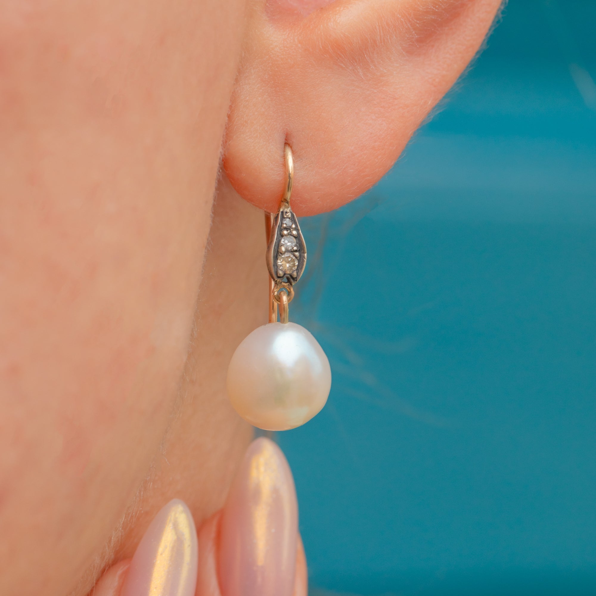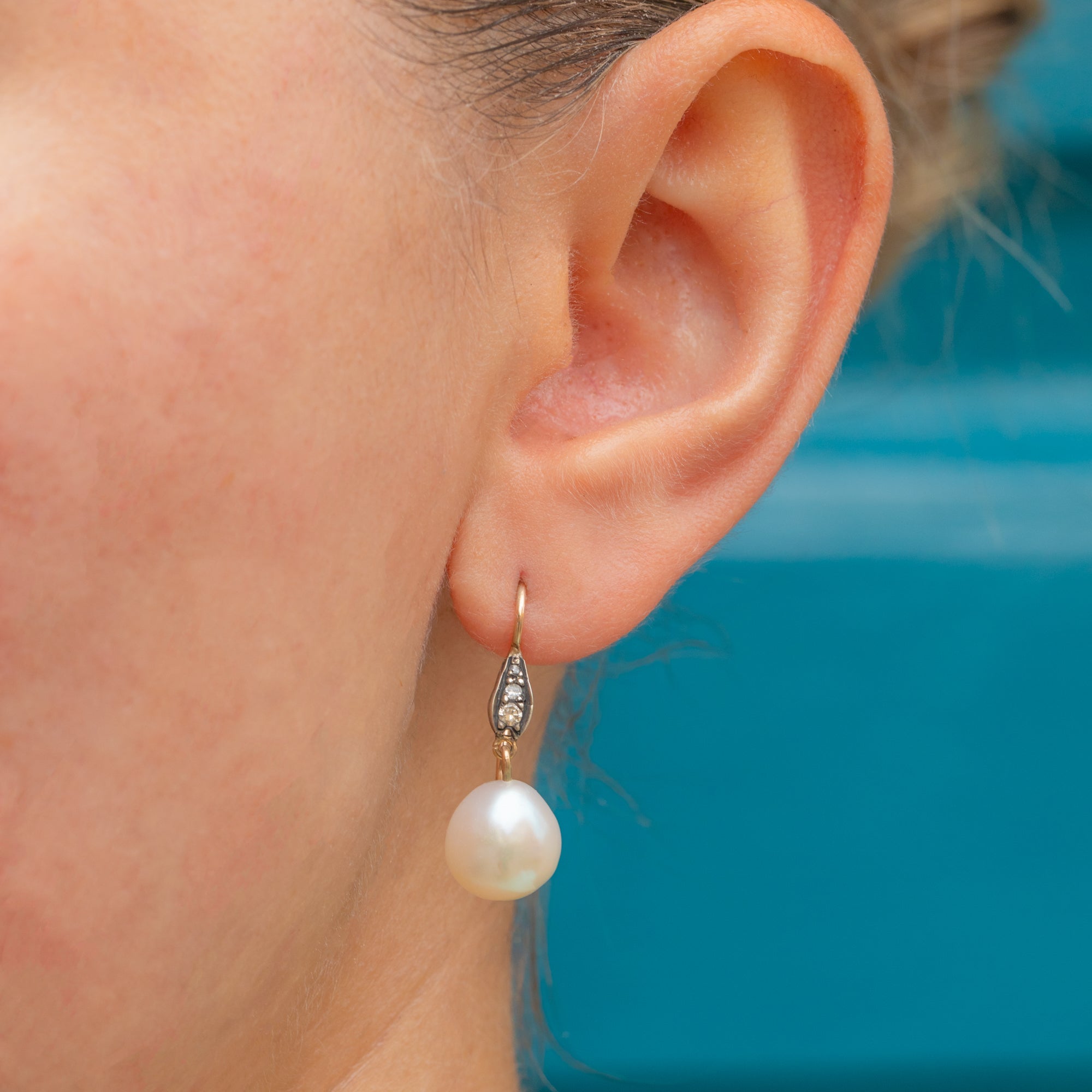 Art Deco Pearl Diamond Earrings 9ct Gold French Hooks