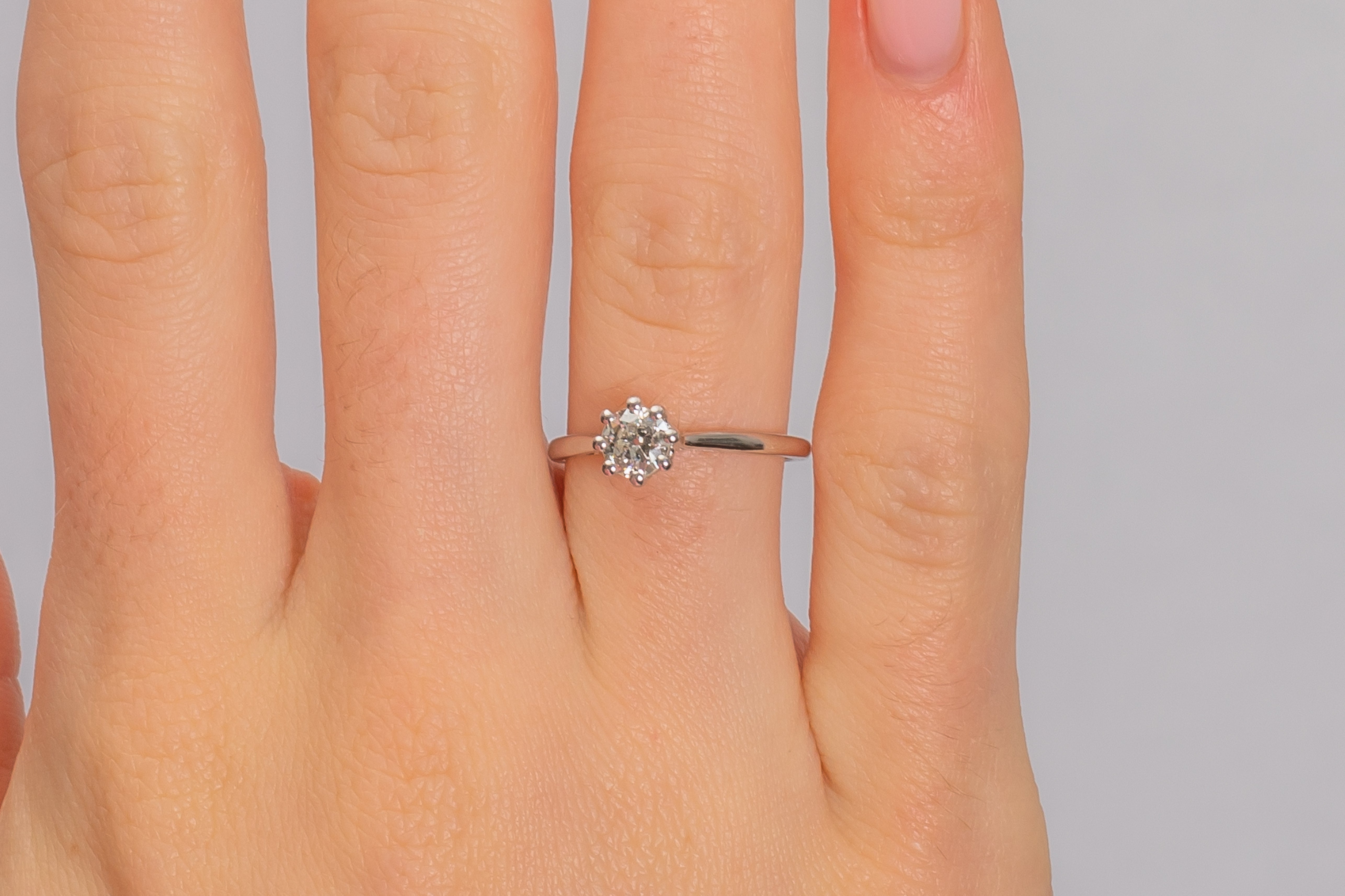 With a clean minimal design, this gorgeous engagement ring ticks all of the boxes. An eye-catching sparkly Diamond is poised at the centre, perfect for those who love classic design. With a robust 18ct White Gold bank, you can wear this antique Diamond ring with confidence.