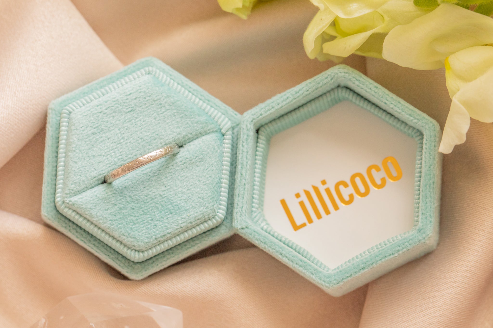 This Art Deco Platinum engraved wedding band is crafted from luxurious Platinum with the prettiest orange blossom pattern! Symbolic of new beginnings and a fruitful marriage, orange blossoms were lovingly engraved by hand on almost all of the authentic Art Deco wedding bands that we see.