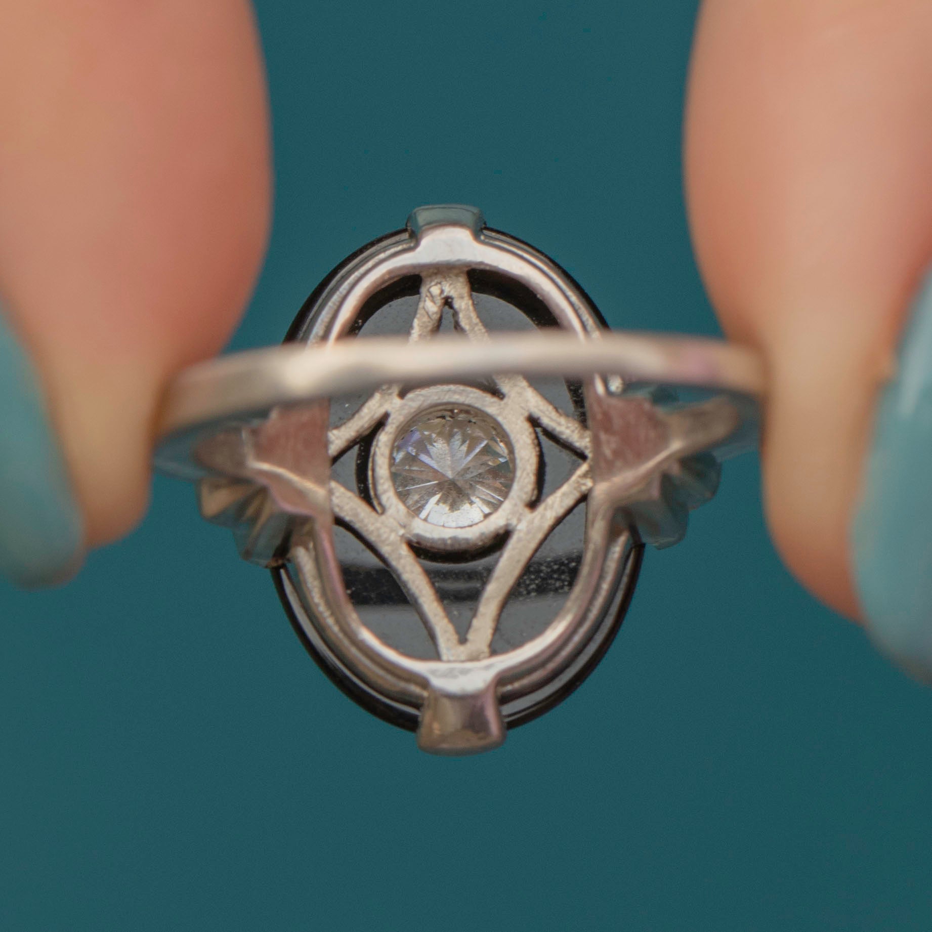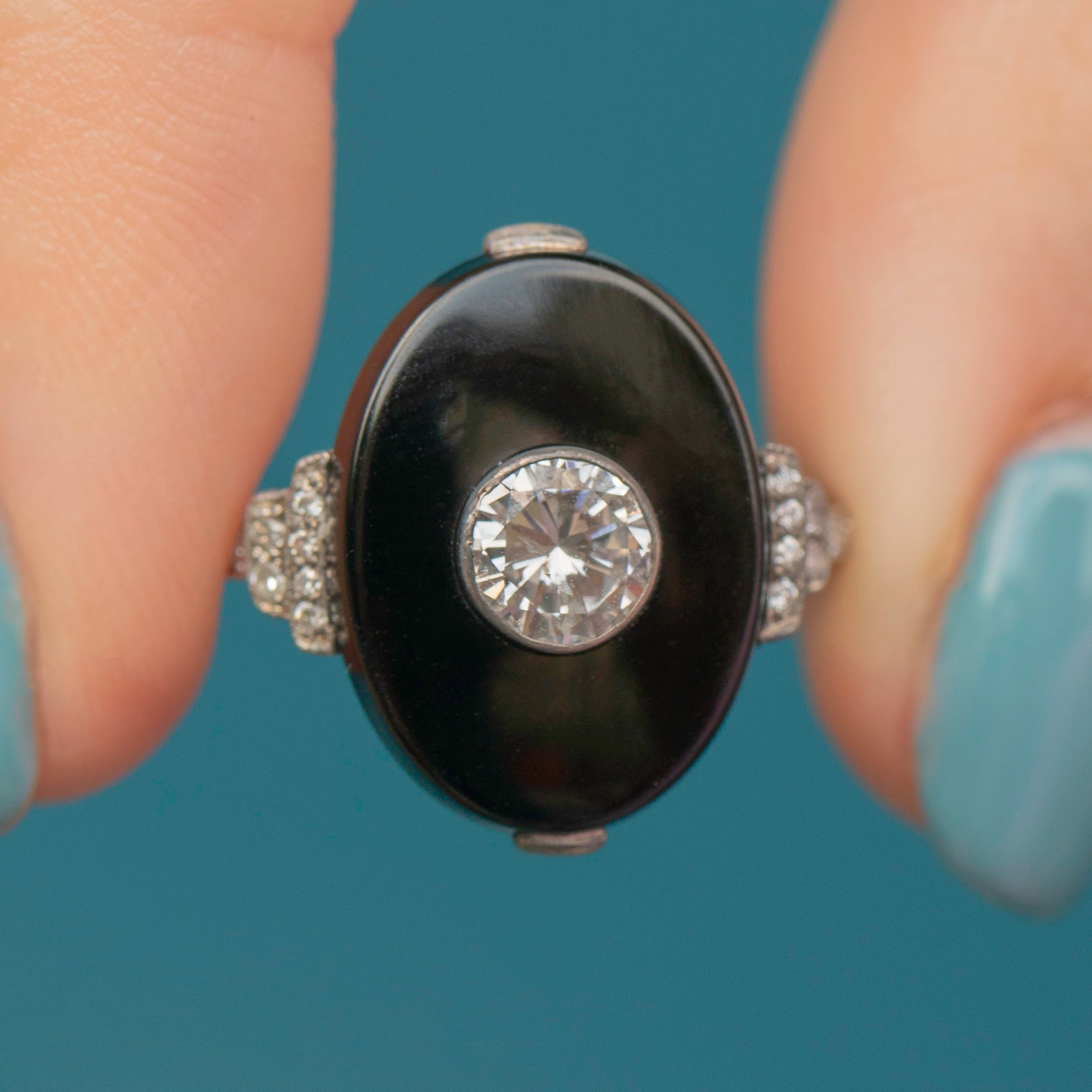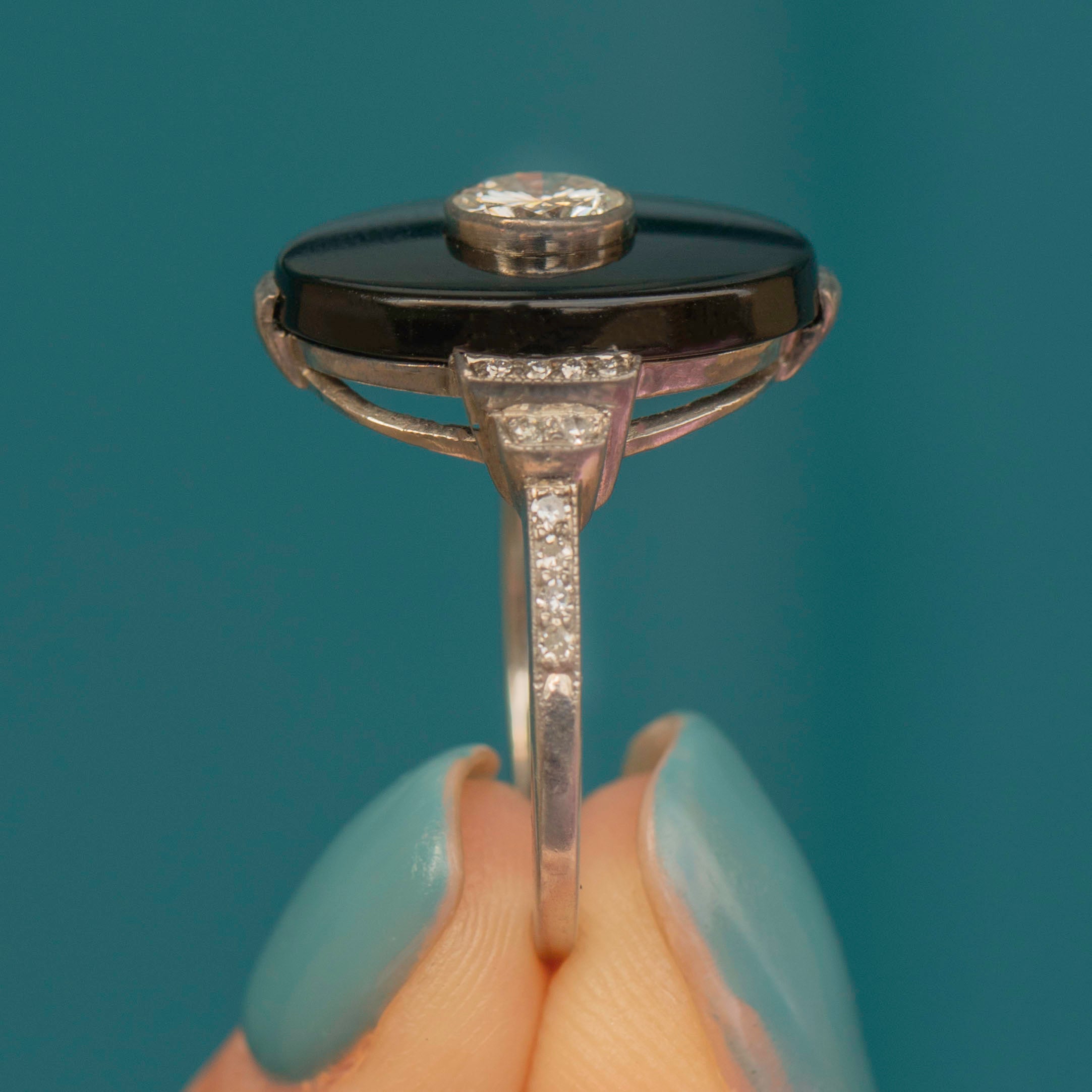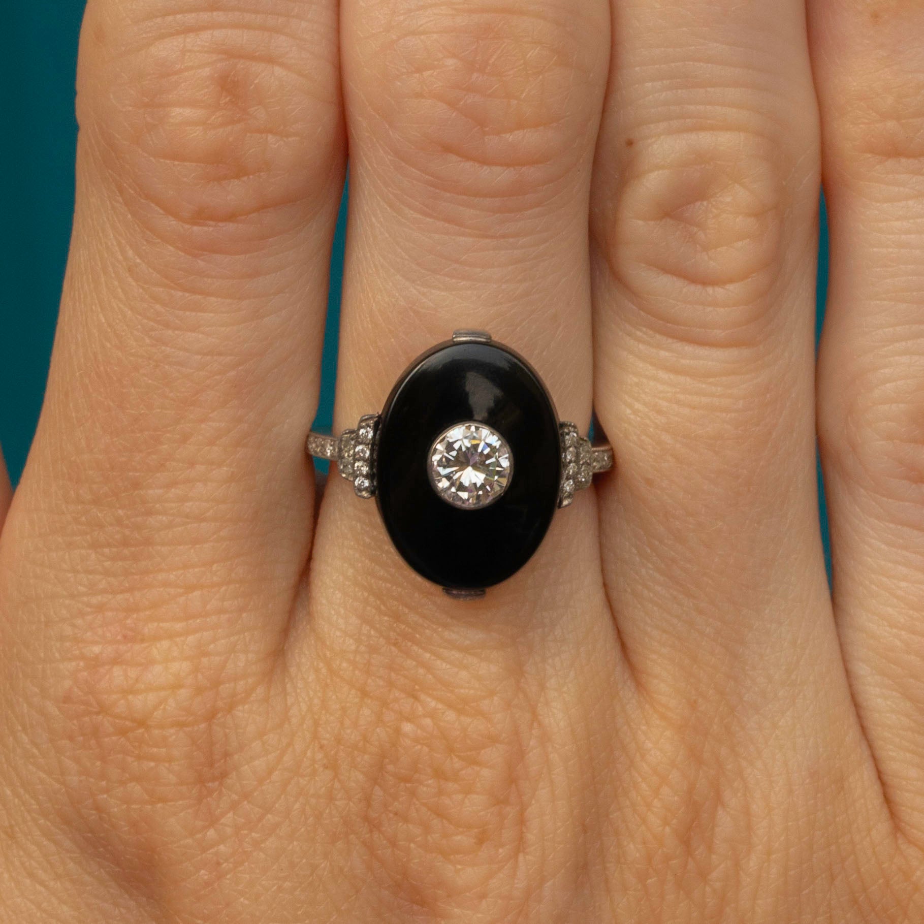 Art Deco Platinum Onyx Diamond Target Ring, 0.50ct Diamond
