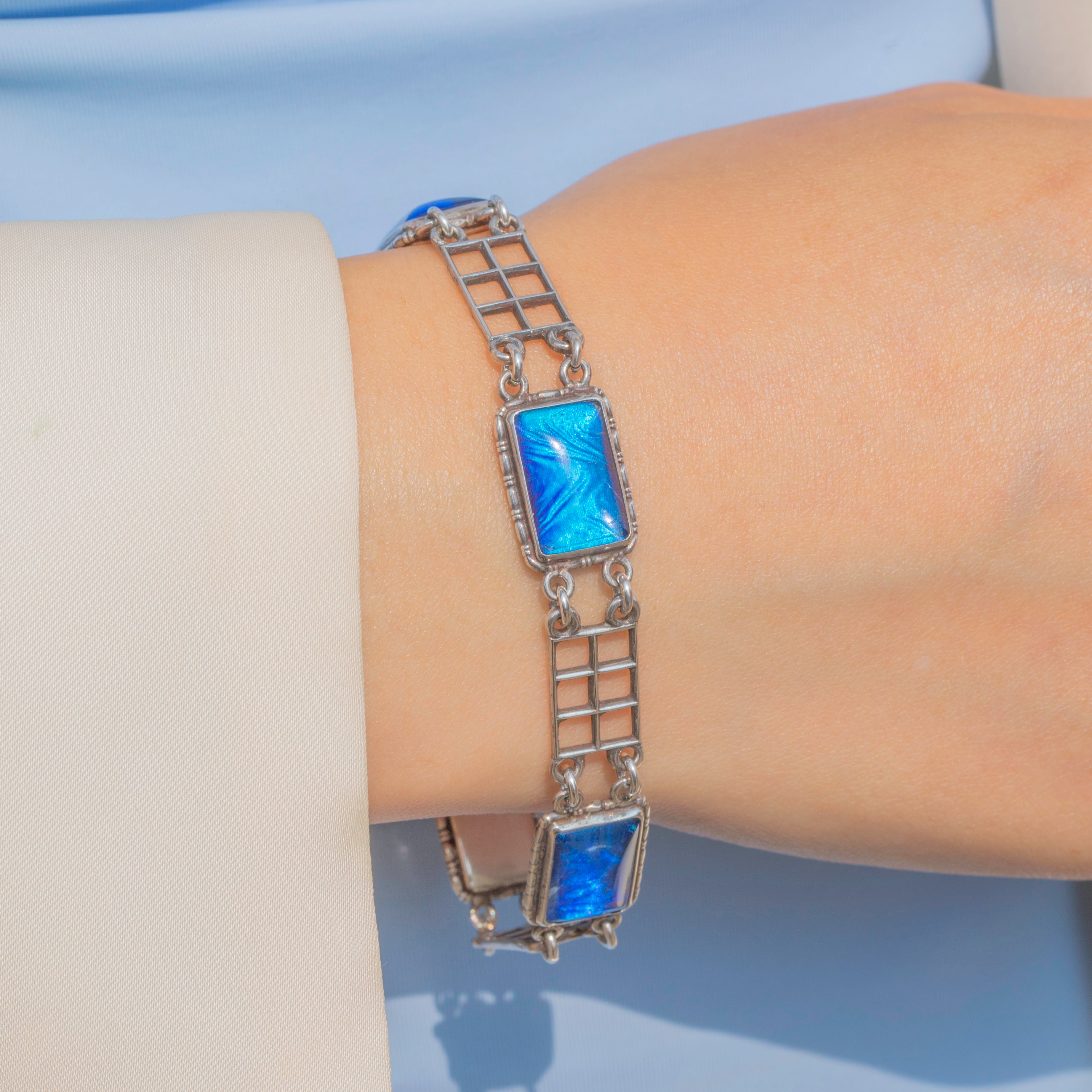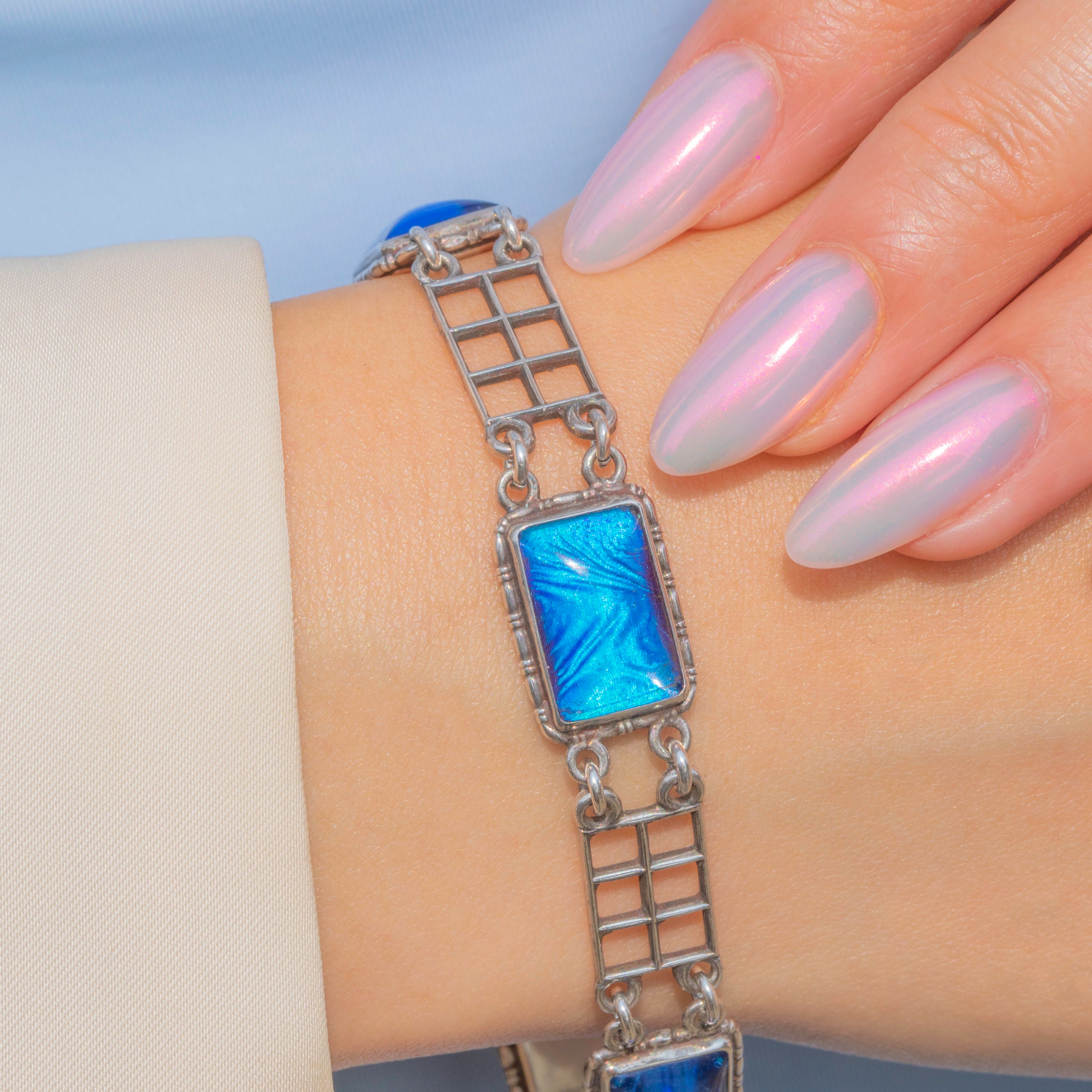 A fabulous Art Deco Silver butterfly wing bracelet to add a striking pop of colour to your attire!