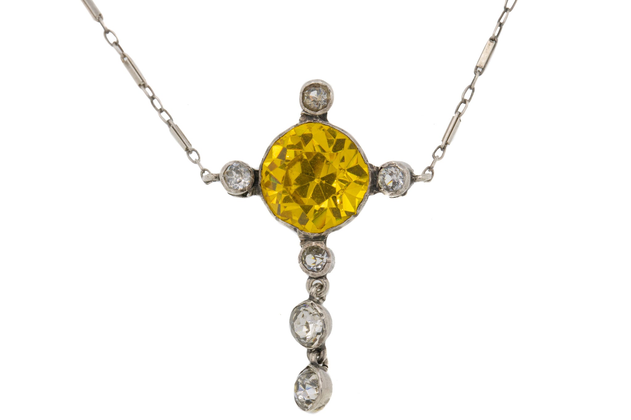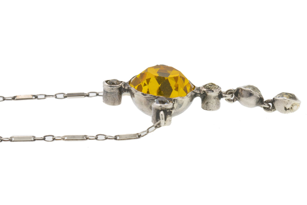 Art Deco Silver Foiled Yellow & White Paste Integral Necklace